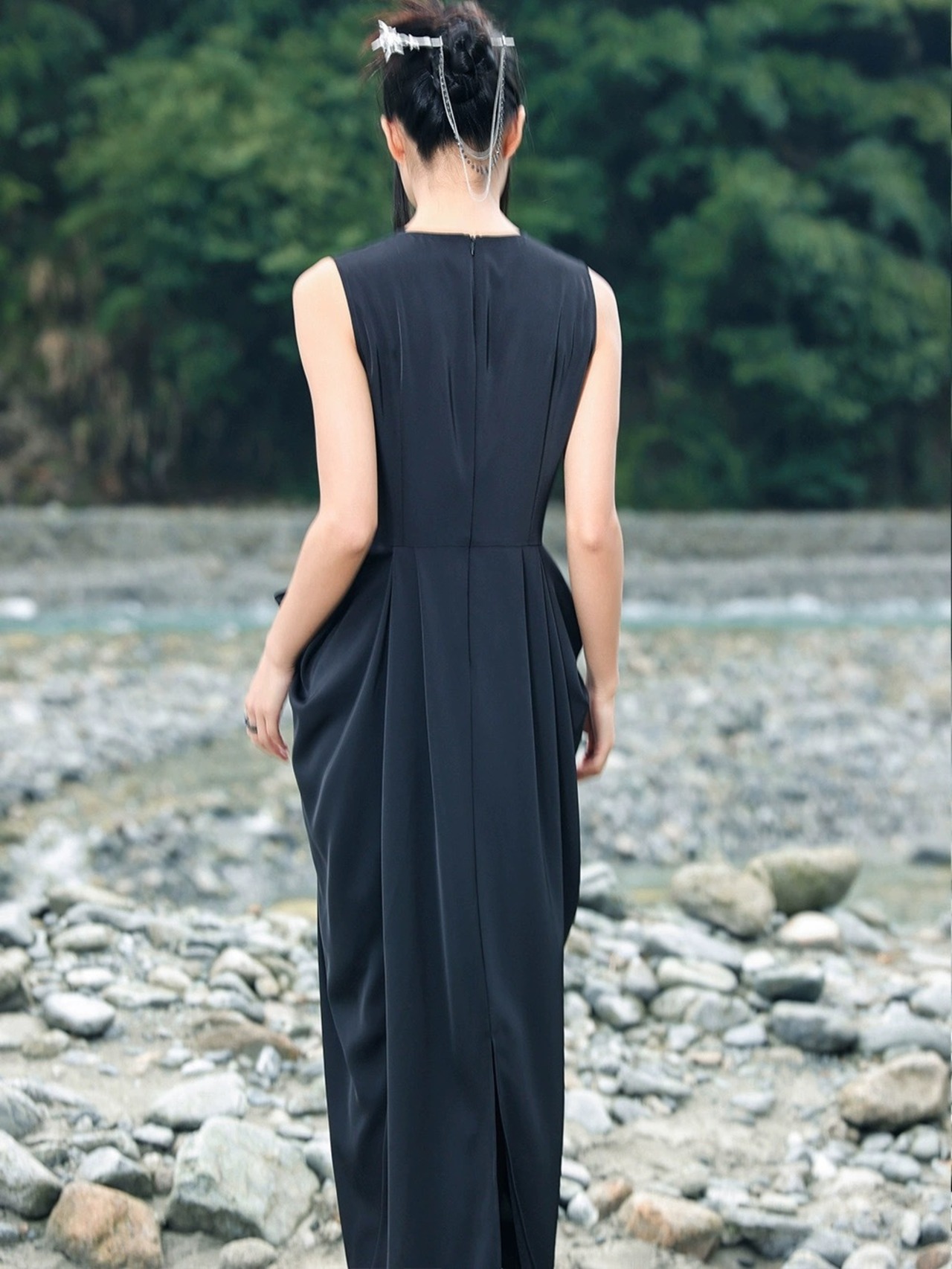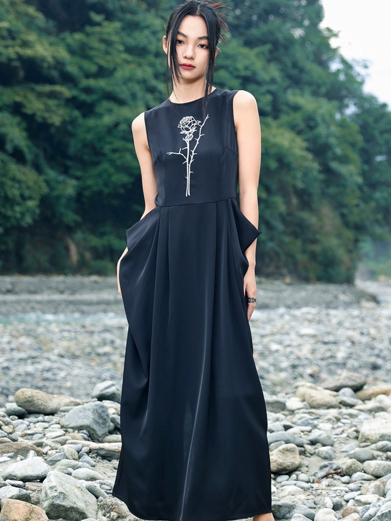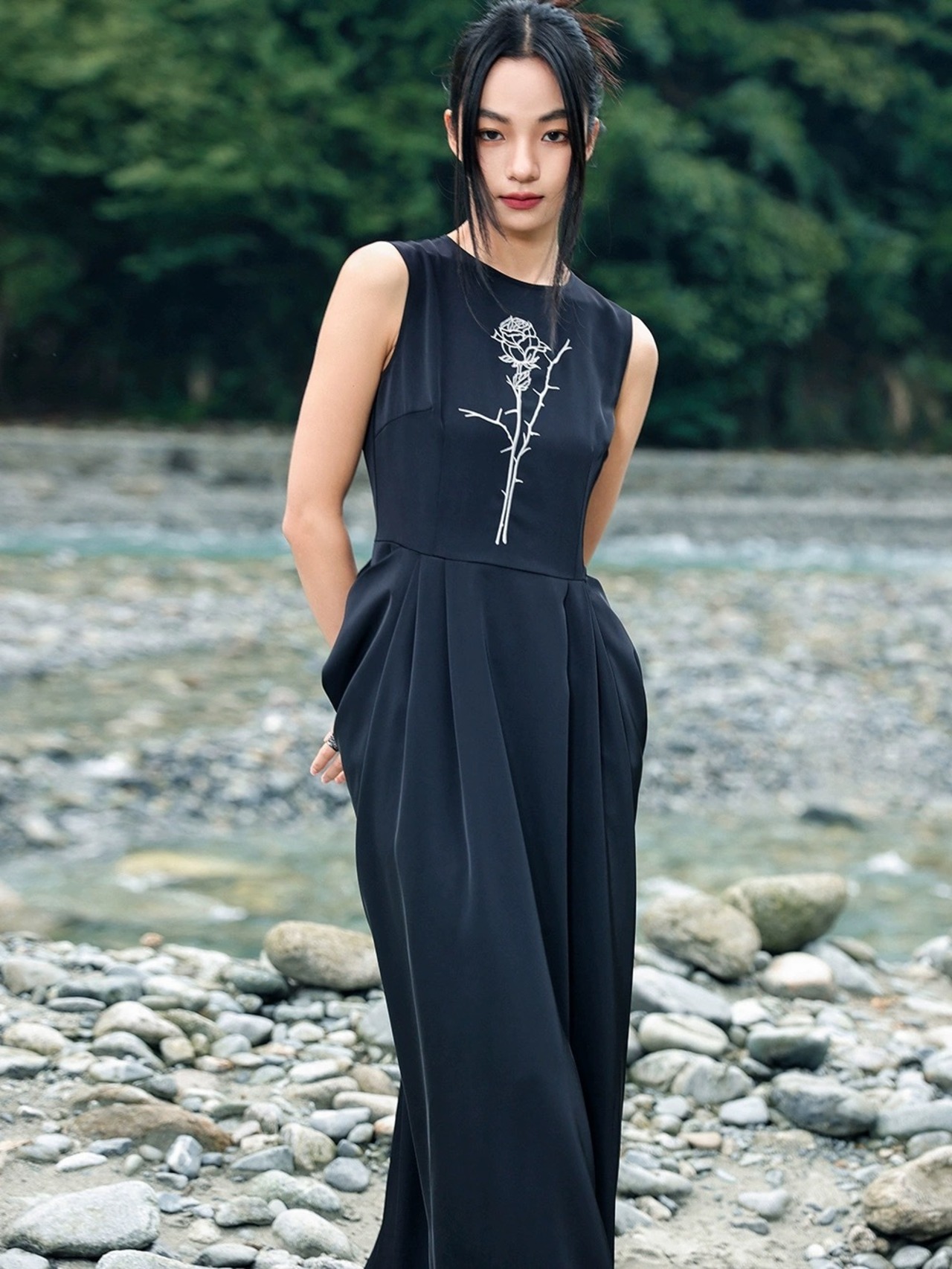 バラ 薔薇 花柄 フラワー 黒 ワンピース マキシ モード ブラック