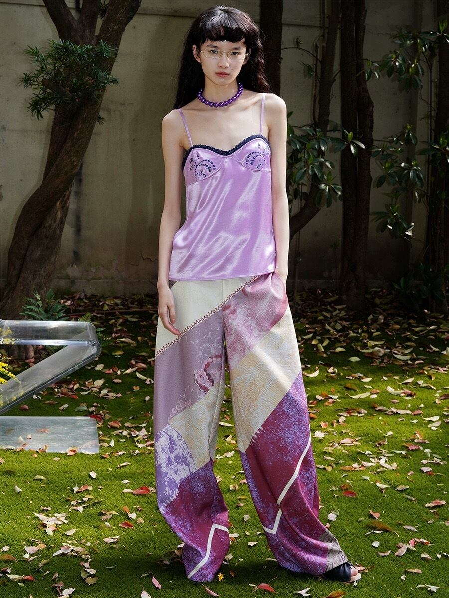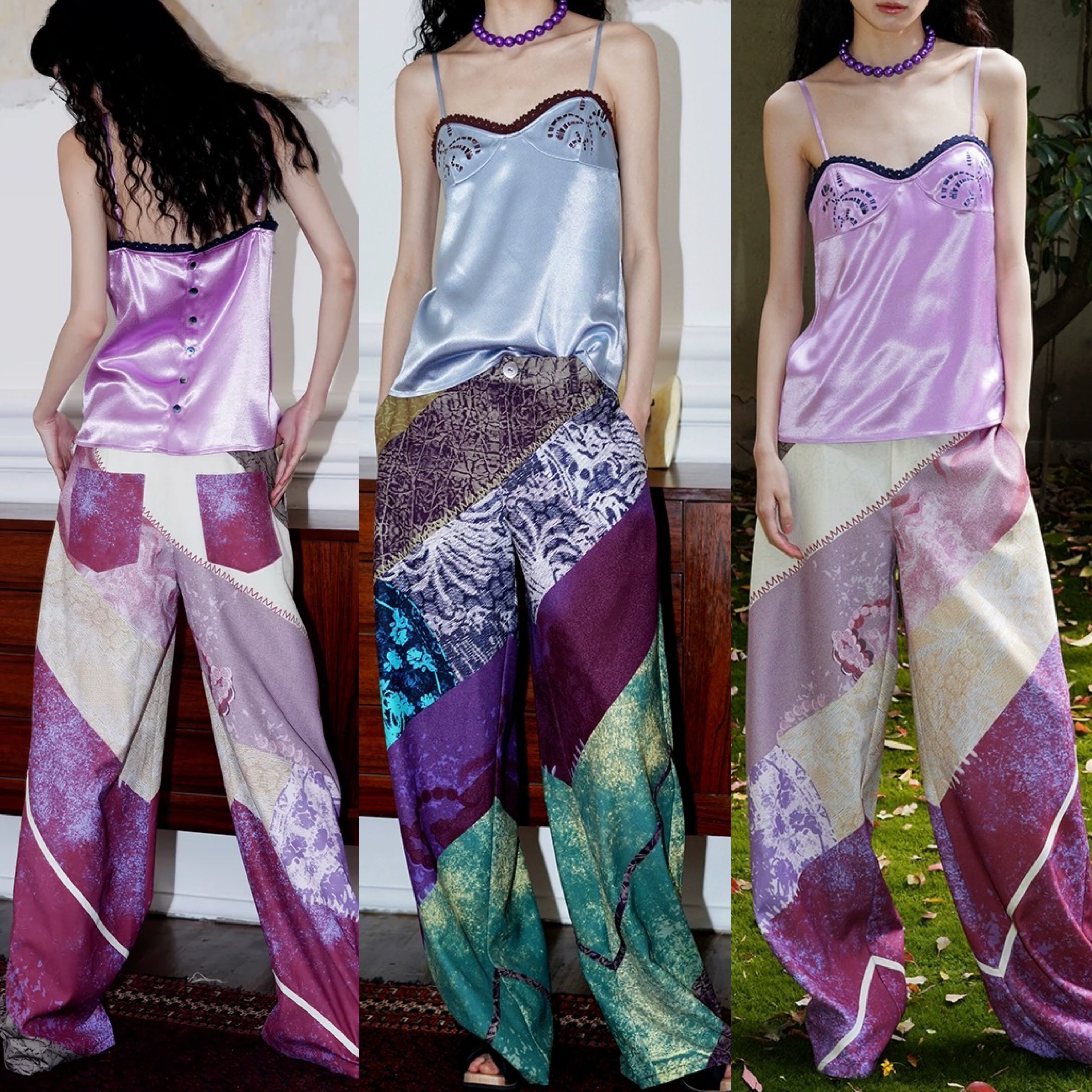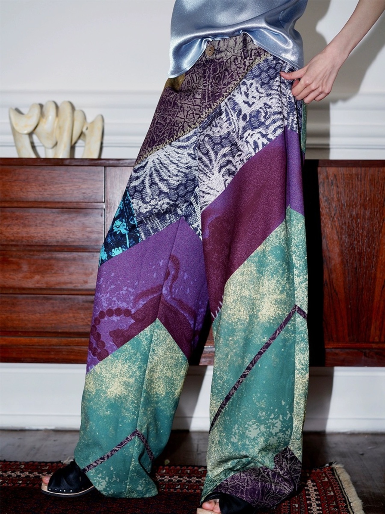 パンツ 紫 緑 エスニック アジア ボトムス ズボン