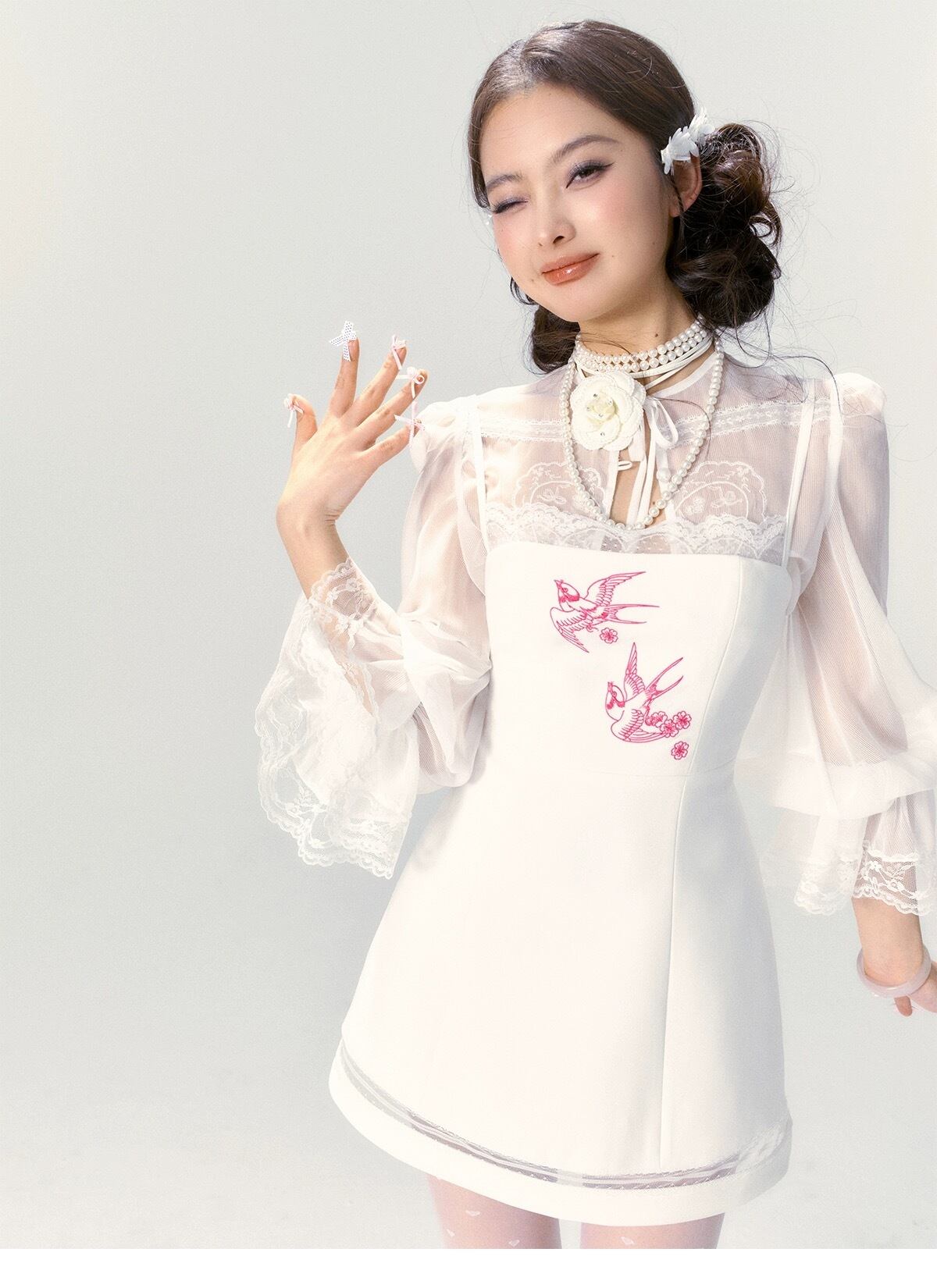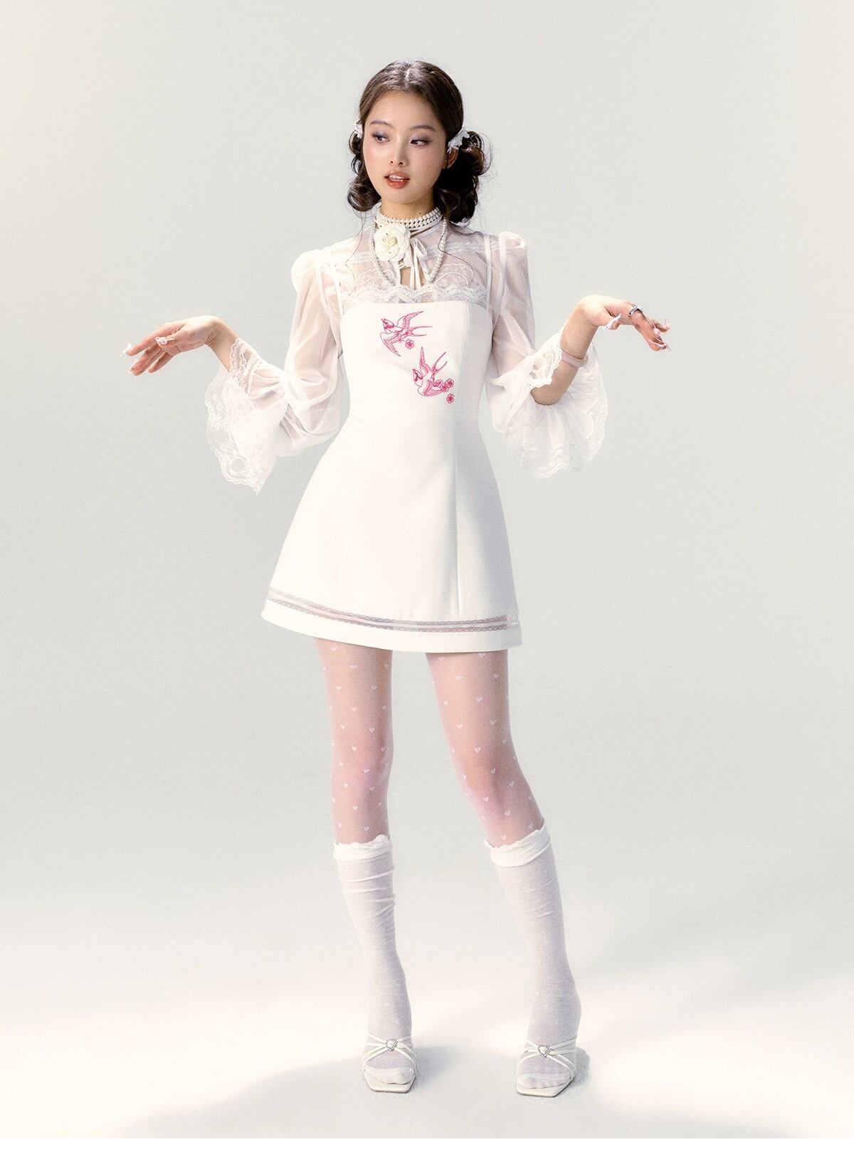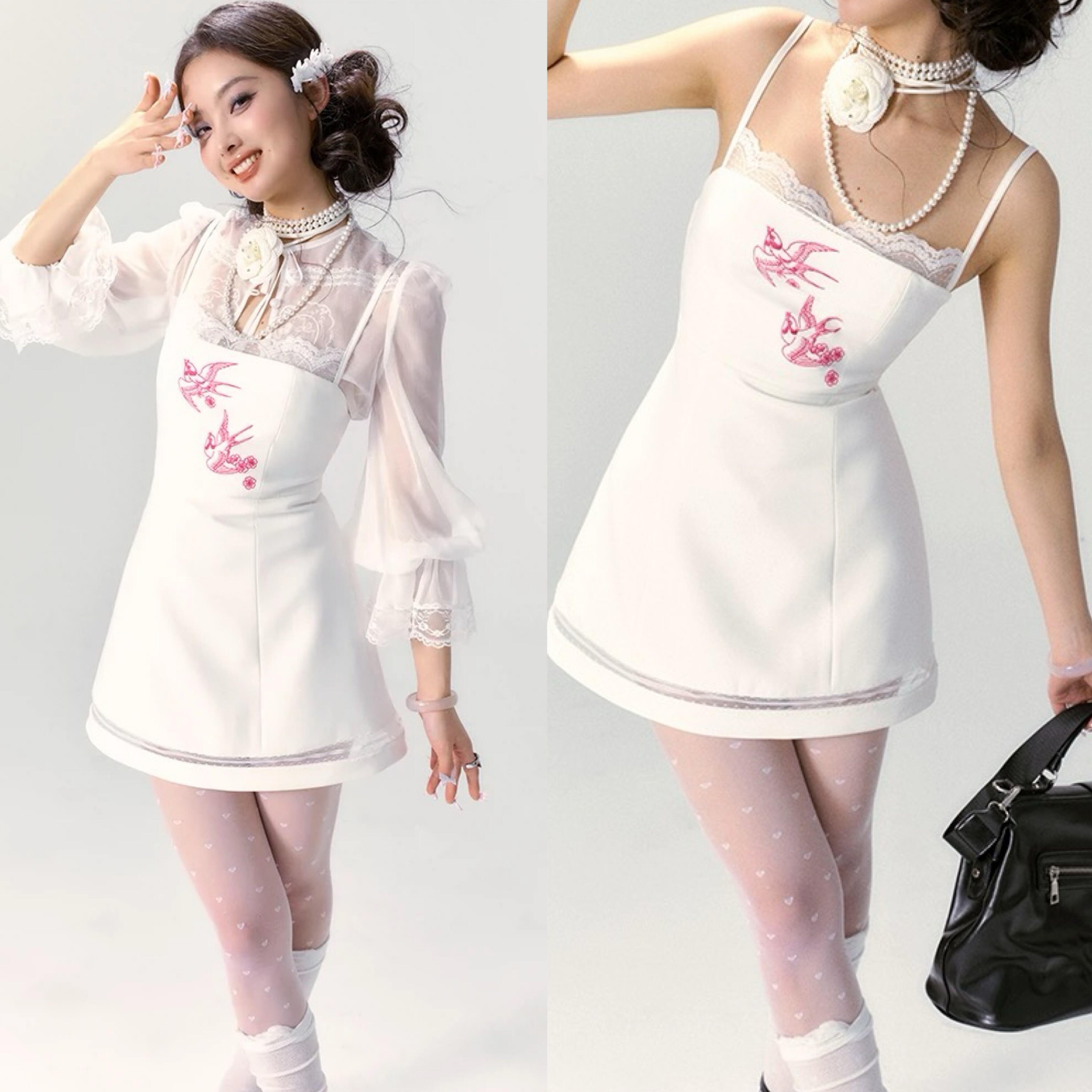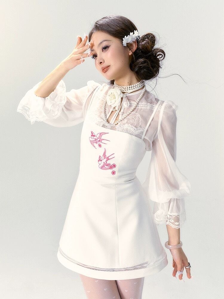 白 キャミソール ワンピース ガーリー 可愛い ピンク チャイナ