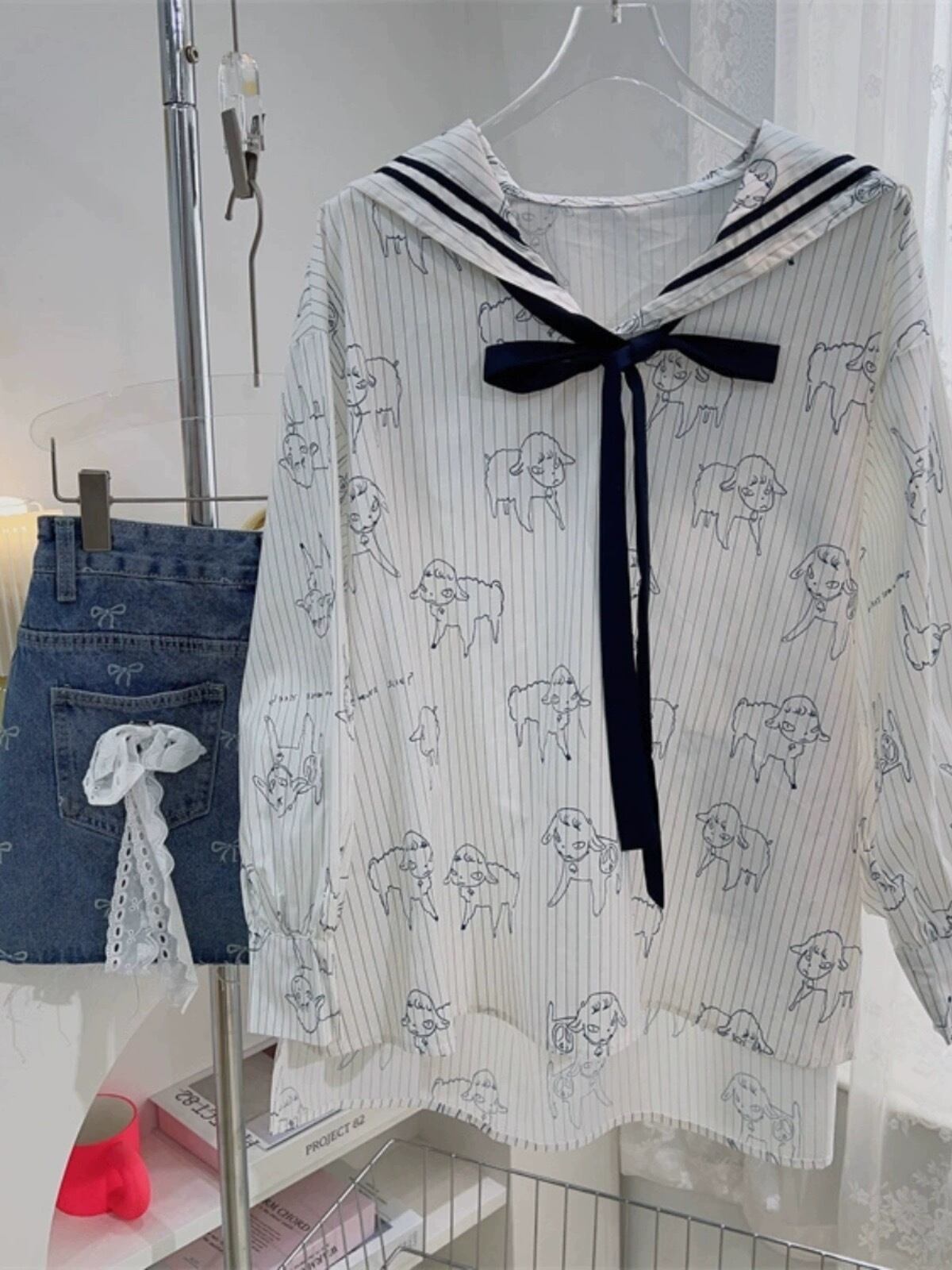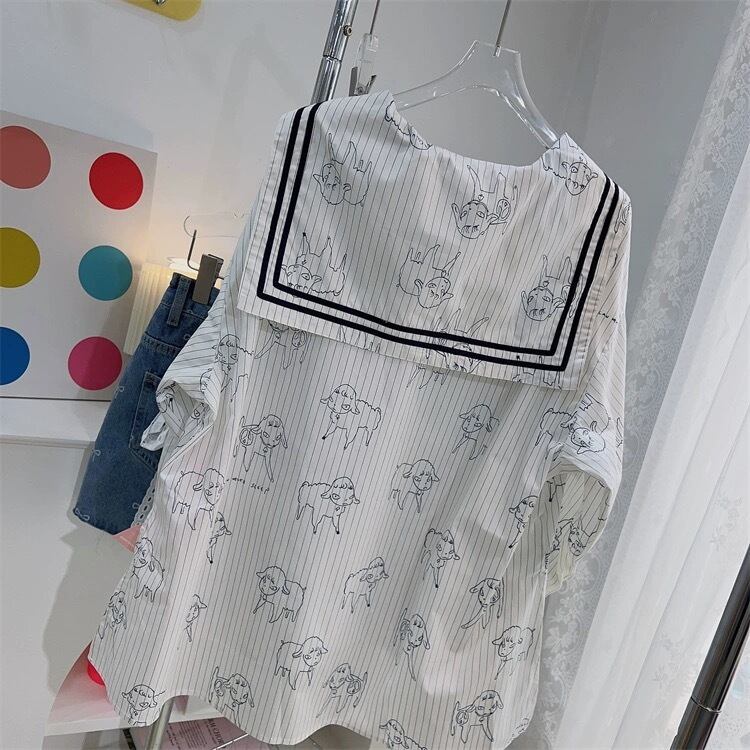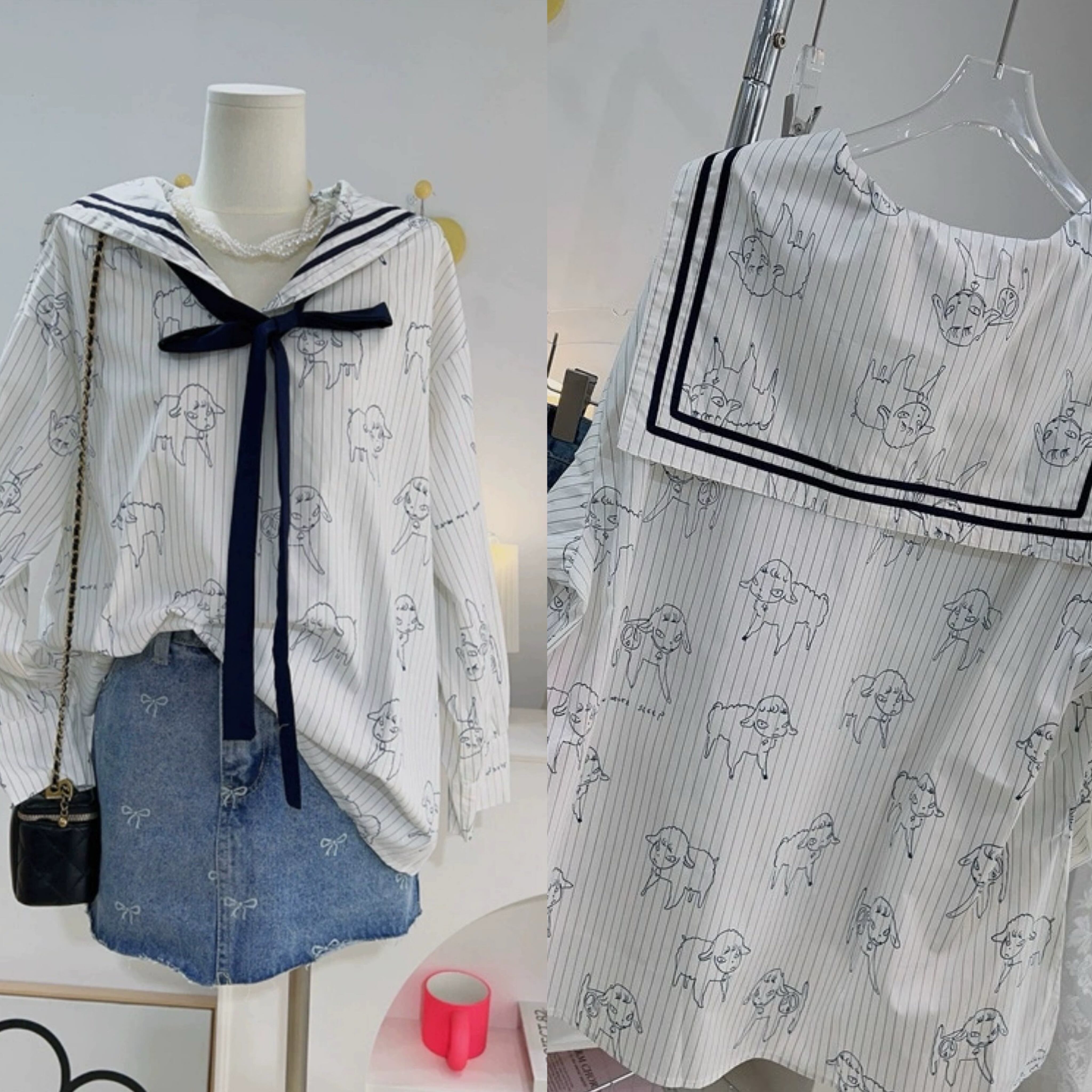 ブラウス セーラー ガーリー トップス ボーダー チェック マリン