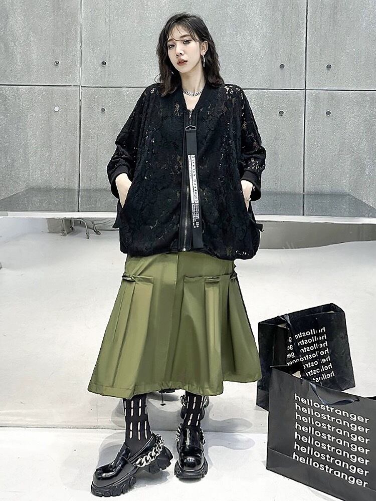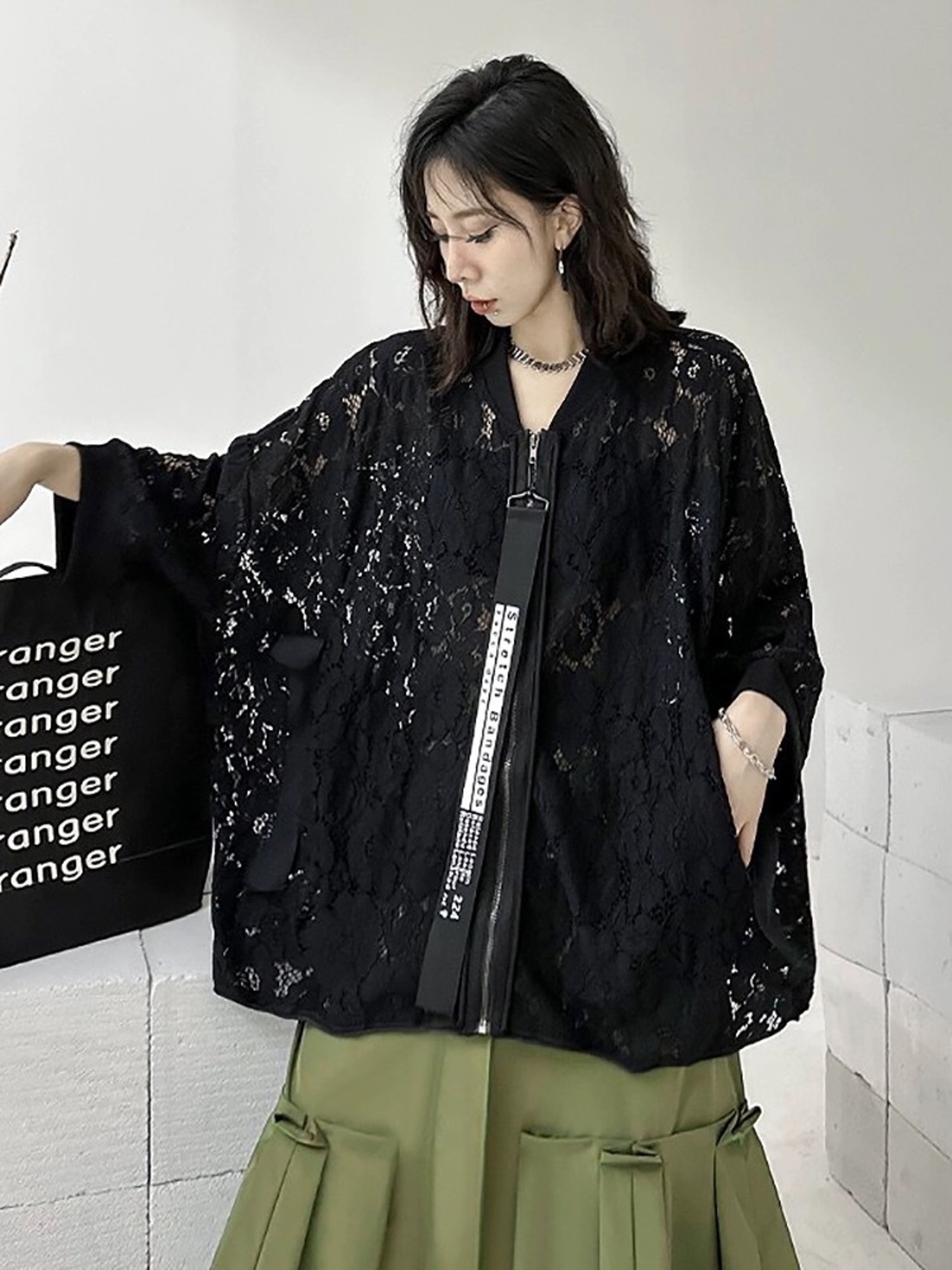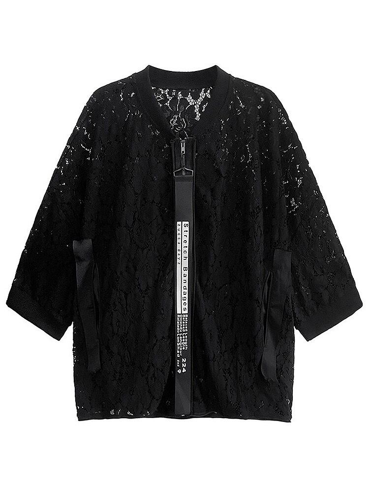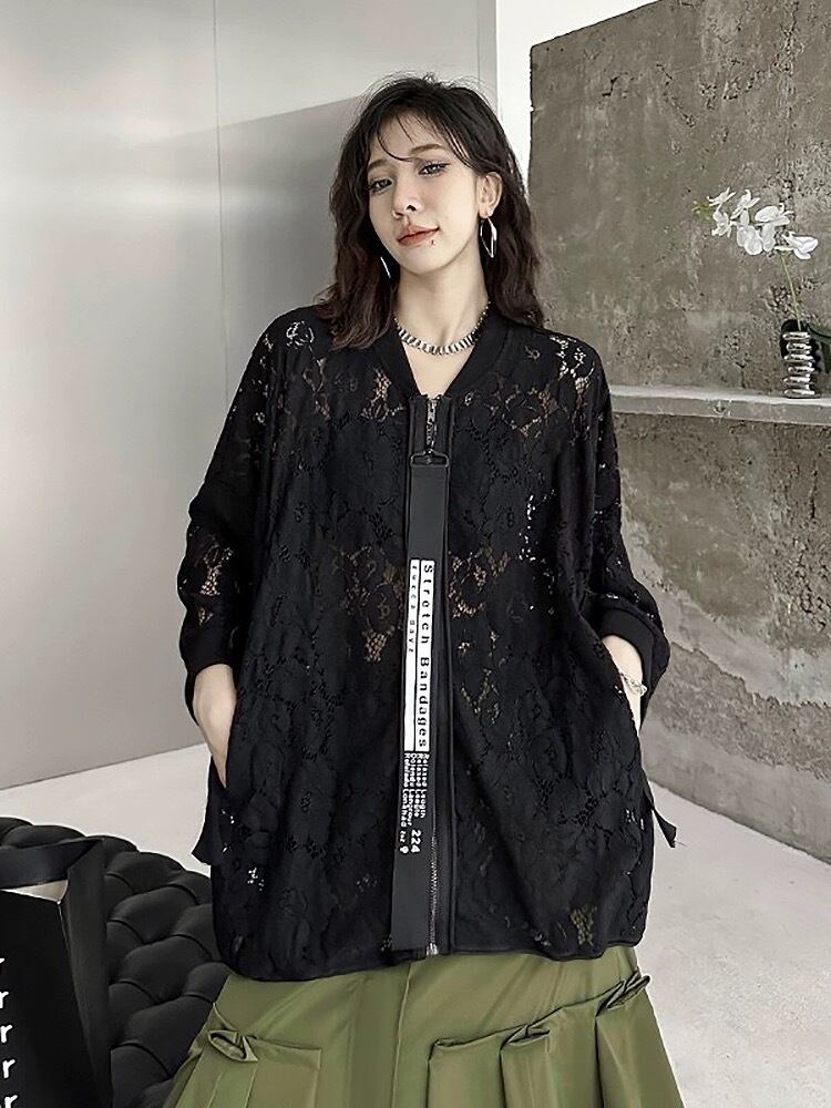 黒 ゆったり カーディガン ジャンパー レース アウター ビッグシルエット
