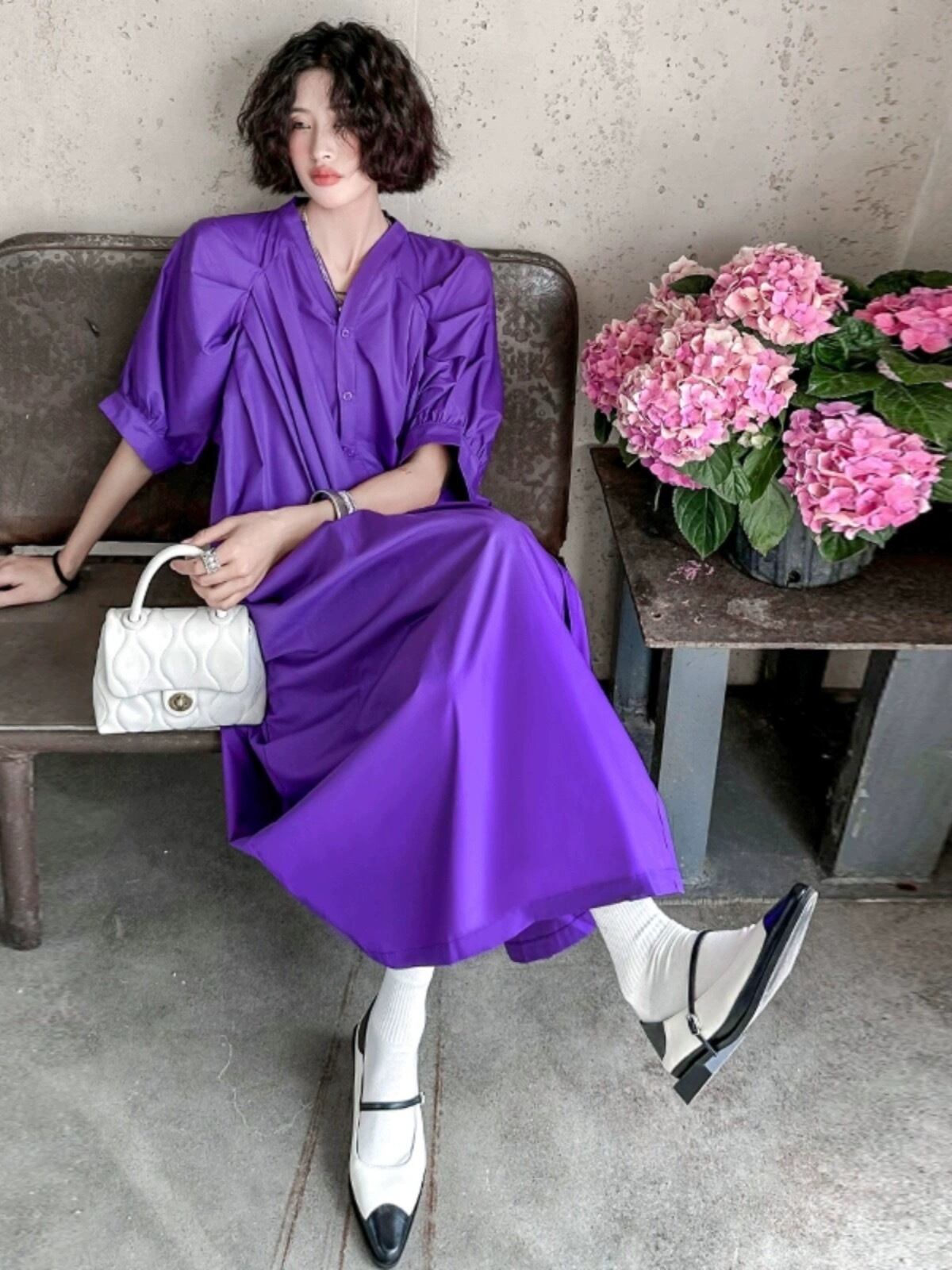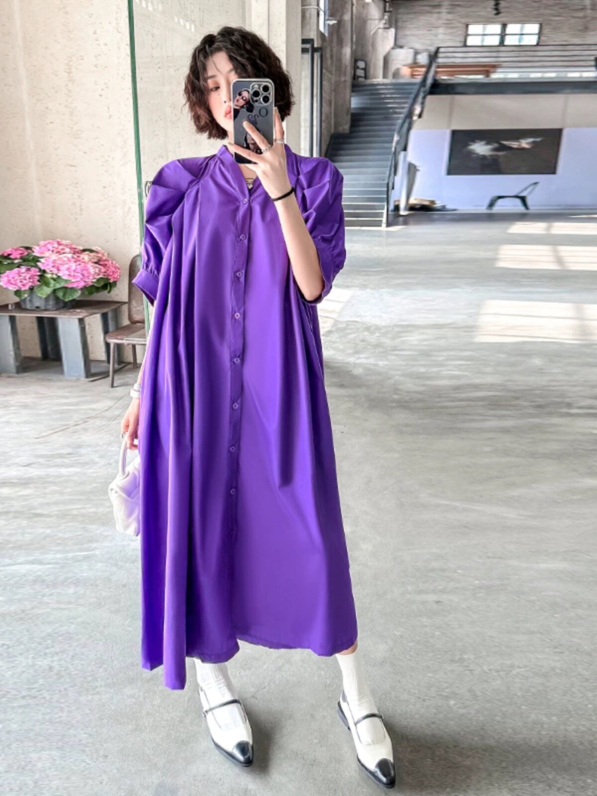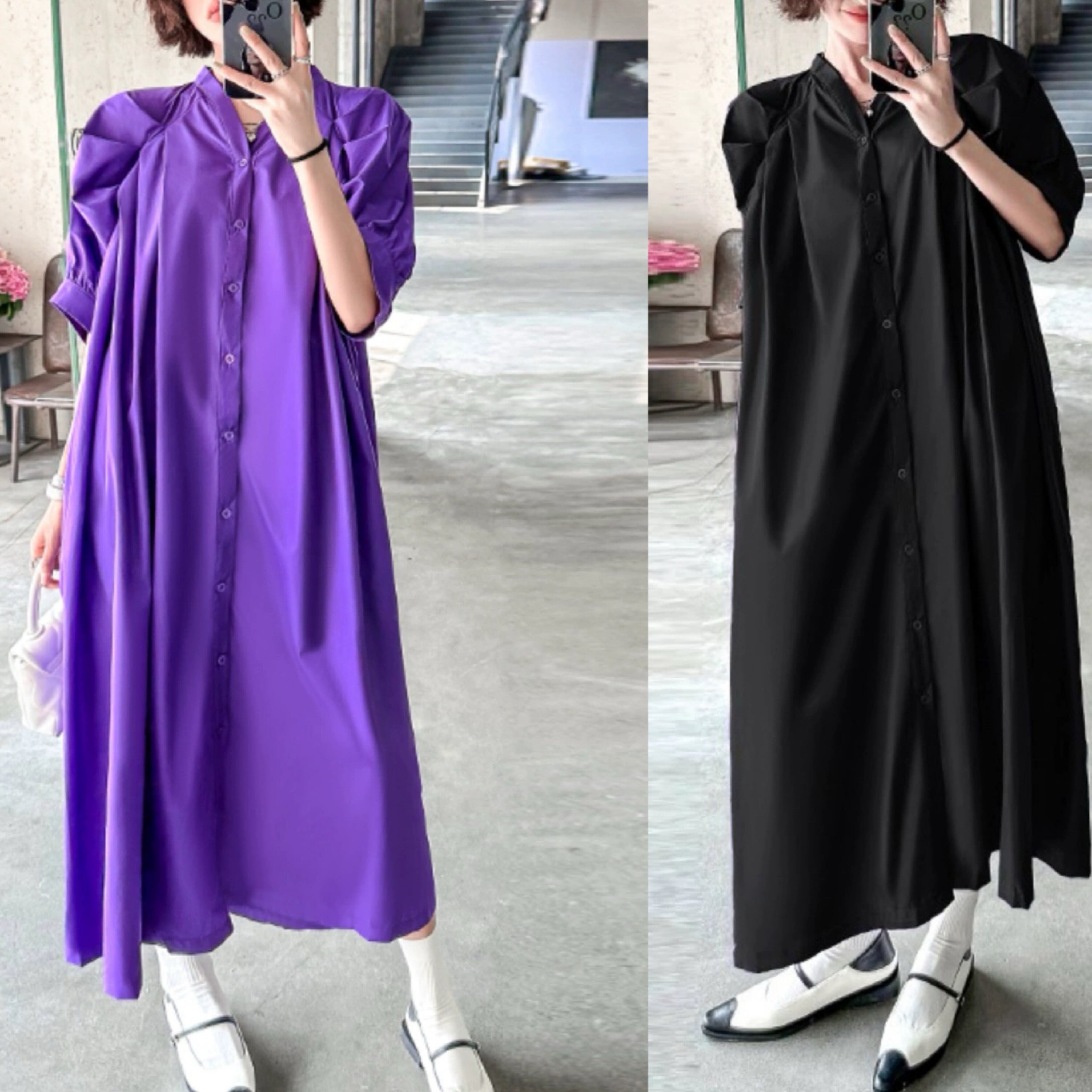 黒 紫 ブラウス ワンピース カジュアル トップス ゆったり XL