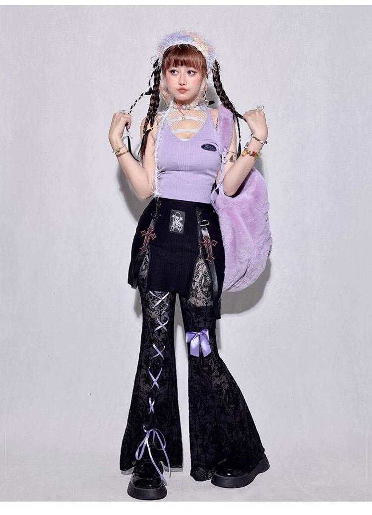 パンツ ボトムス 原宿 デニム コルセット ピンク