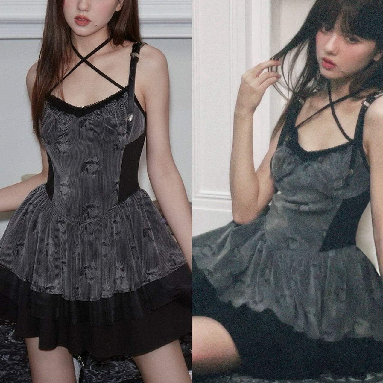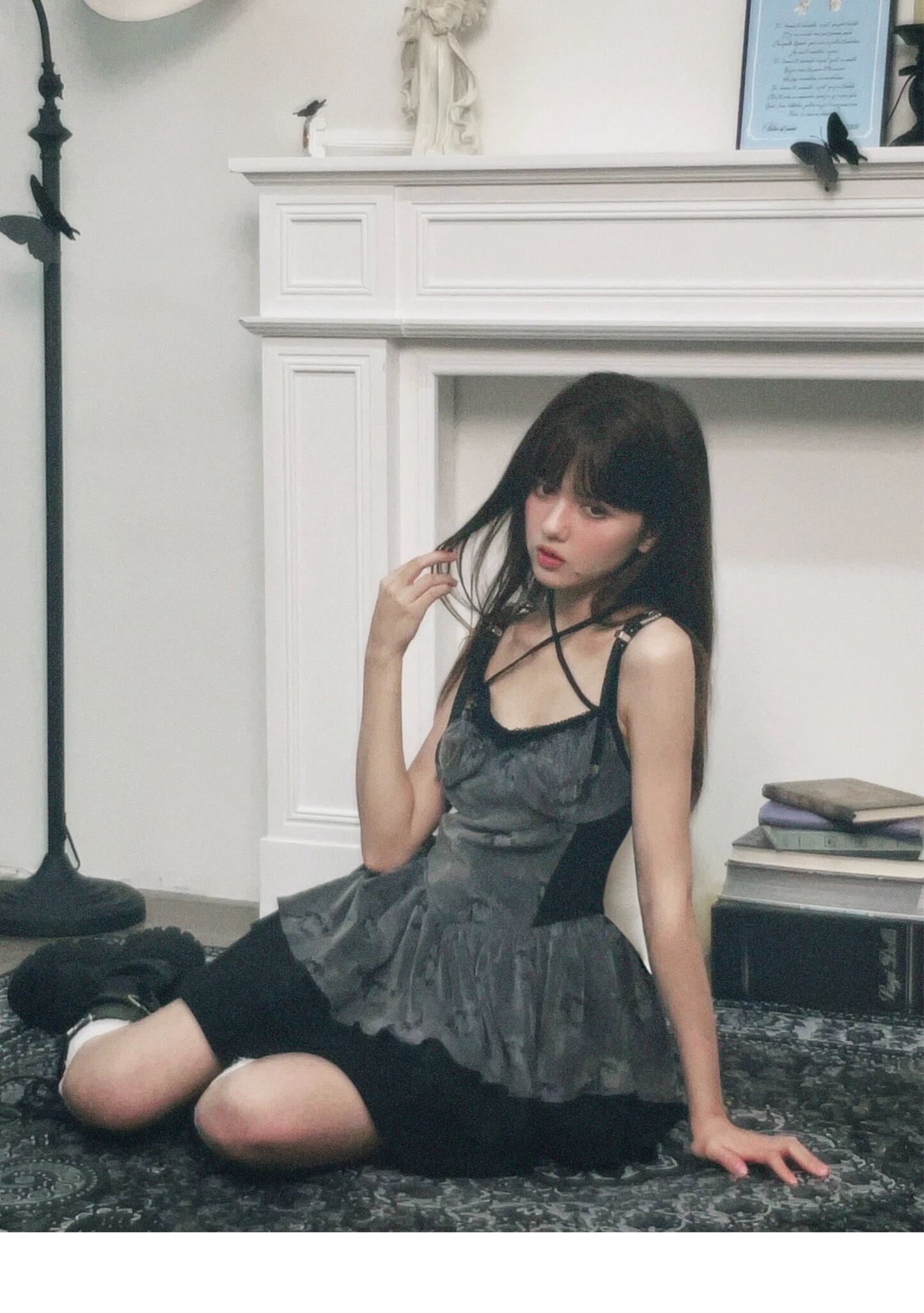キャミソール ガーリー グレー チェック ワンピース スクール