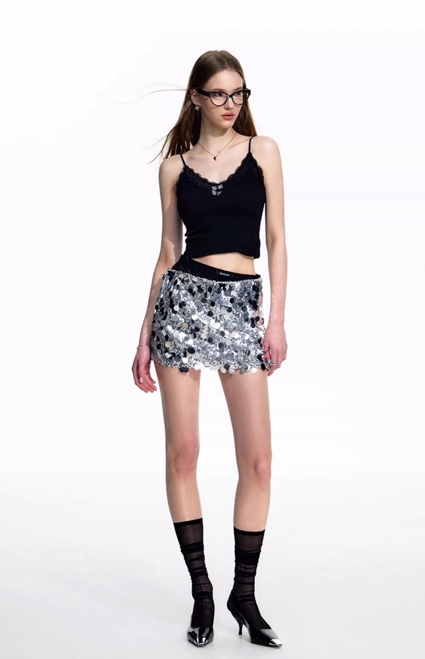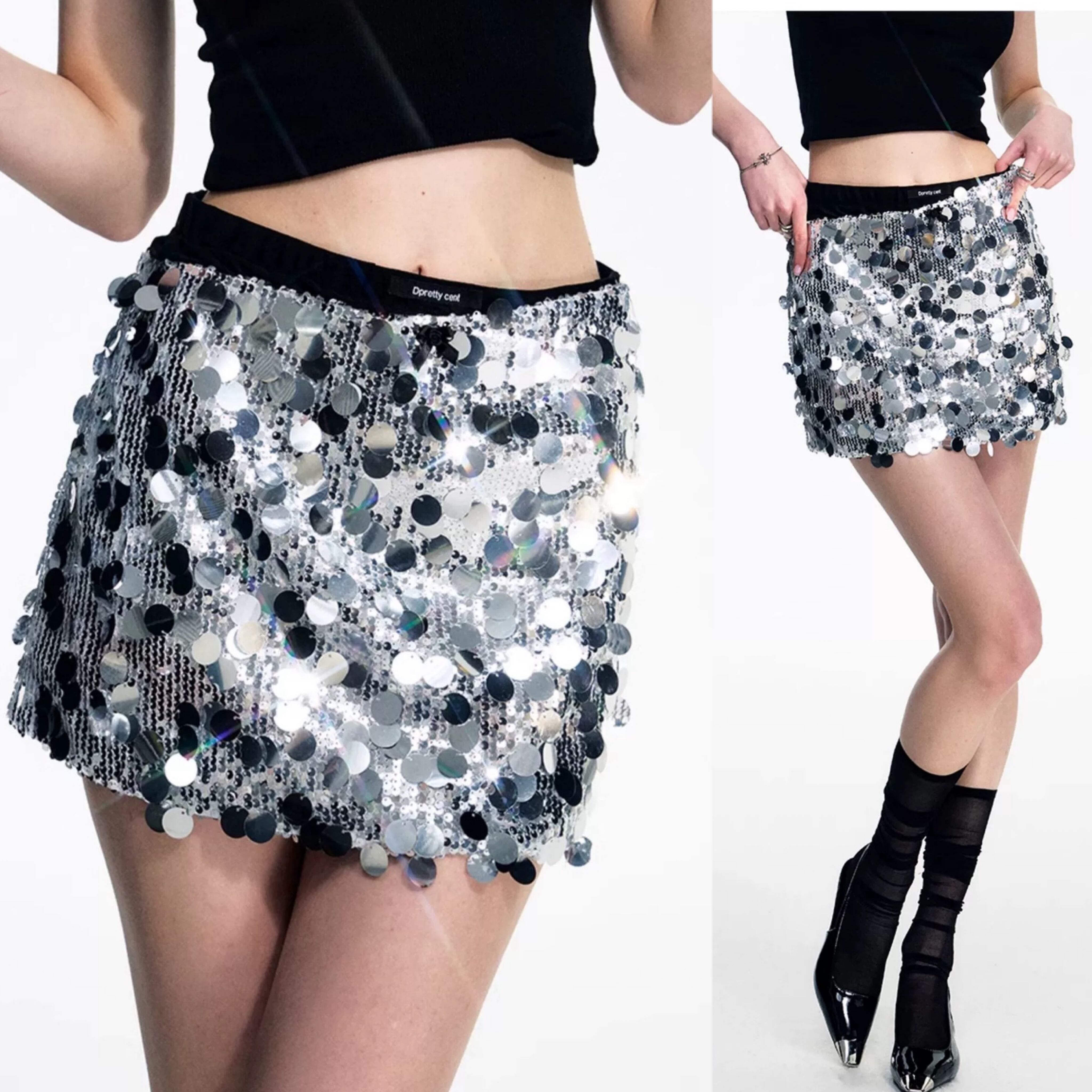 キラキラ スパンコール シルバー ミニスカート ボトムス ダンス
