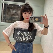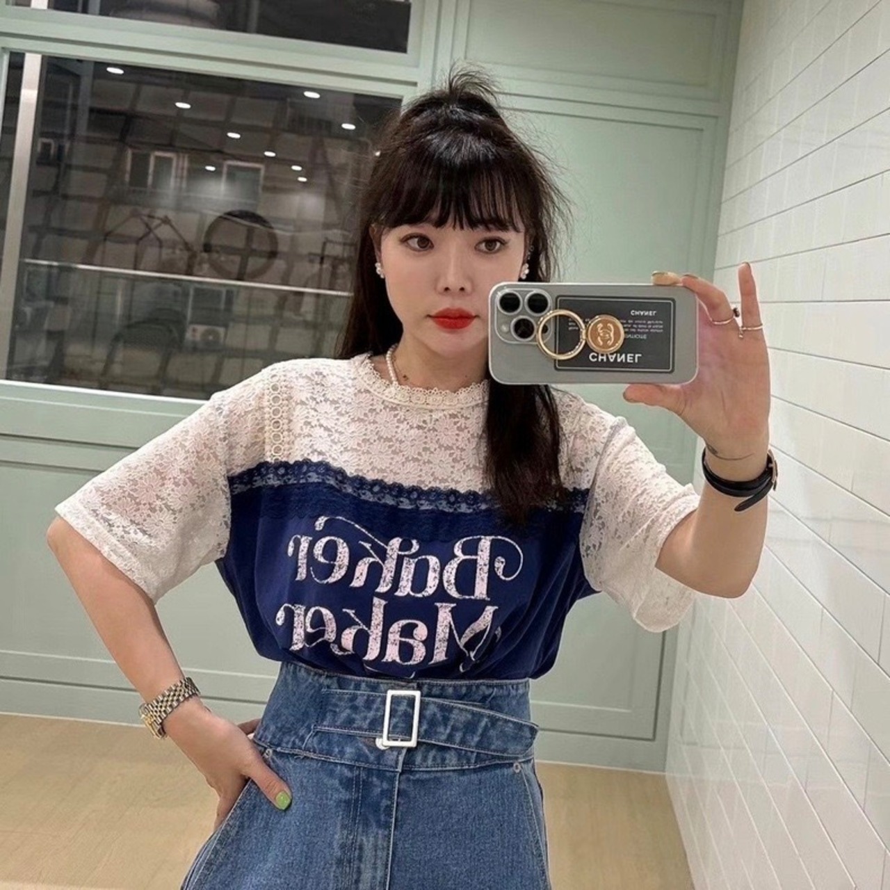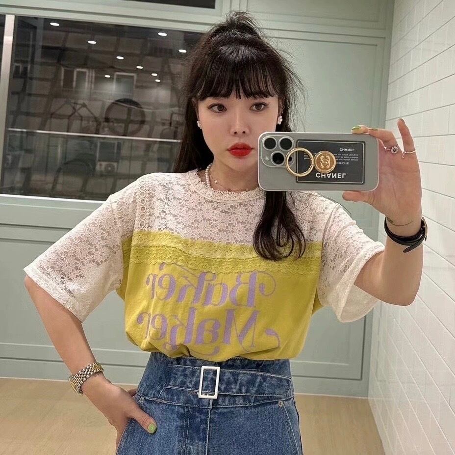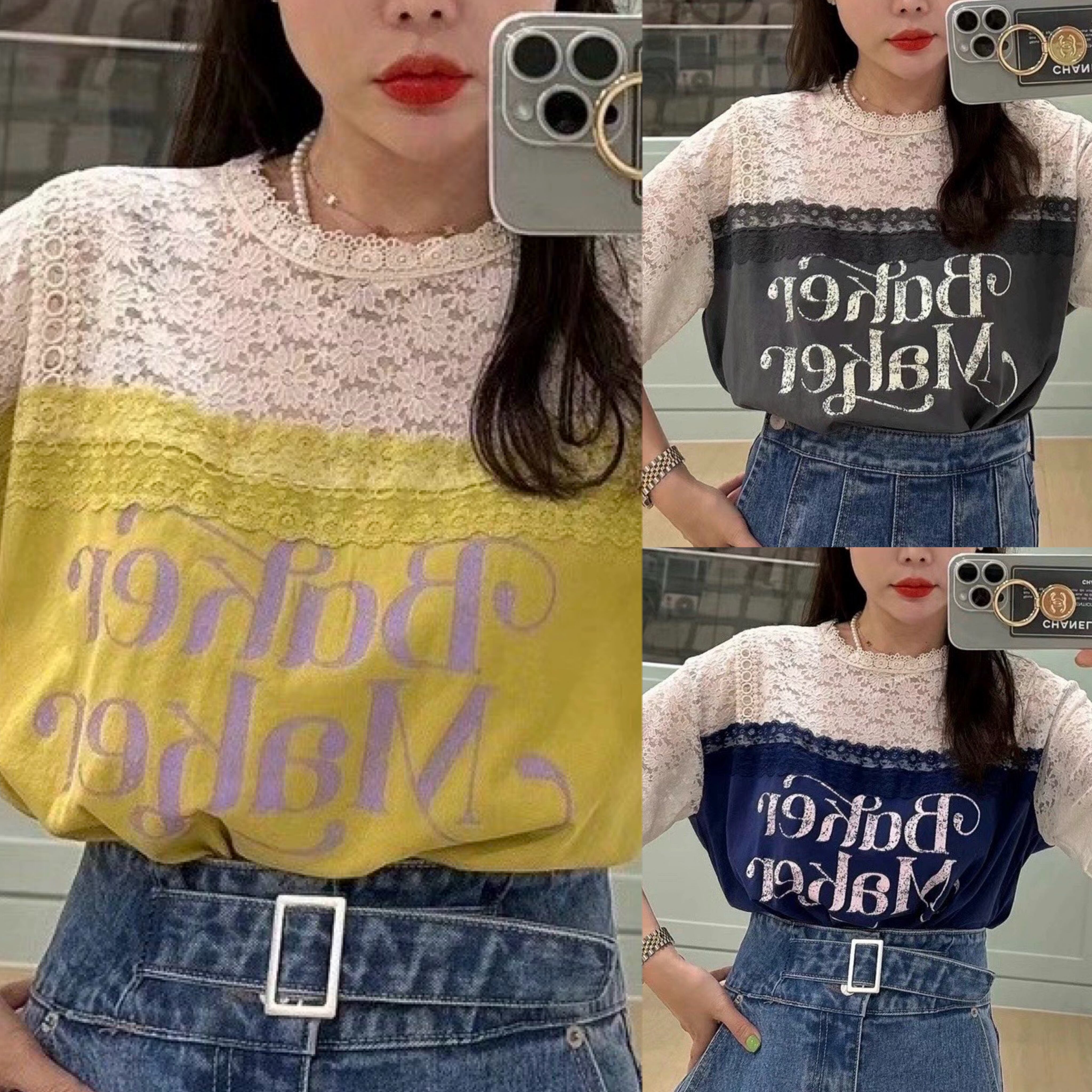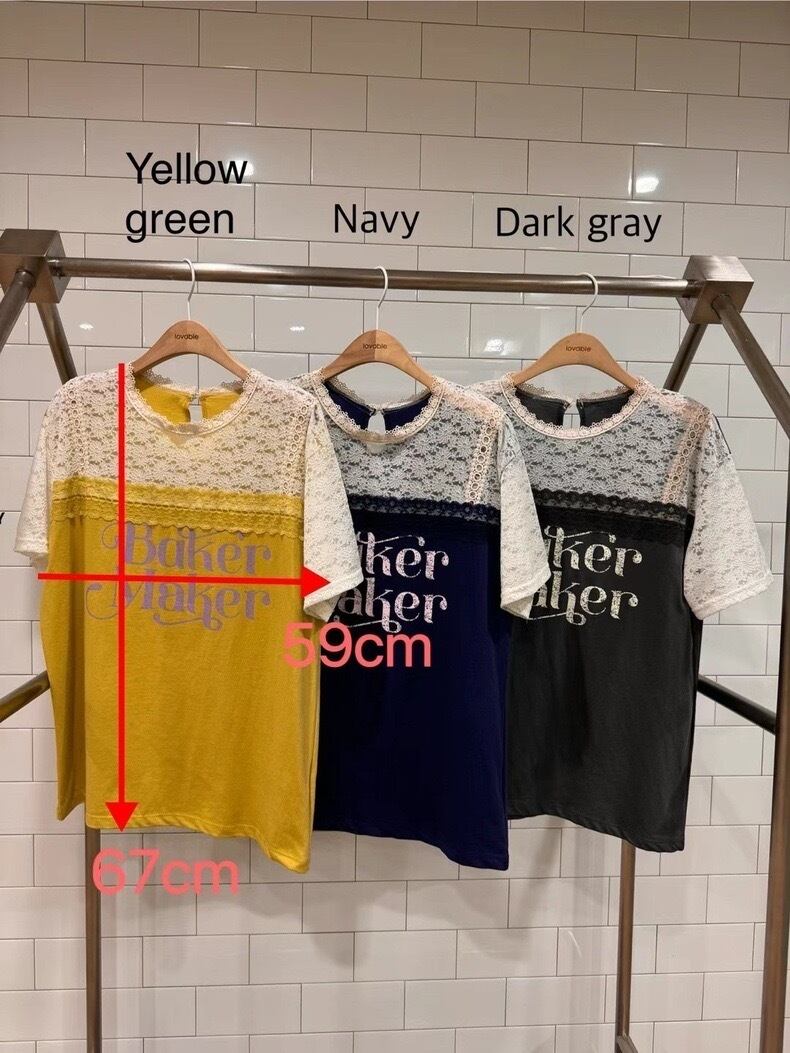 レース グレー 黄色 ネイビー トップス ブラウス Tシャツ レース ガーリー