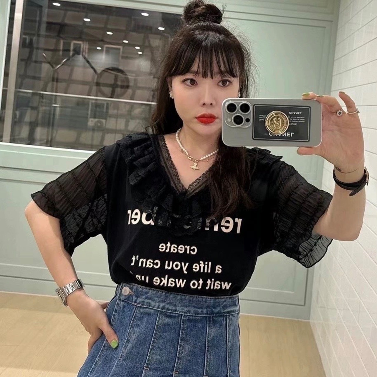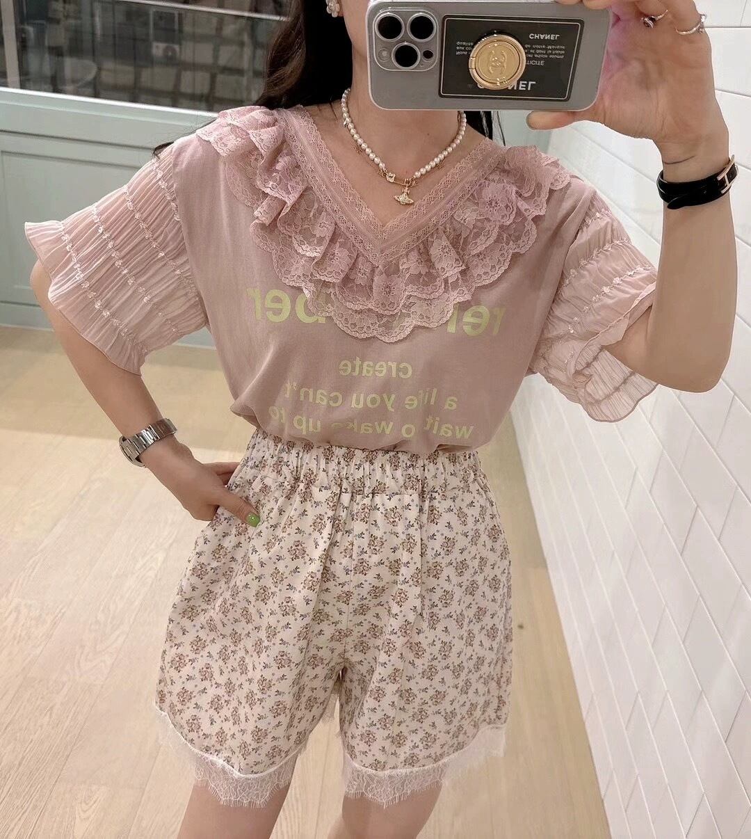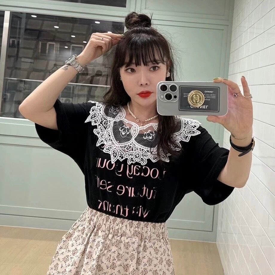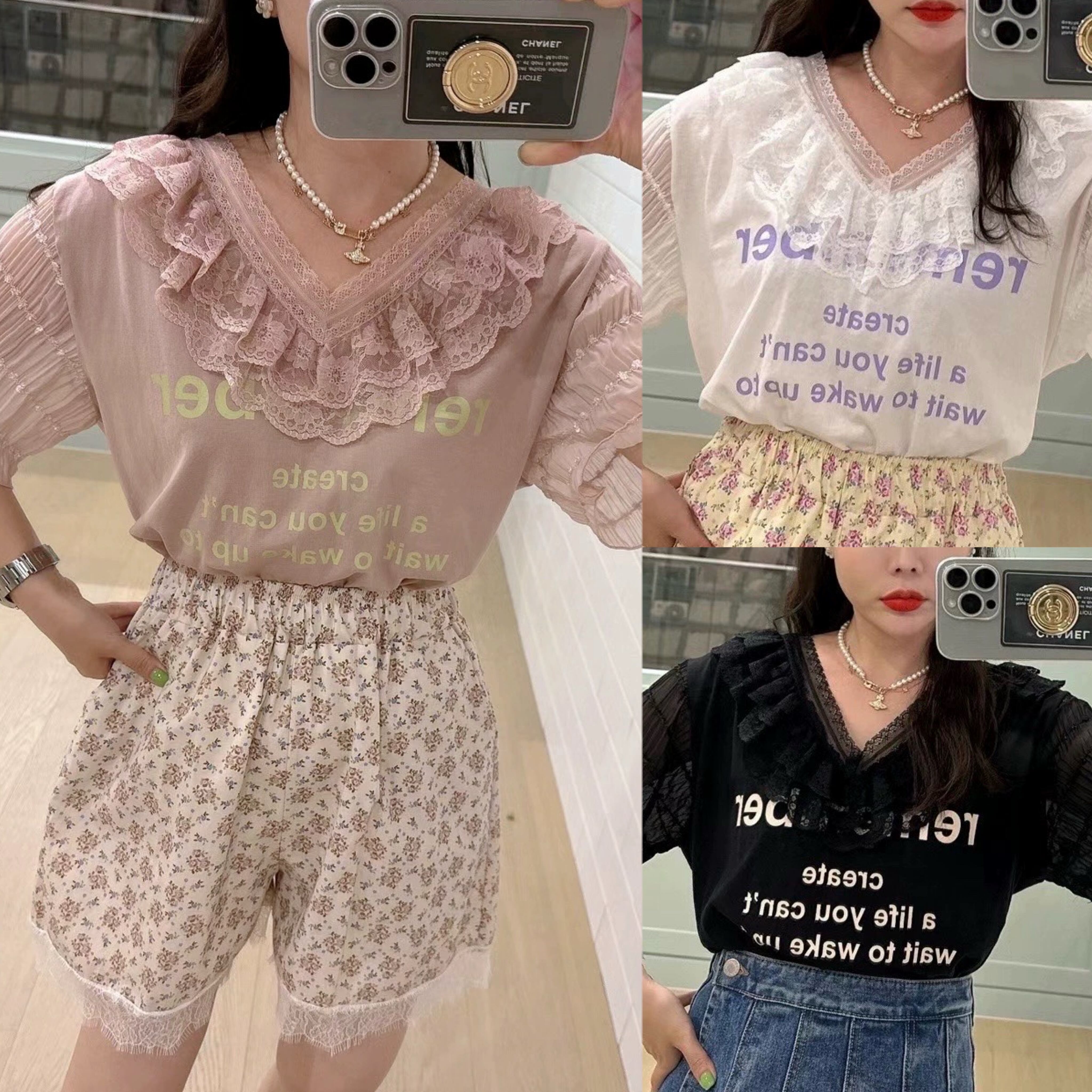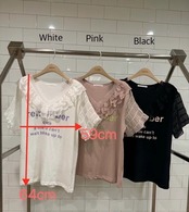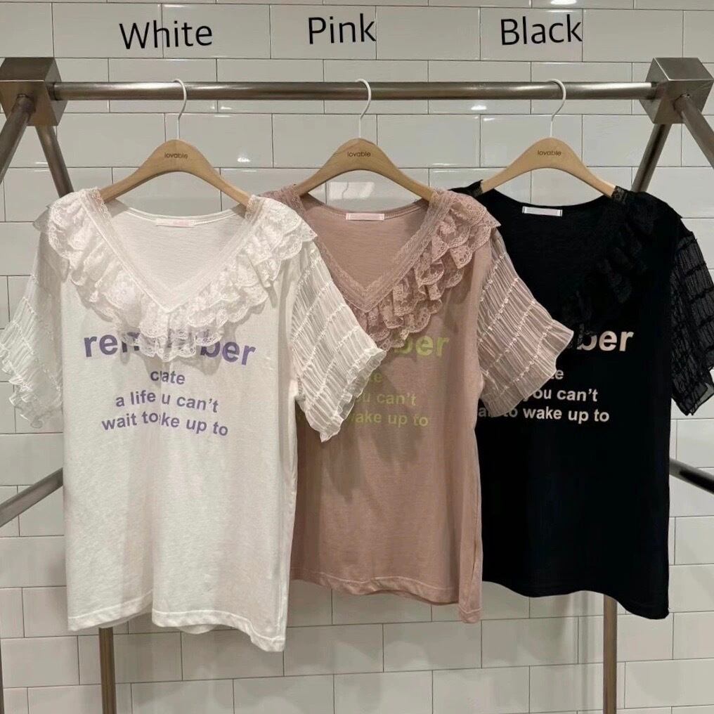 ピンク 黒 白 カジュアル トップス ガーリー 丸襟 Tシャツ