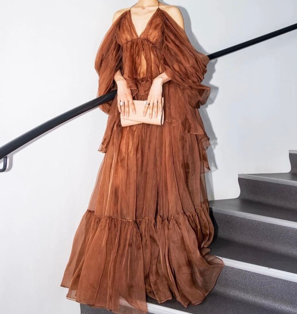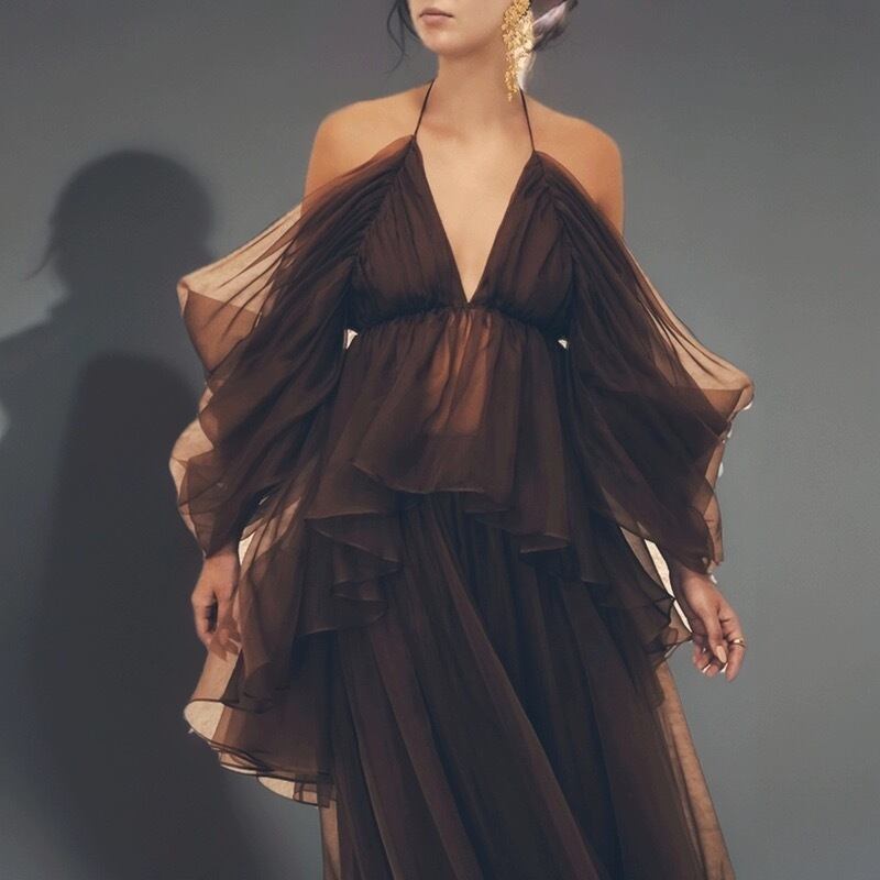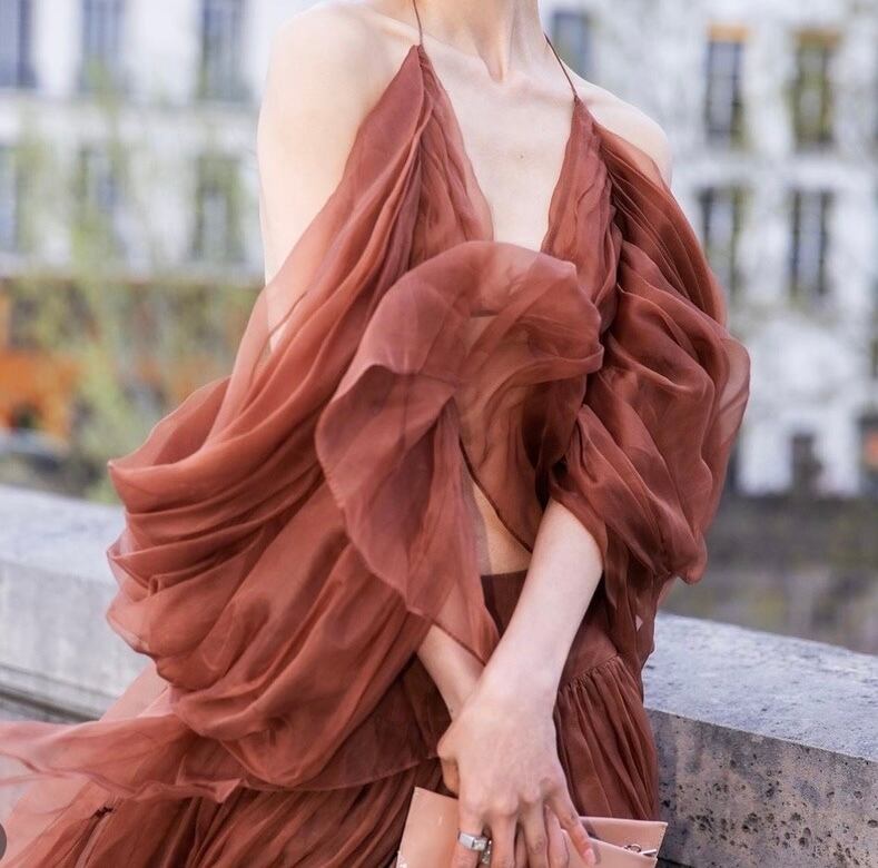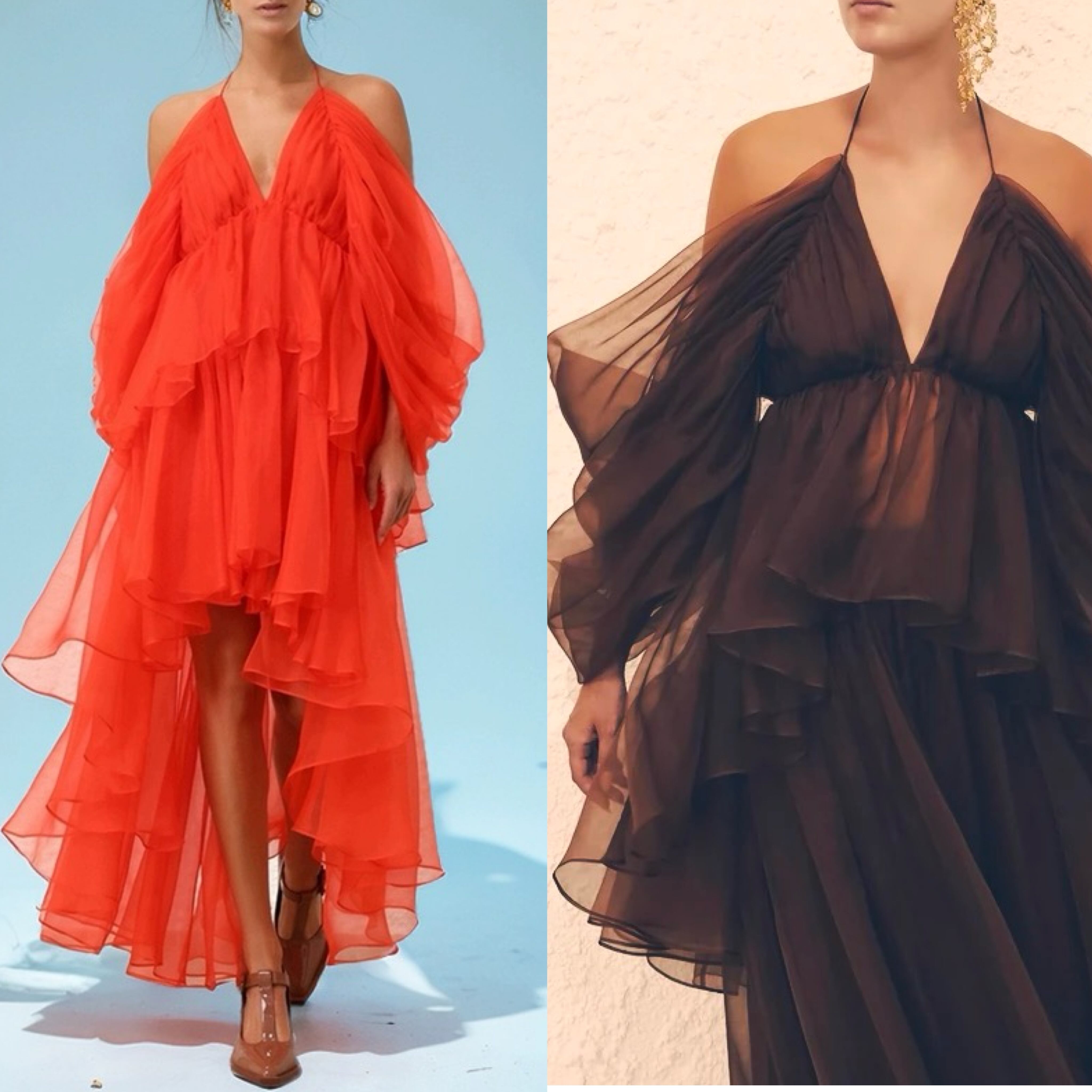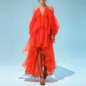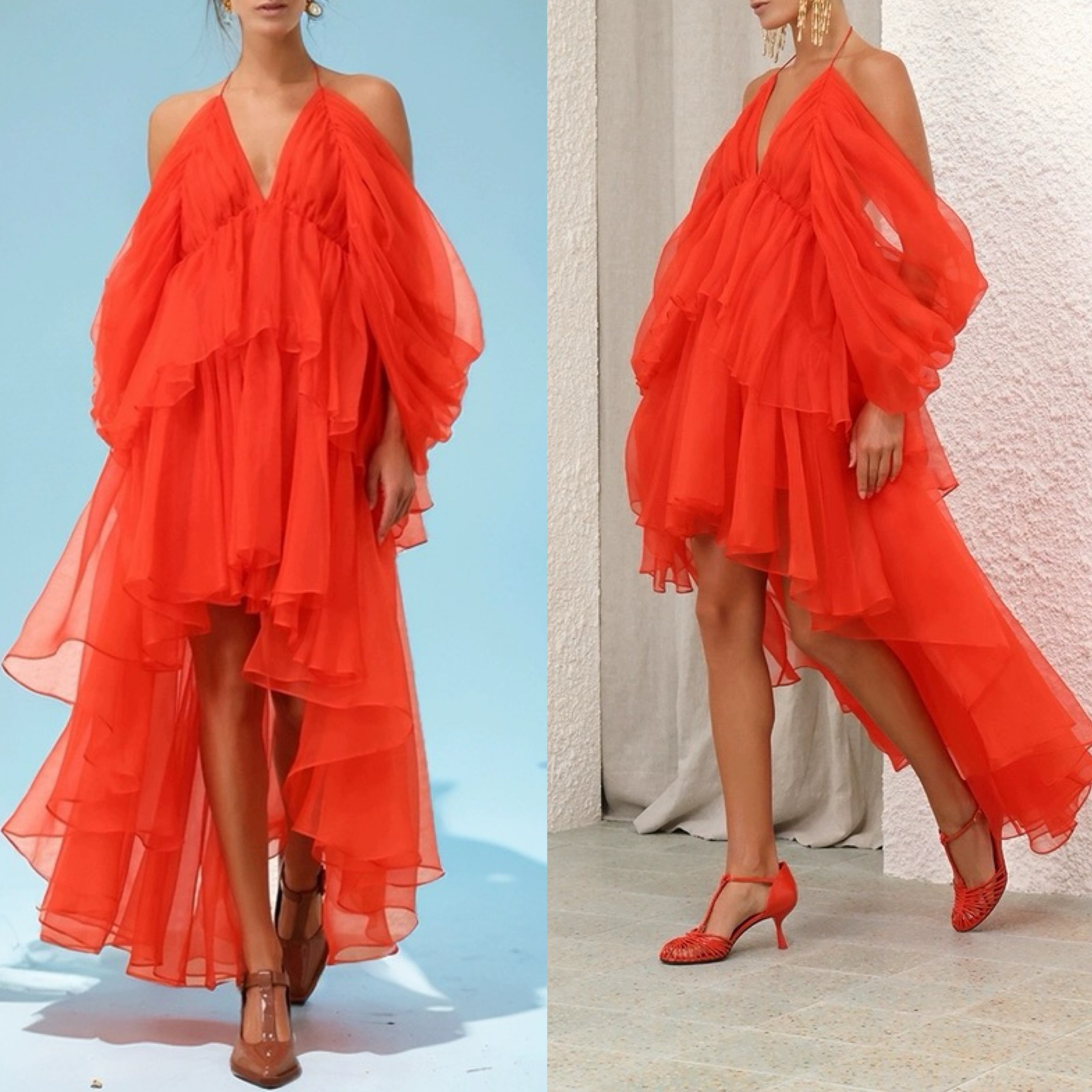 ワンピース ドレス ゴージャス オレンジ 黒 スカート オフショルダー