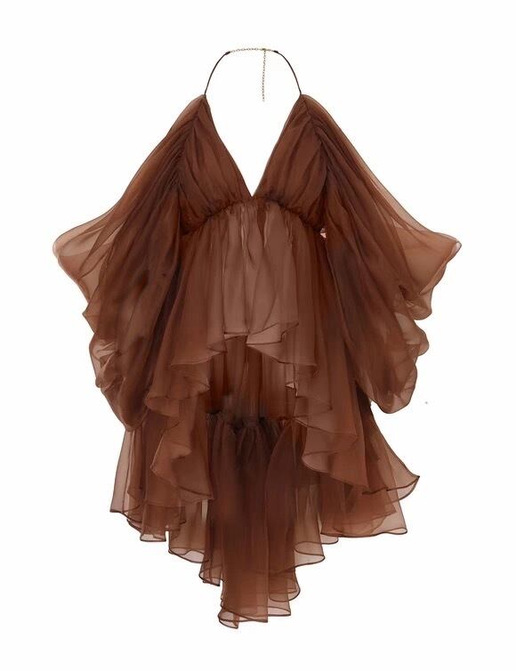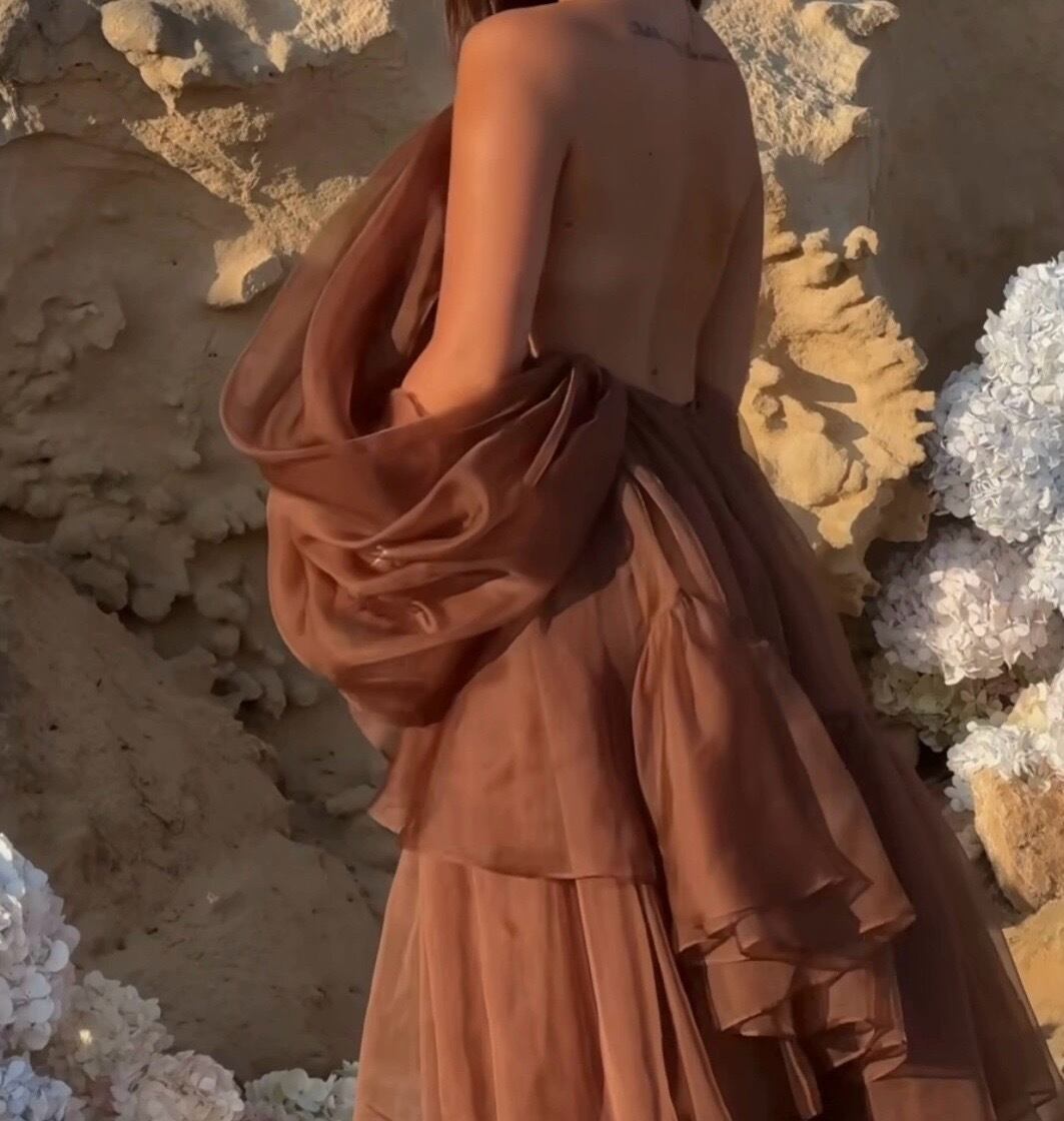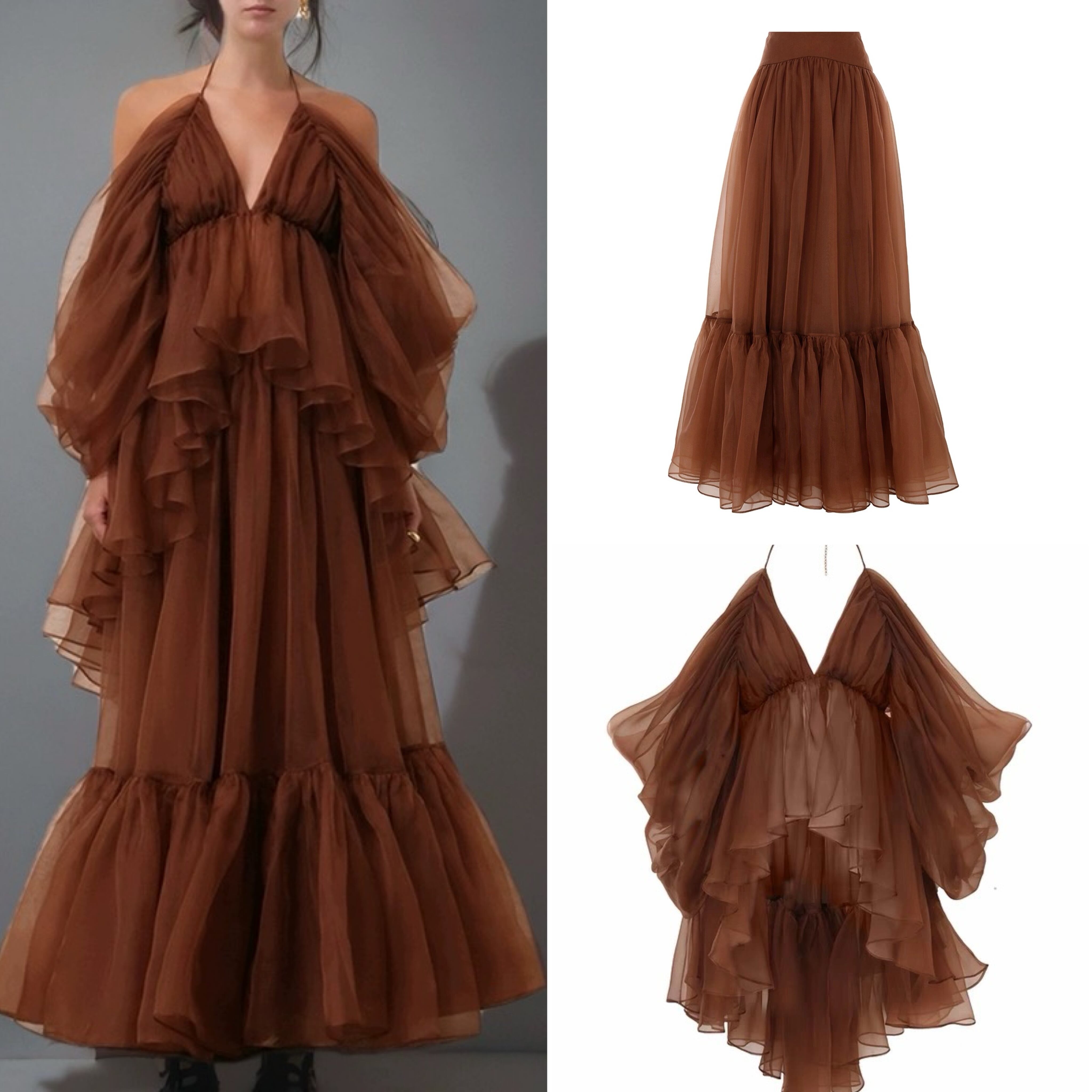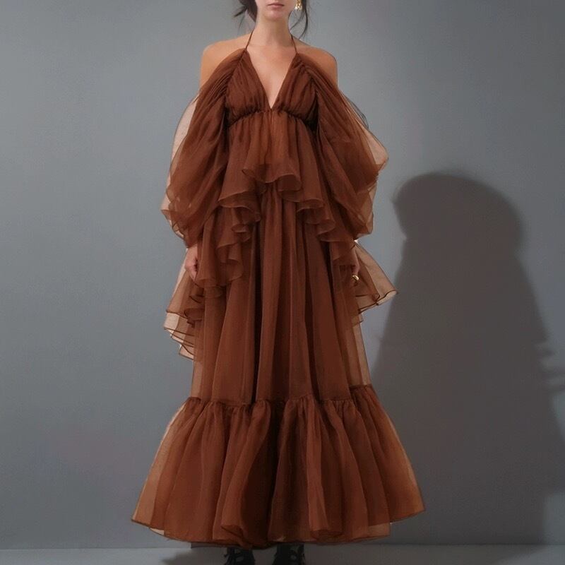 茶色 セットアップ ワンピース マキシ ゆったり ブラウス オフショルダー