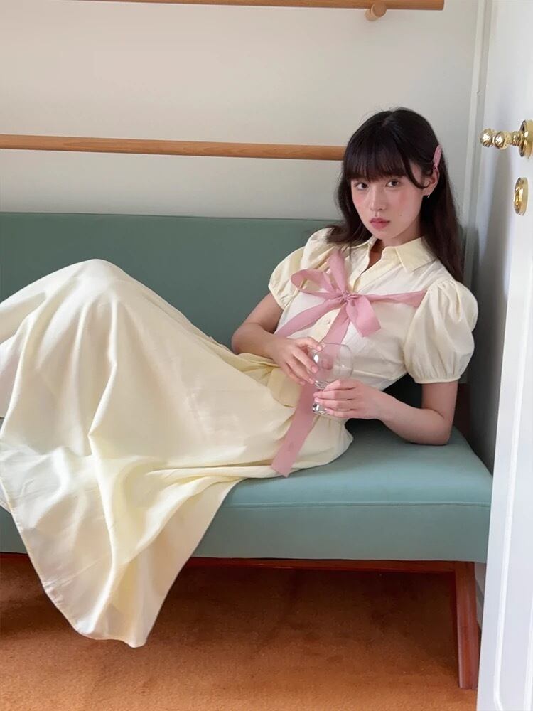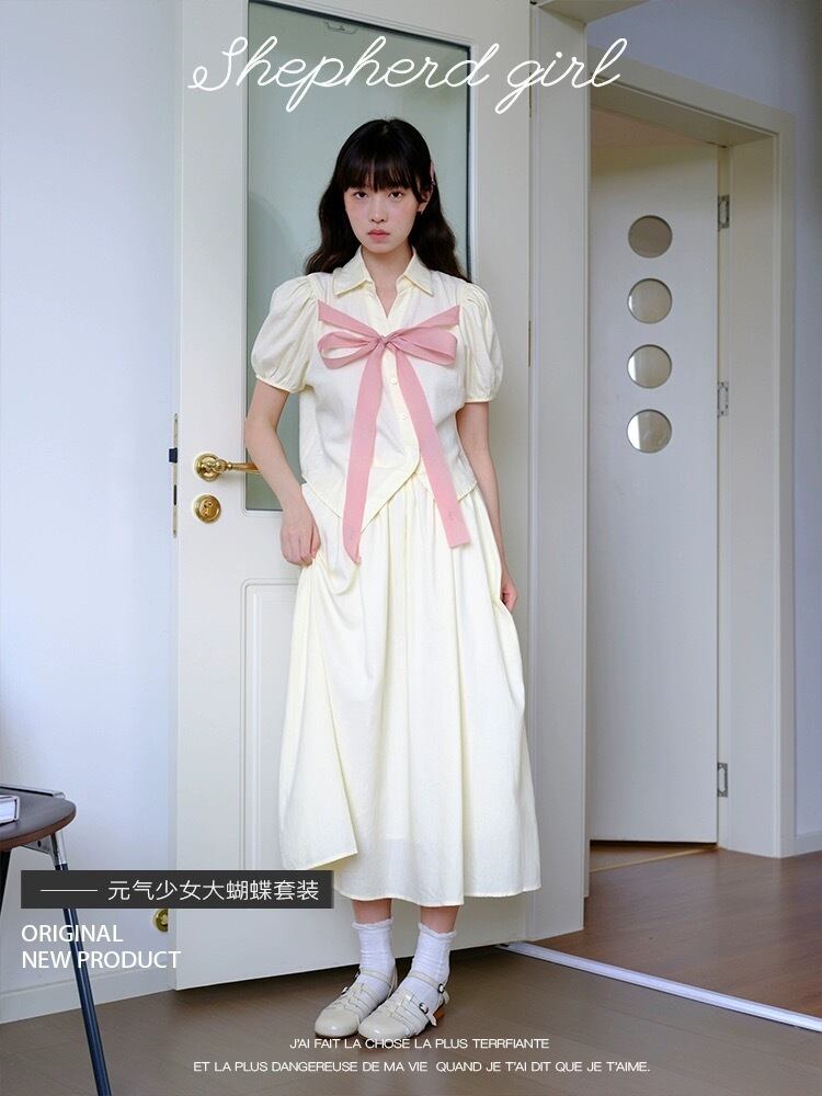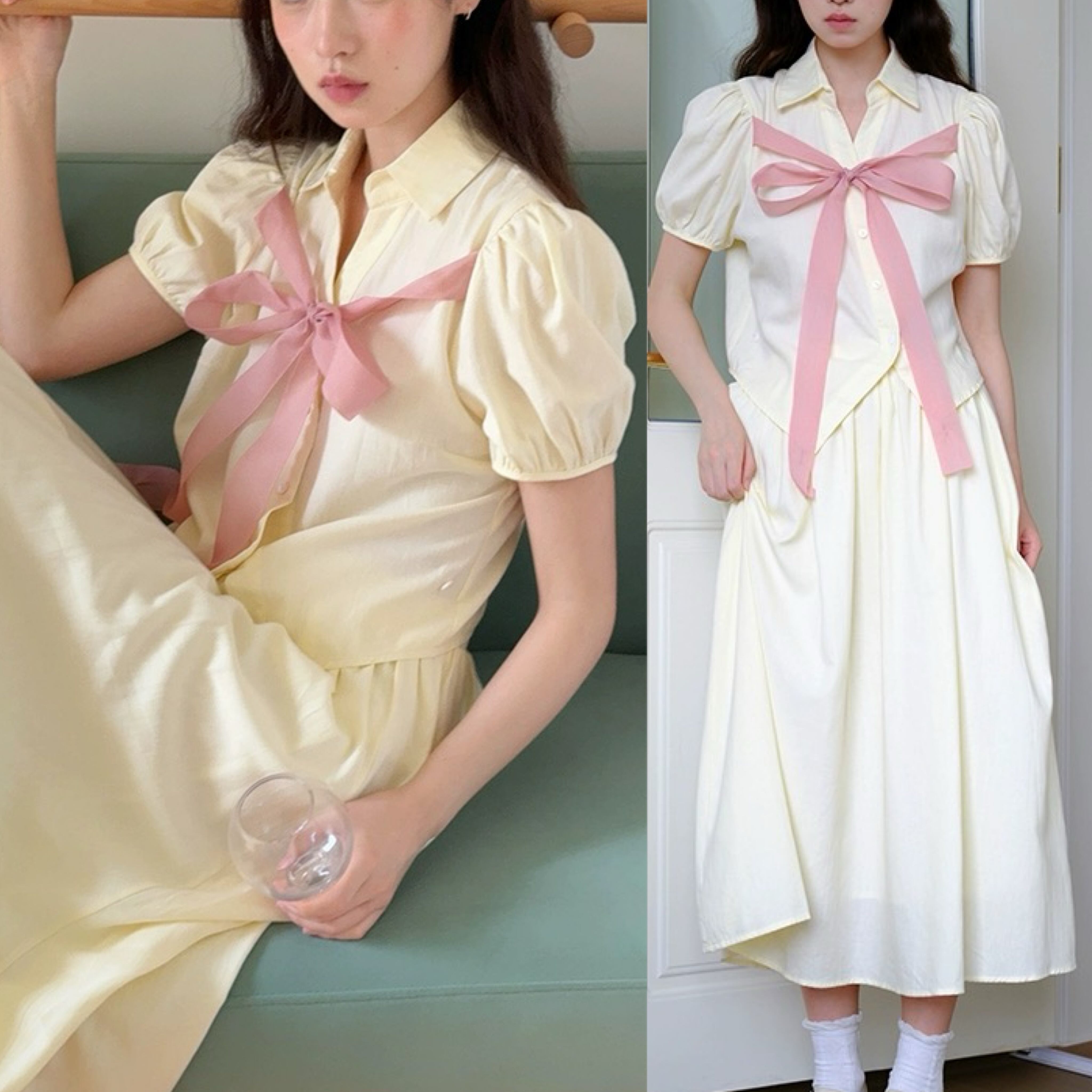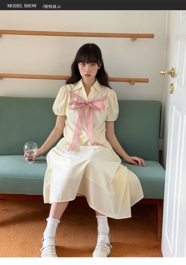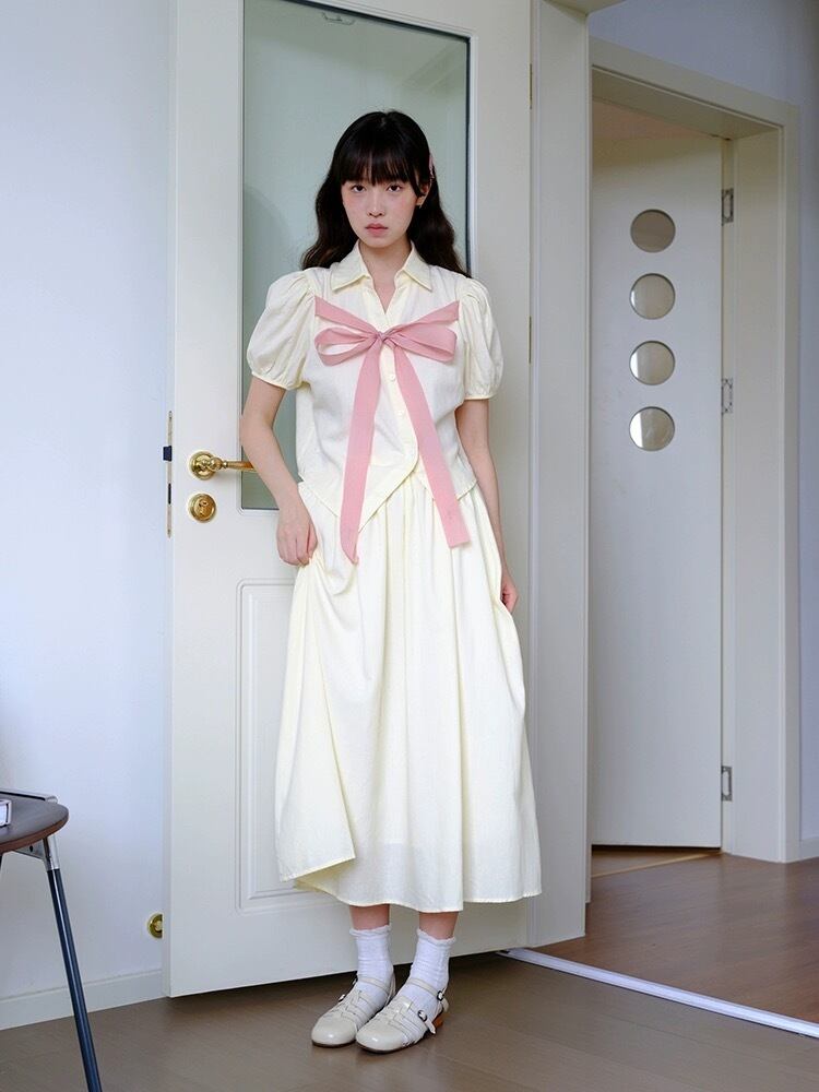 リボン ブラウス スカート ガーリー 可愛い セットアップ