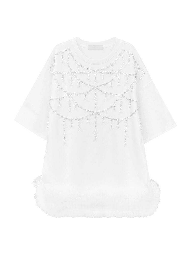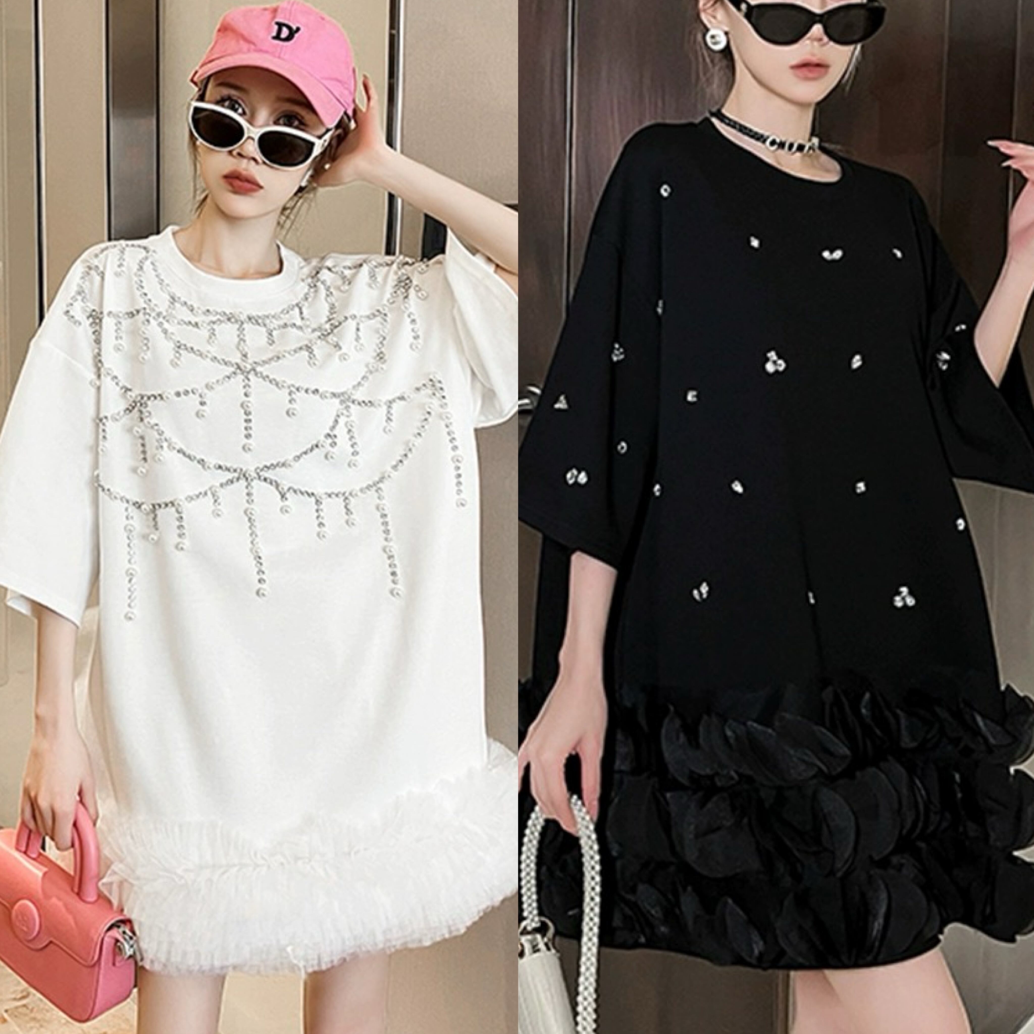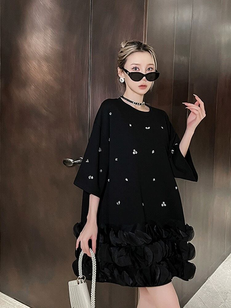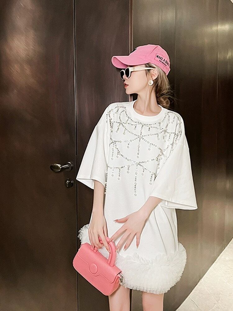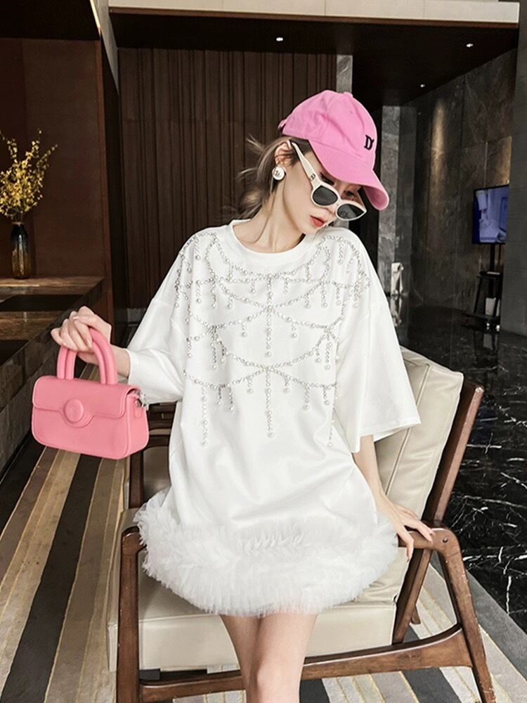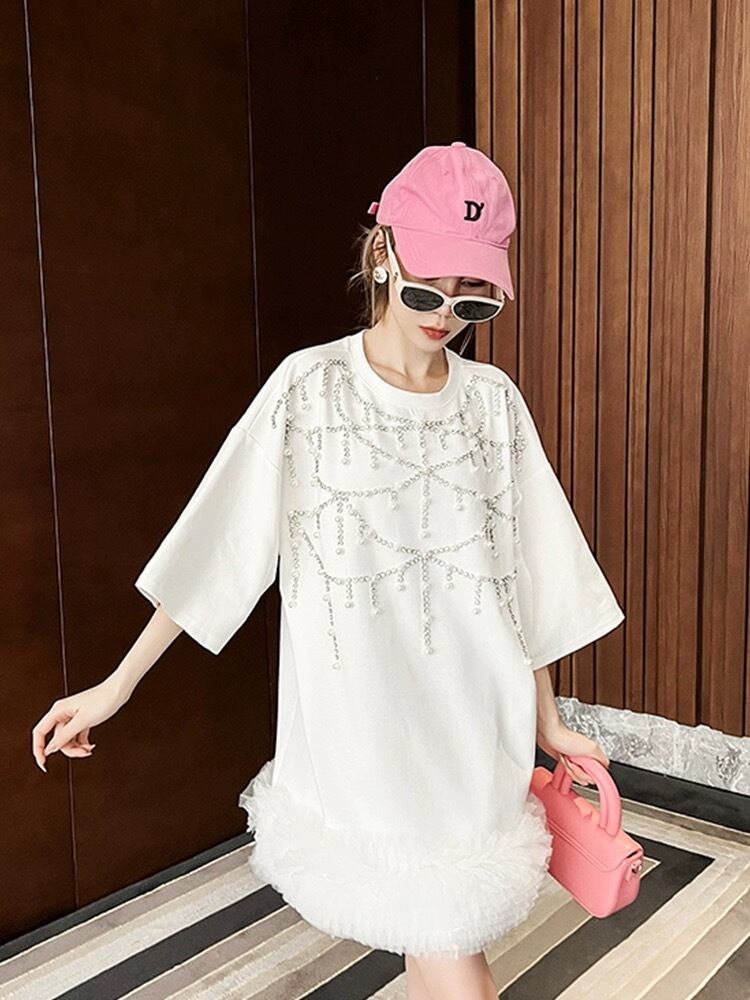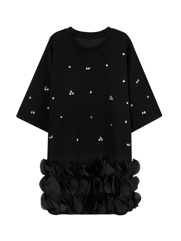 白 黒 ラインストーン ワンピース カジュアル スウェット