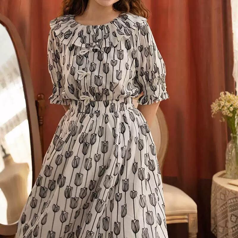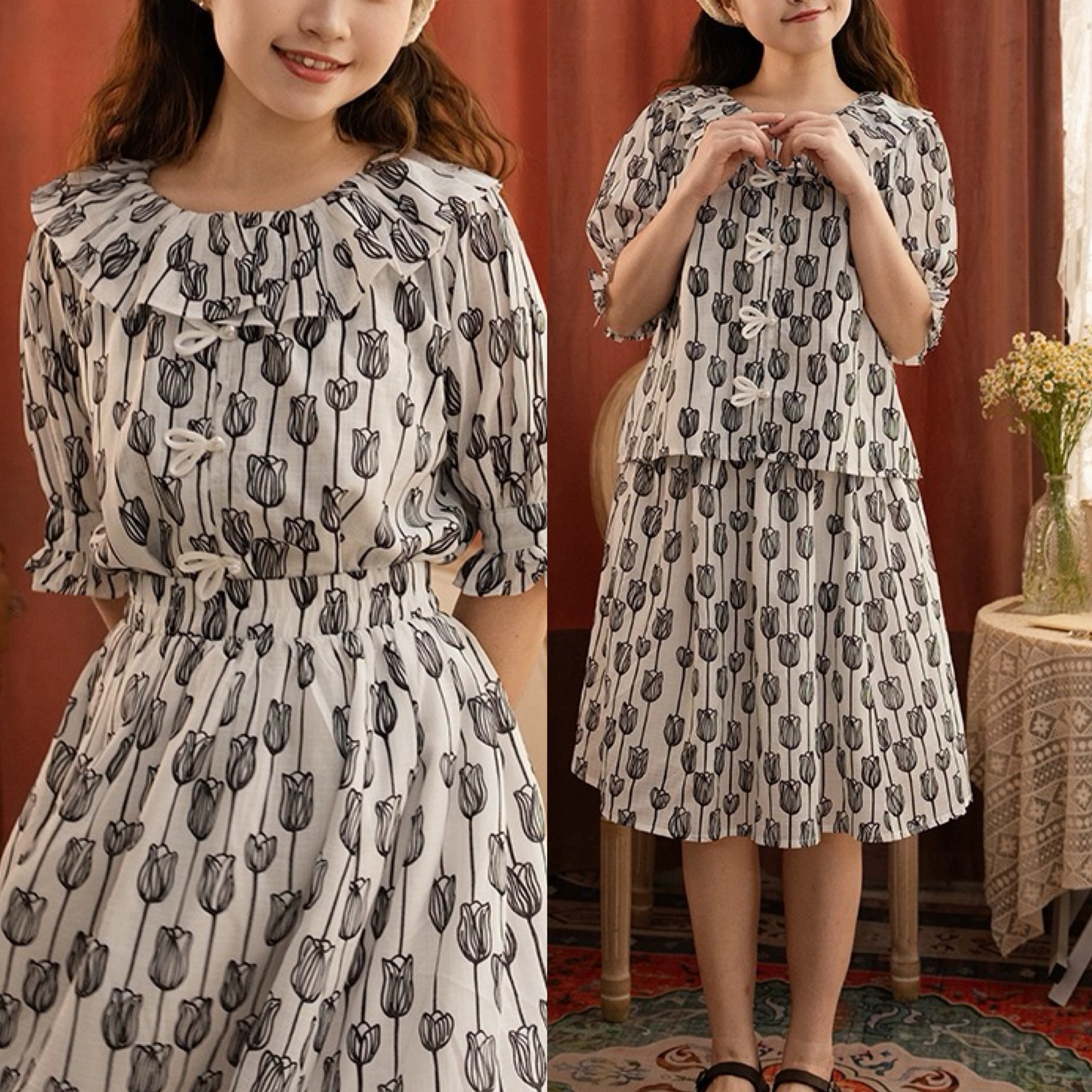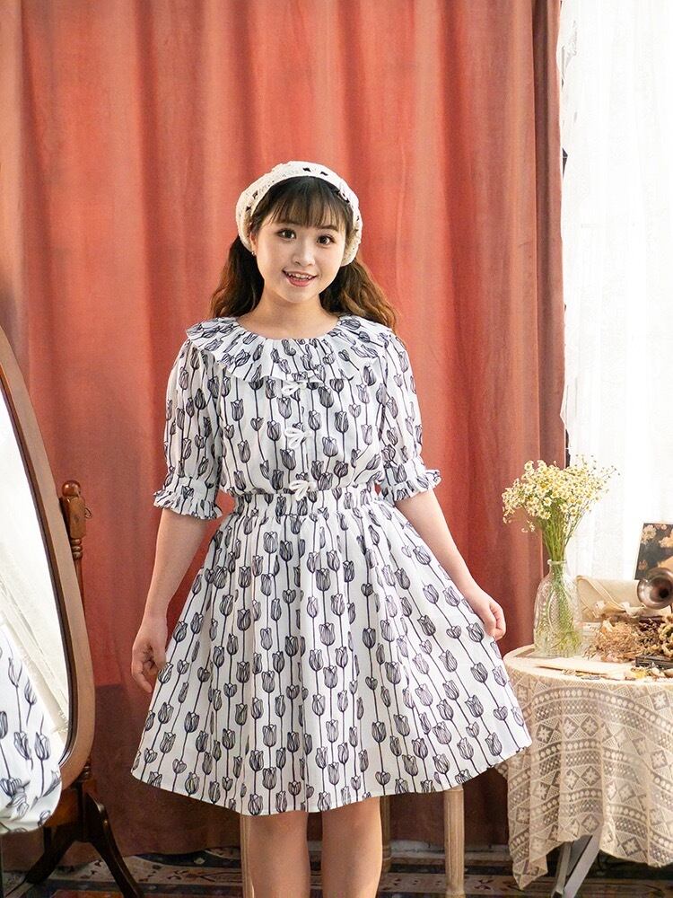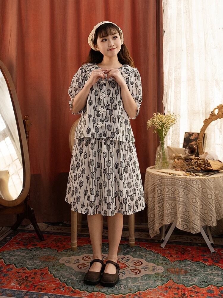 【ブラウス・スカート】モノトーン チューリップ 白 黒 ガーリー 原宿