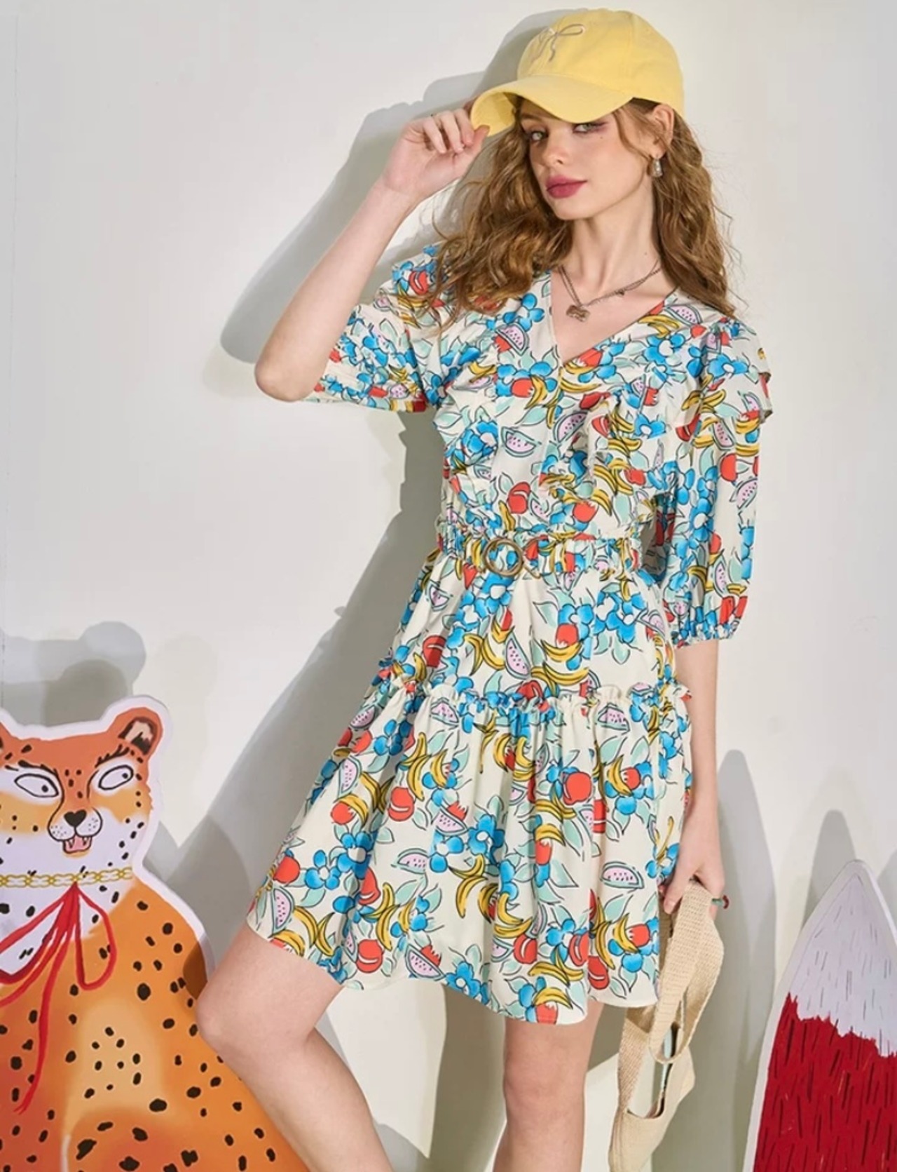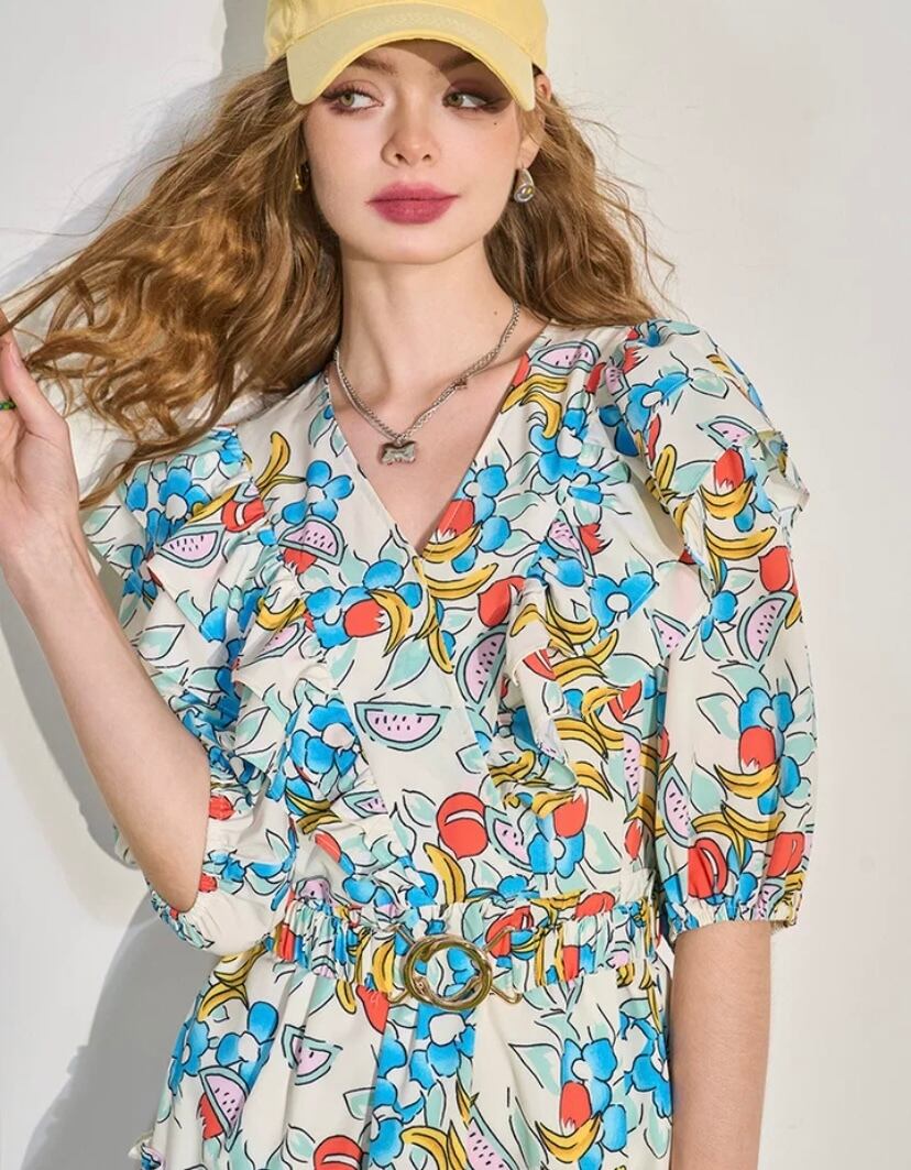 水色 花柄 ワンピース ガーリー 可愛い カジュアル ブラウス
