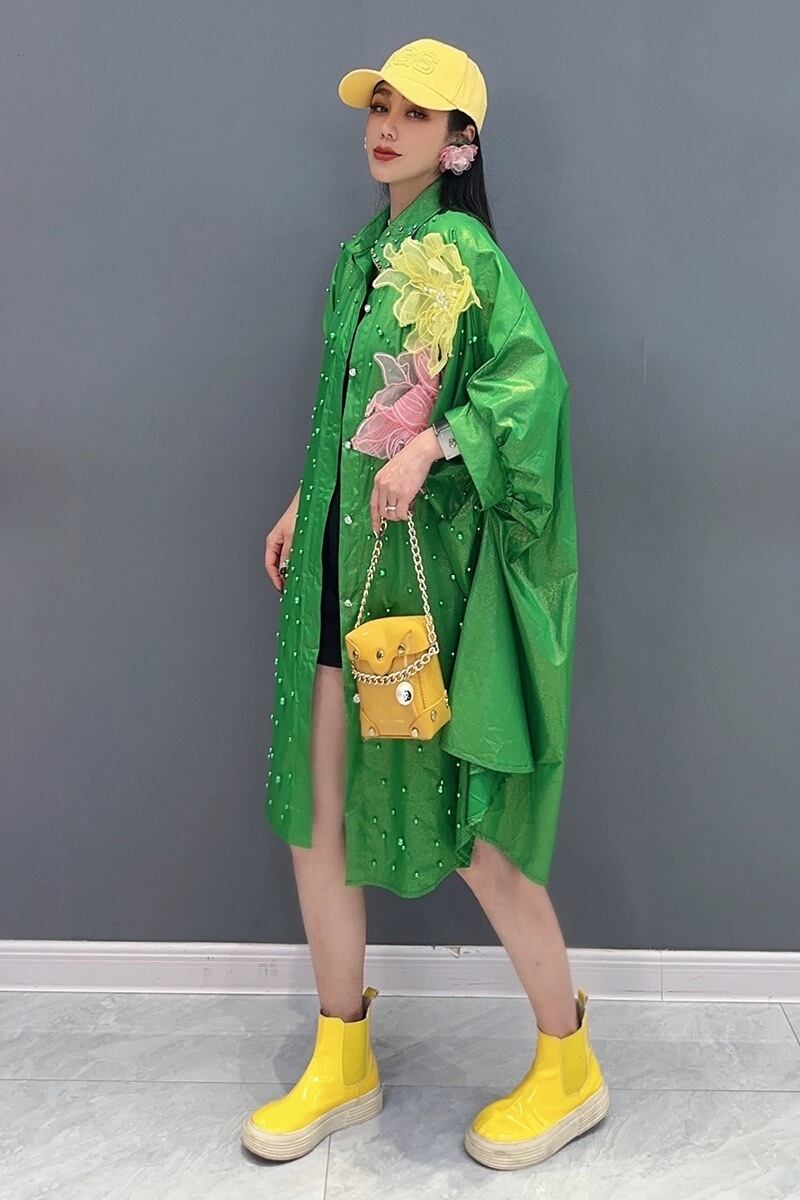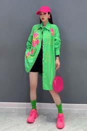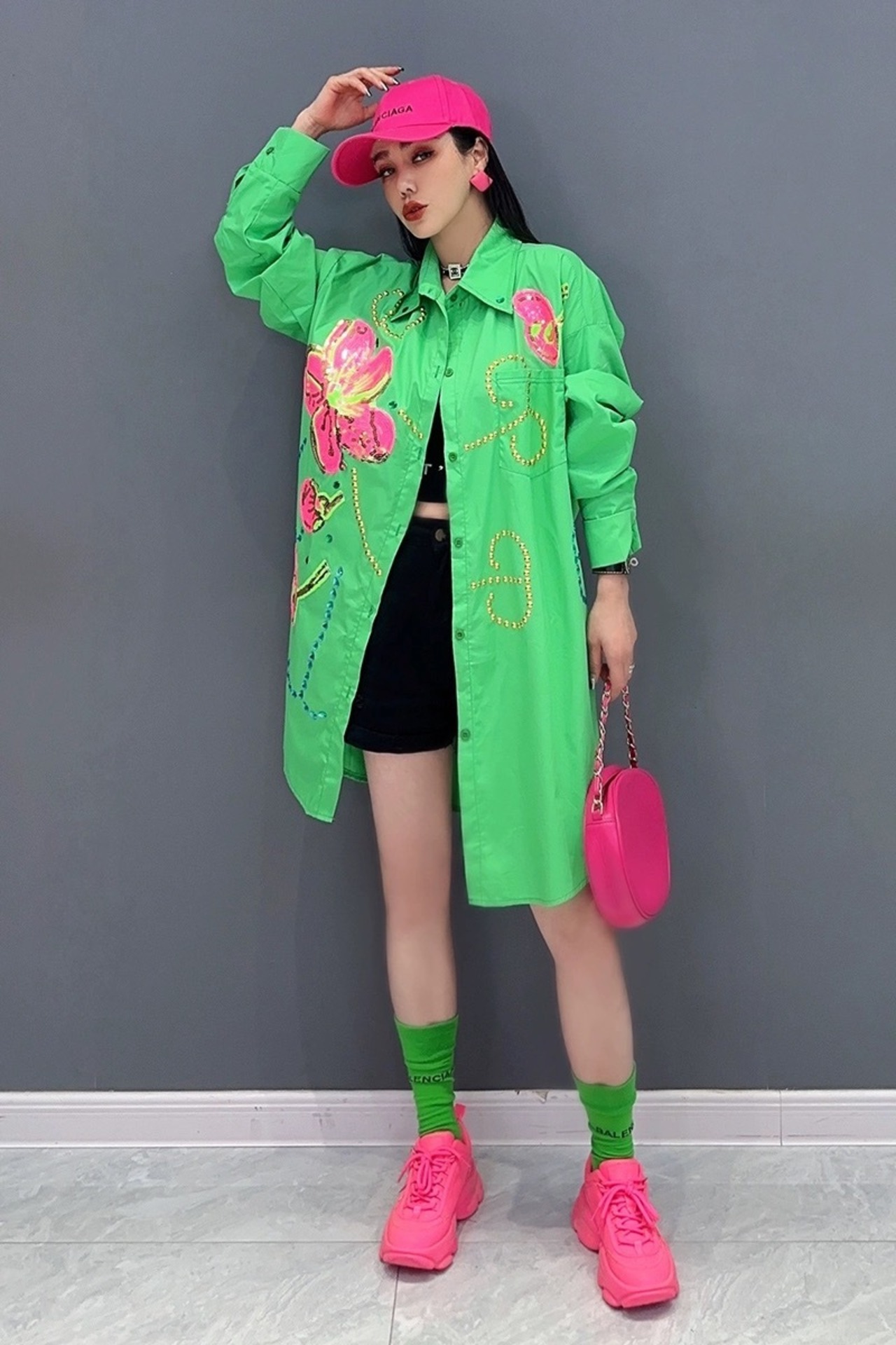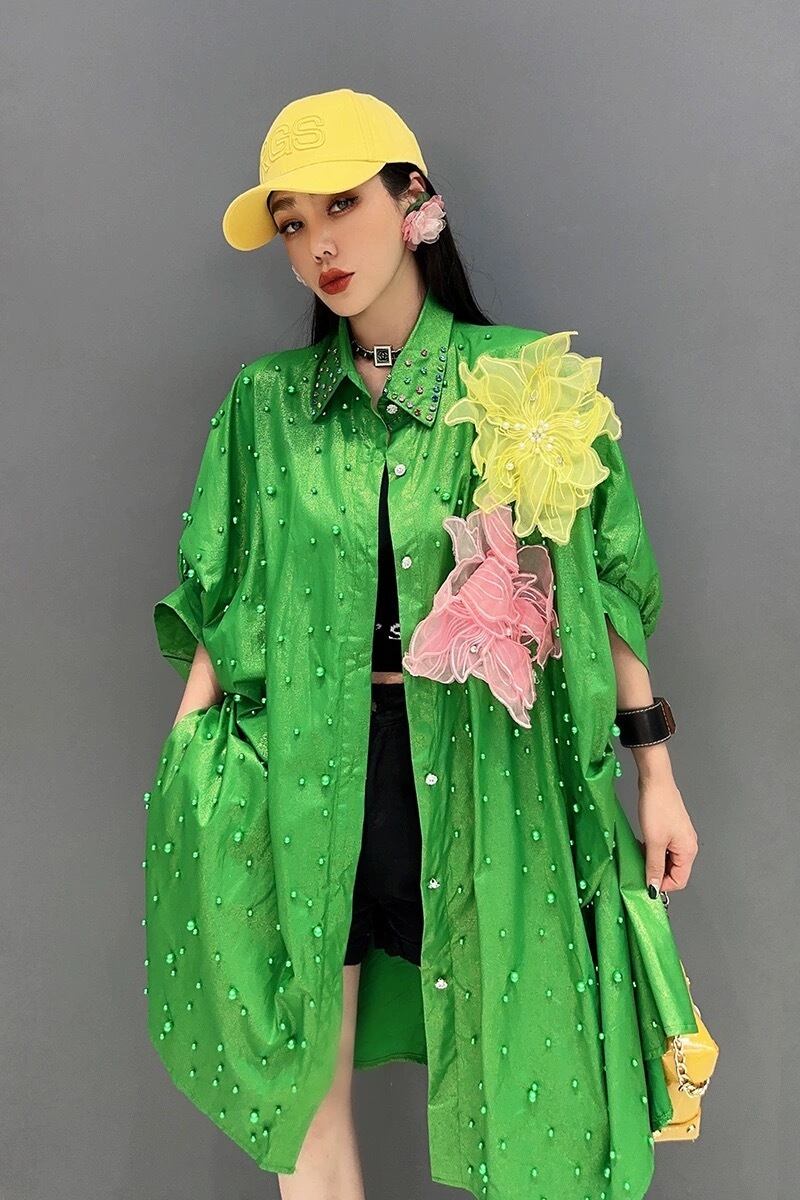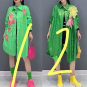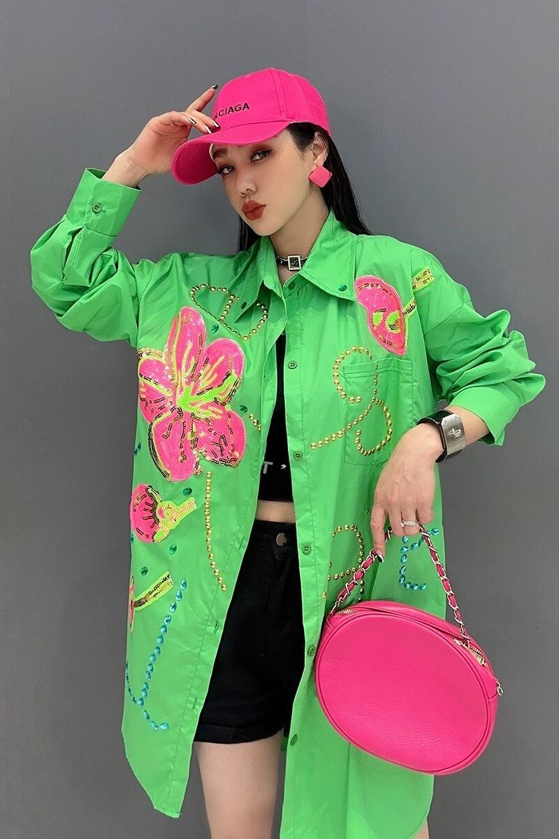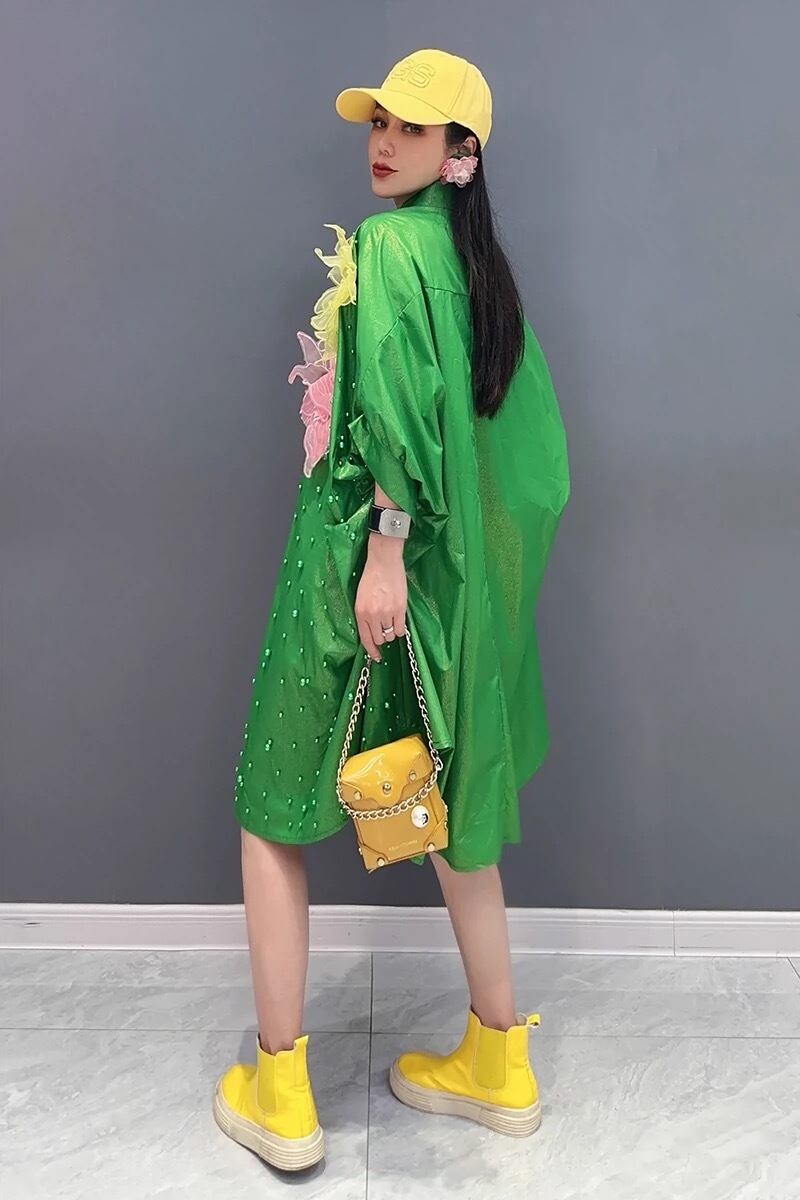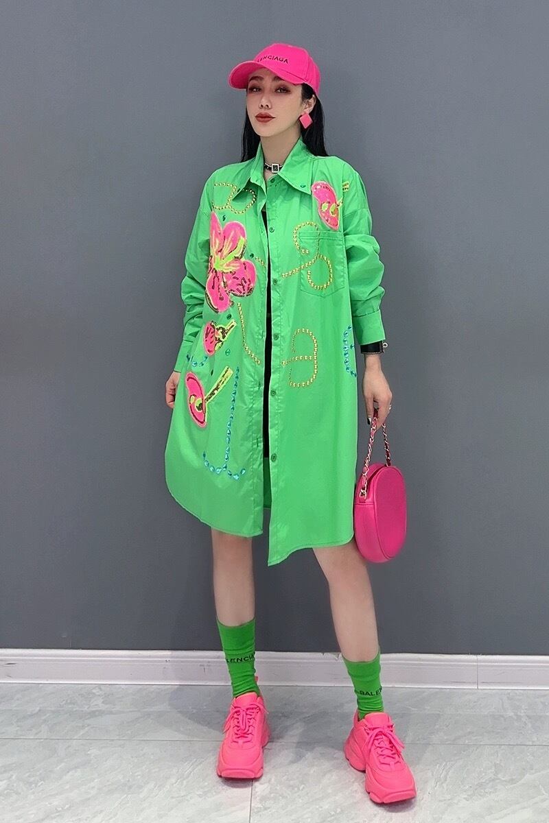 キラキラ 緑 グリーン ワンピース シャツ ブラウス カジュアル デコレーション