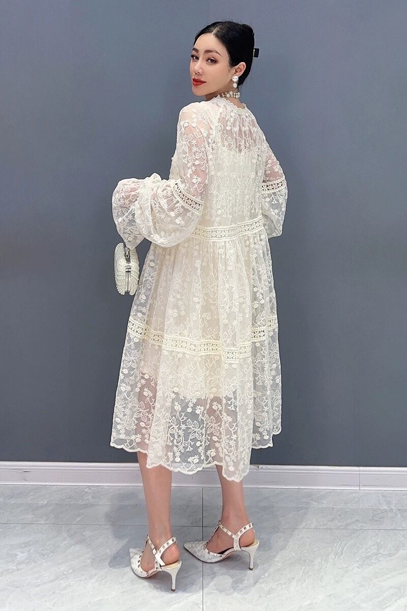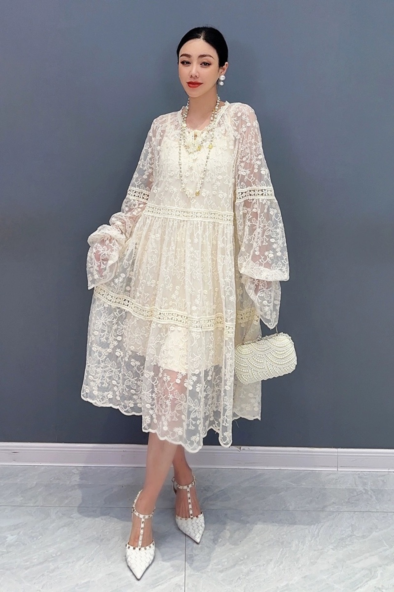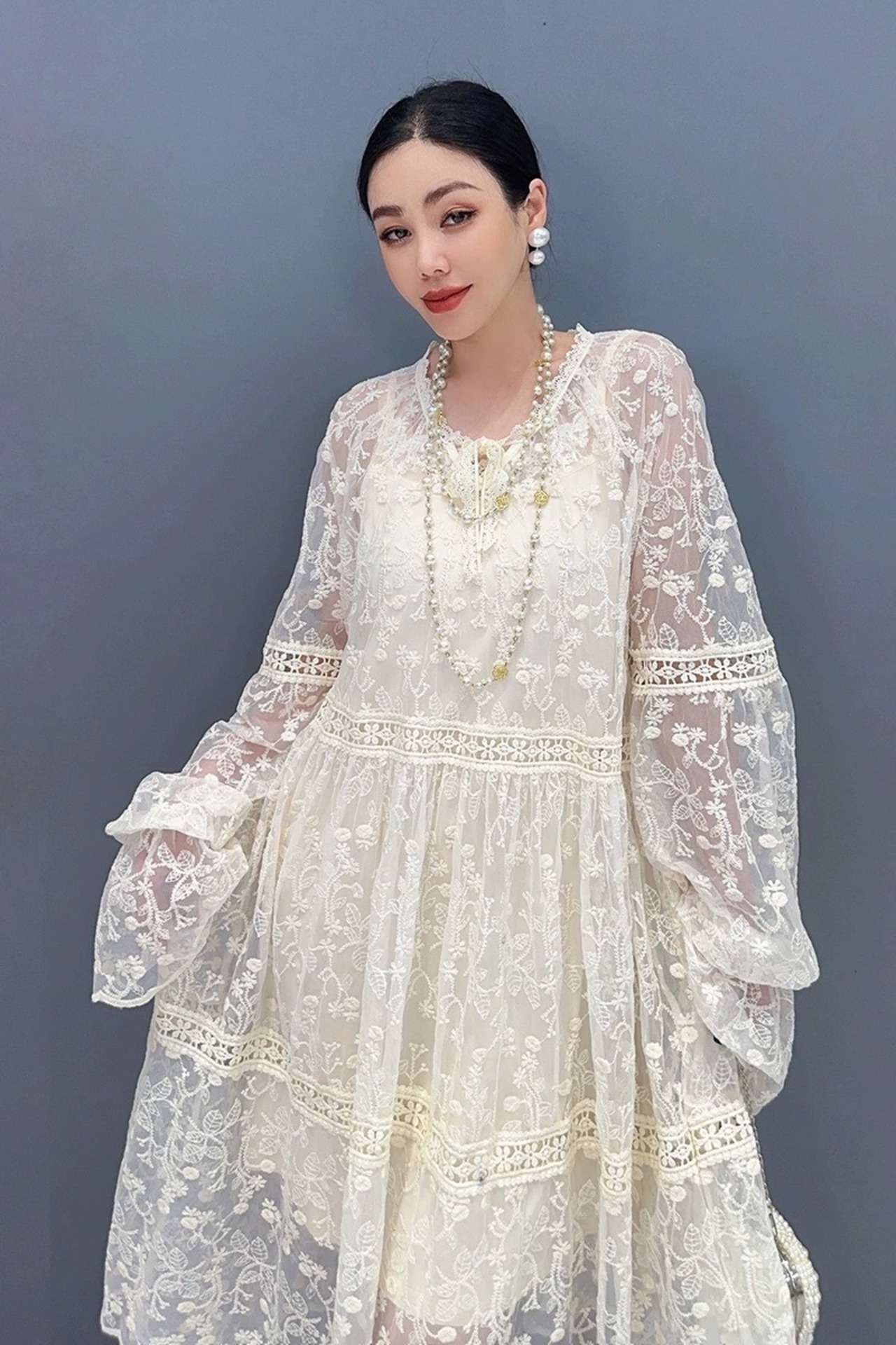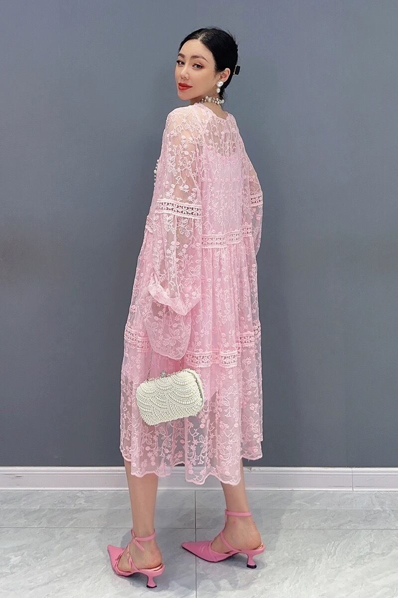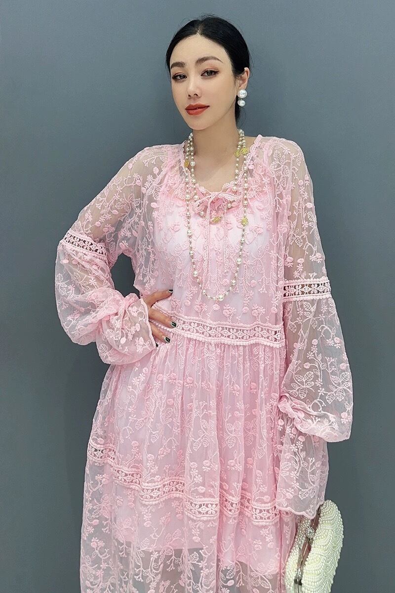 ピンク 白 花柄 フラワー レース マキシ キャミソール