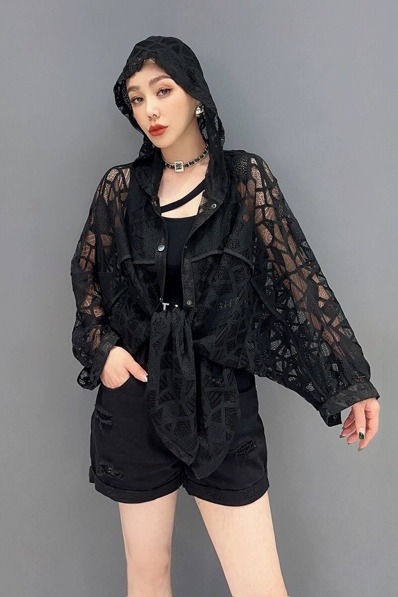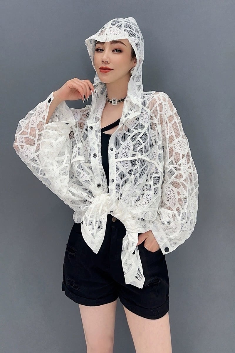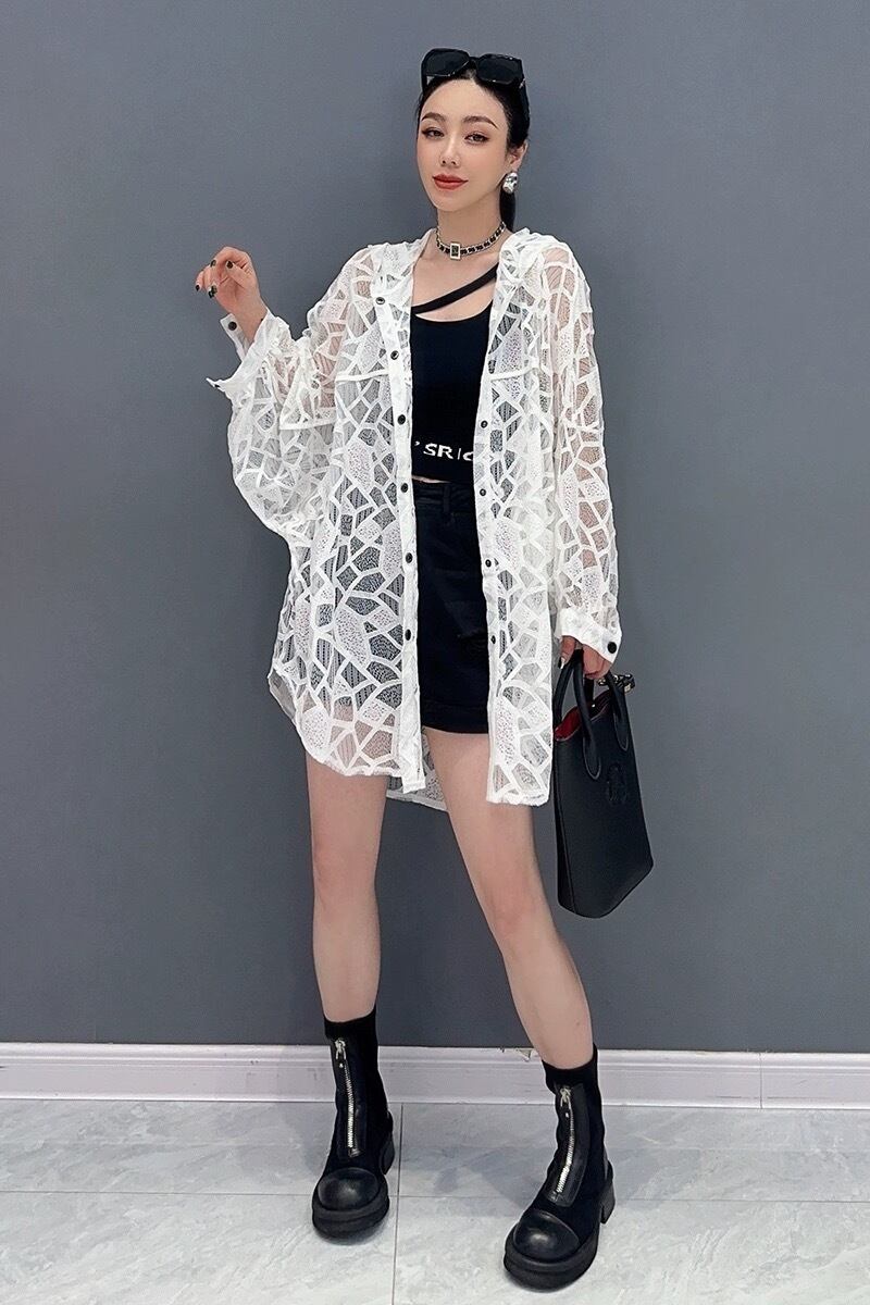 トップス 黒 白 パーカー ジャンパー あみあみ メッシュ ブラウス
