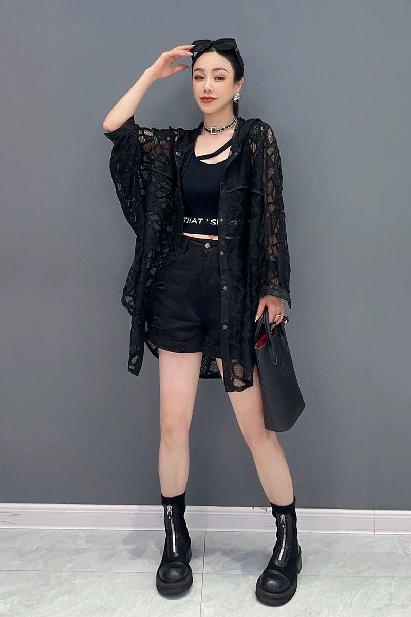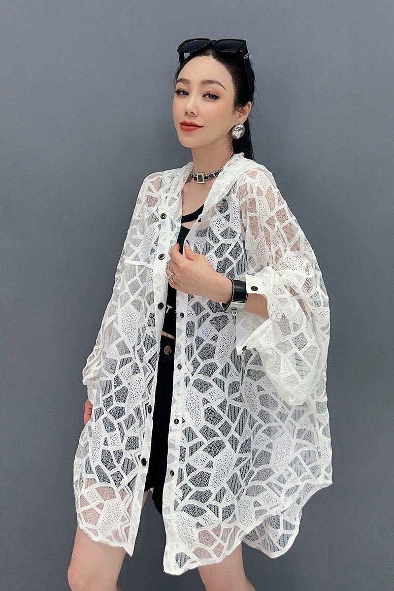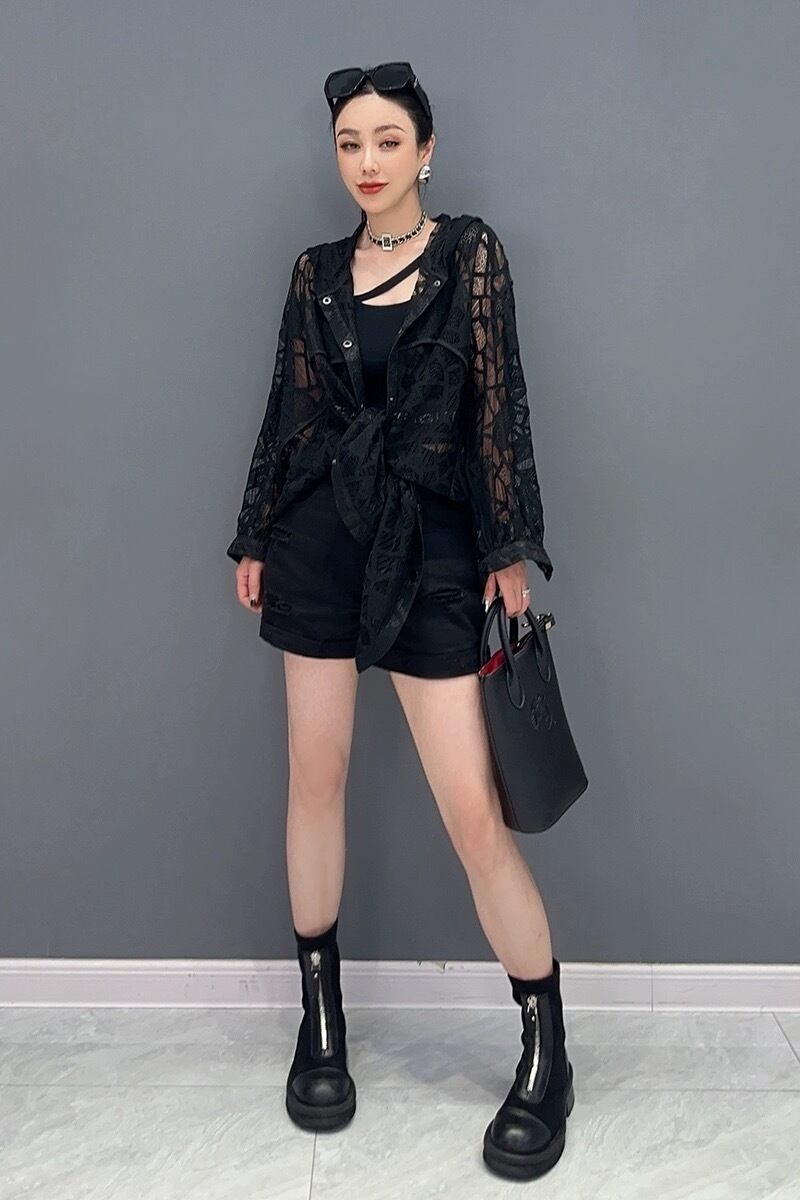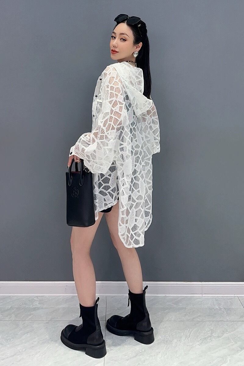 トップス 黒 白 パーカー ジャンパー あみあみ メッシュ ブラウス