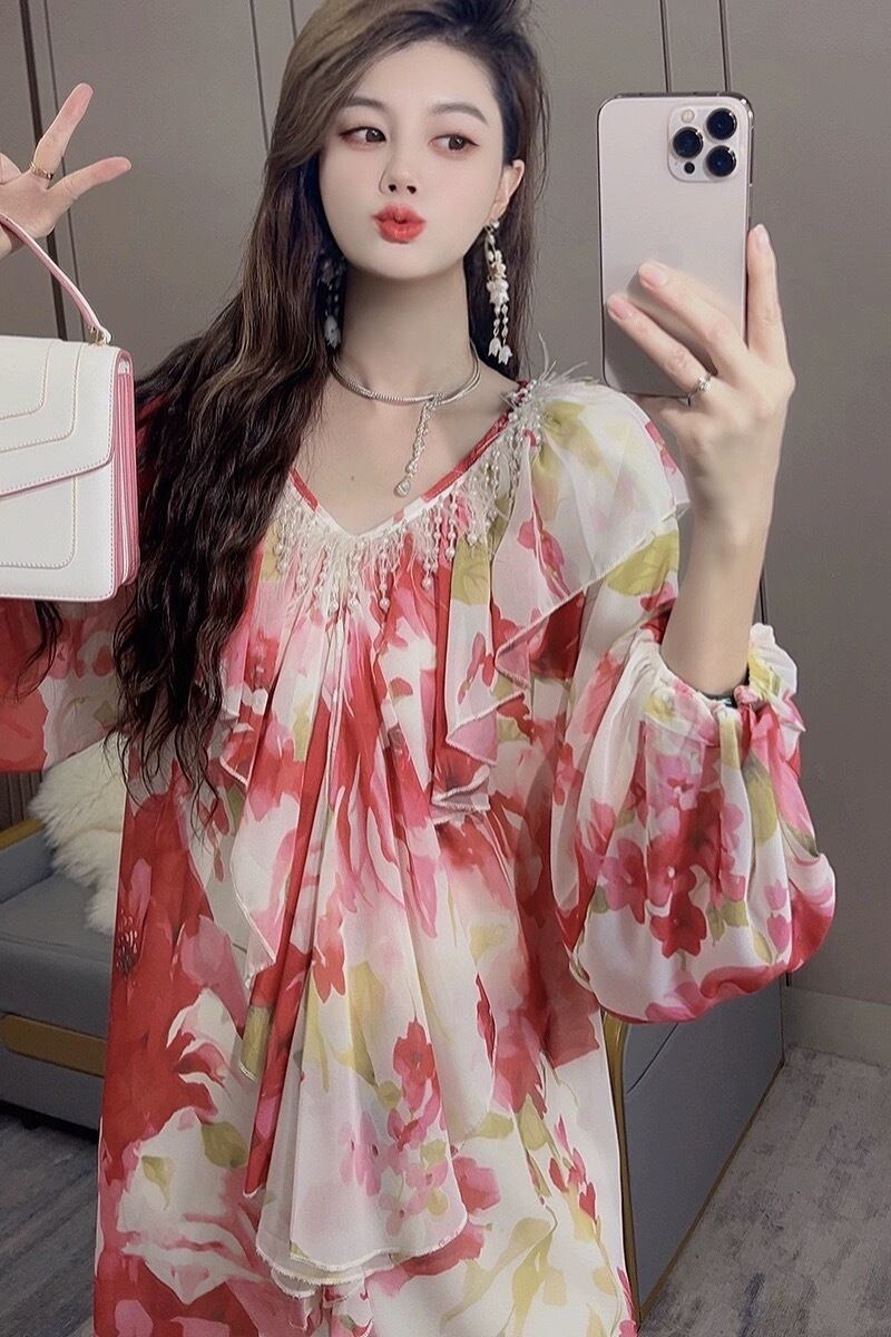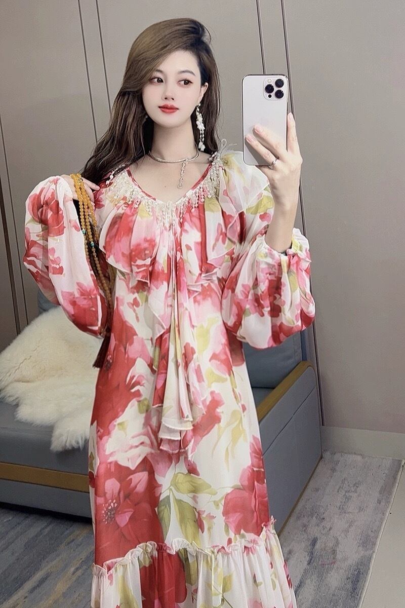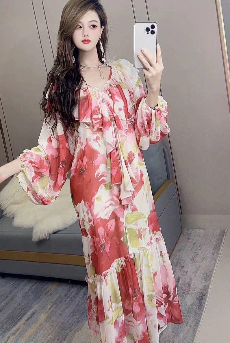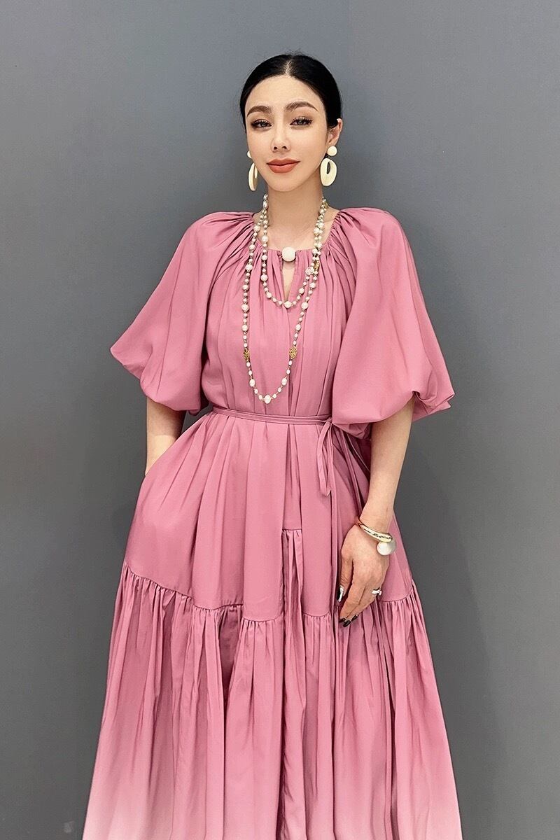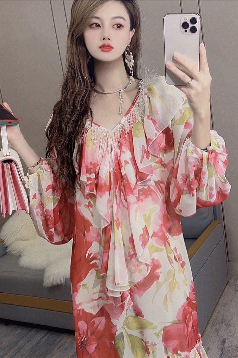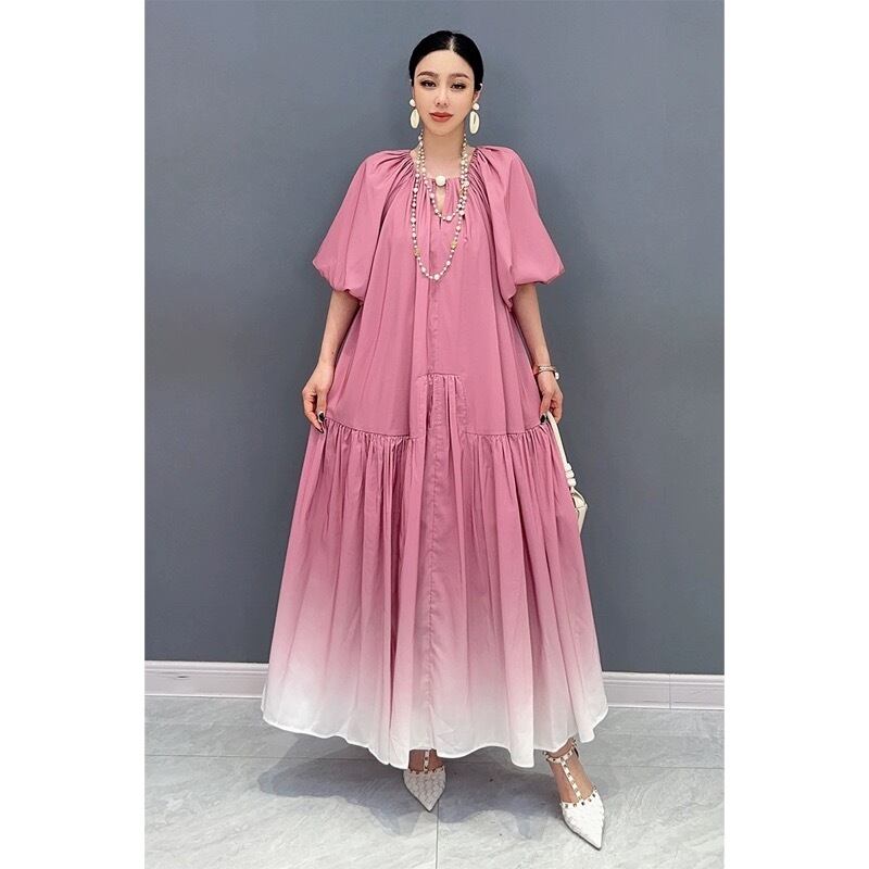 グラデーション ピンク エレガント 花柄 フラワー ワンピース