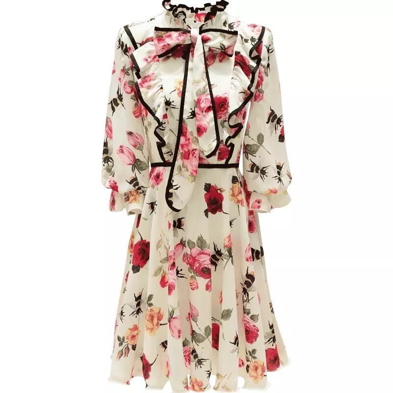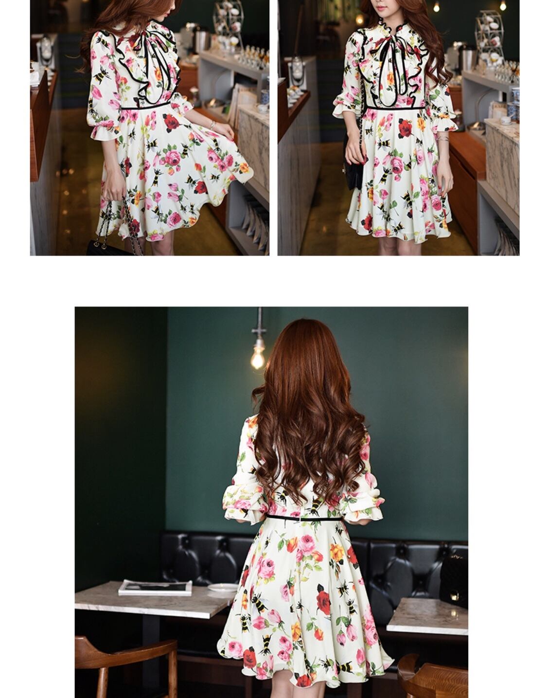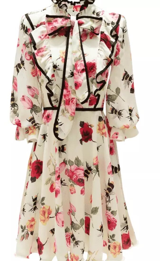 SALE❣️【即納❣️ 送料無料❣️】【再販無し】フレアスカート 小花柄 女性らしいらしいワンピ リボン かわいい エレガント おしゃれ 花柄 フラワー シフォン ホワイト xL