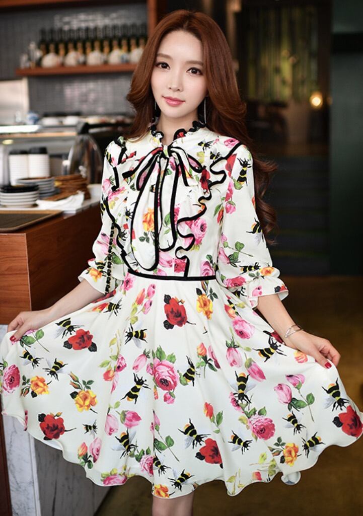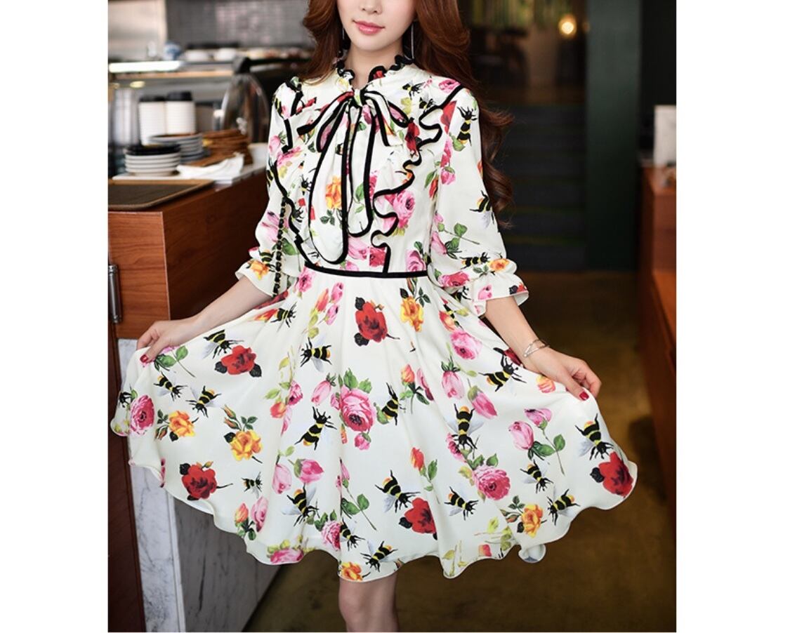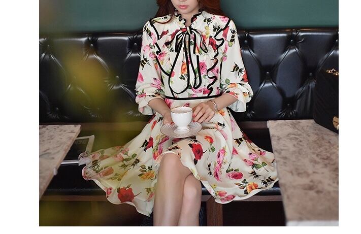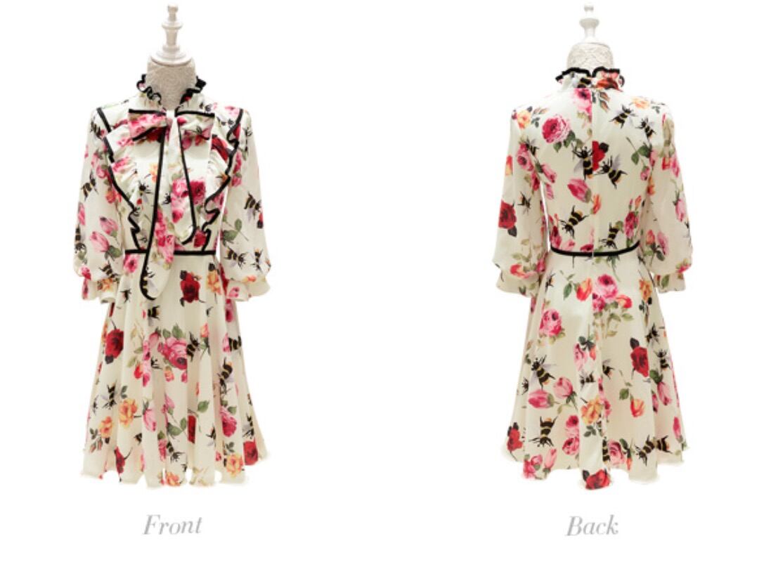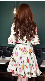 女性らしい小花柄とフレアスカート、どこにお出かけしても目を引きます