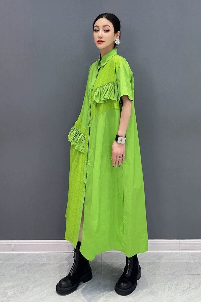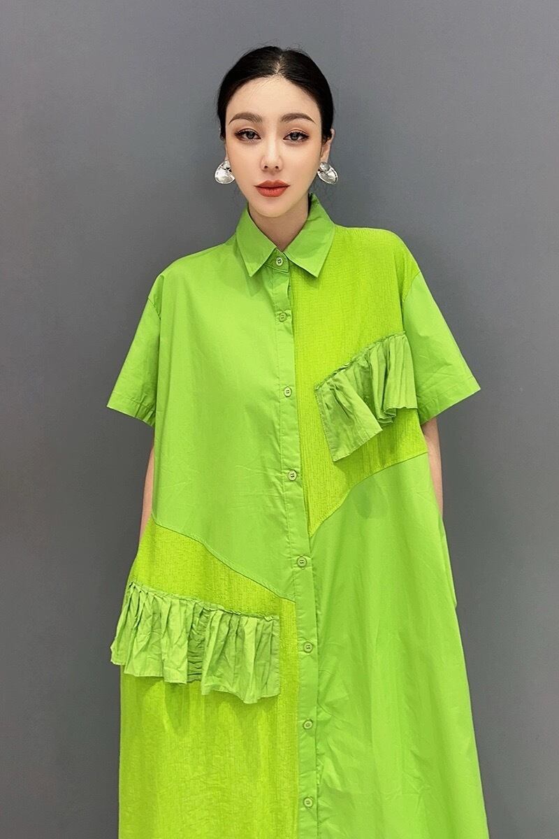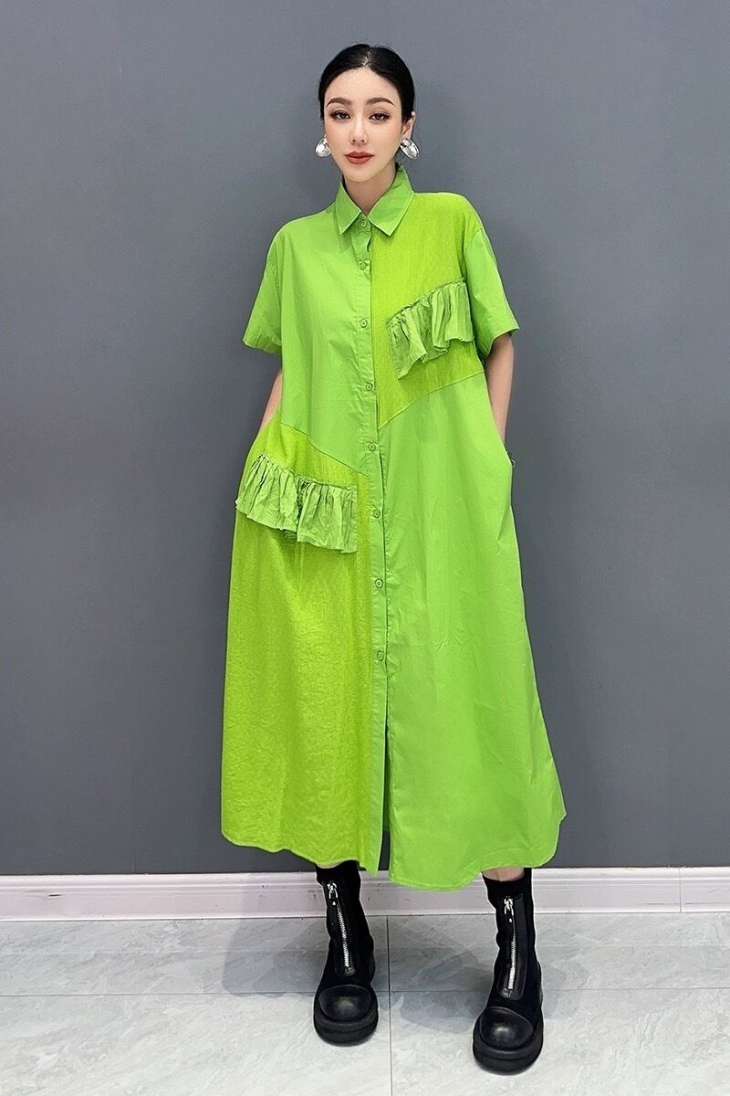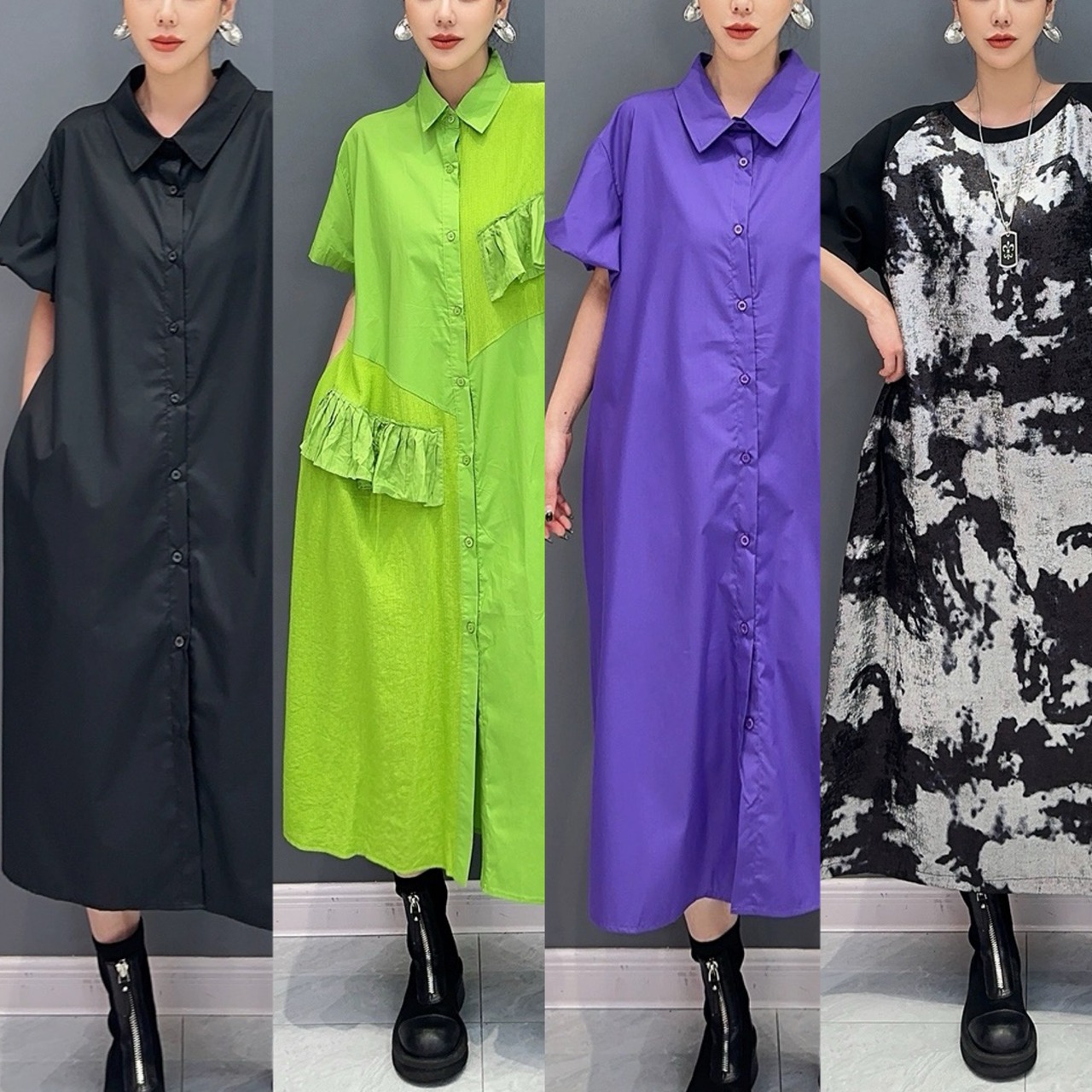 緑 紫 黒 マーブル シャツ カジュアル ワンピース