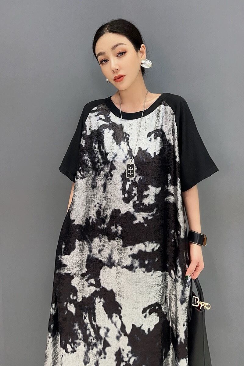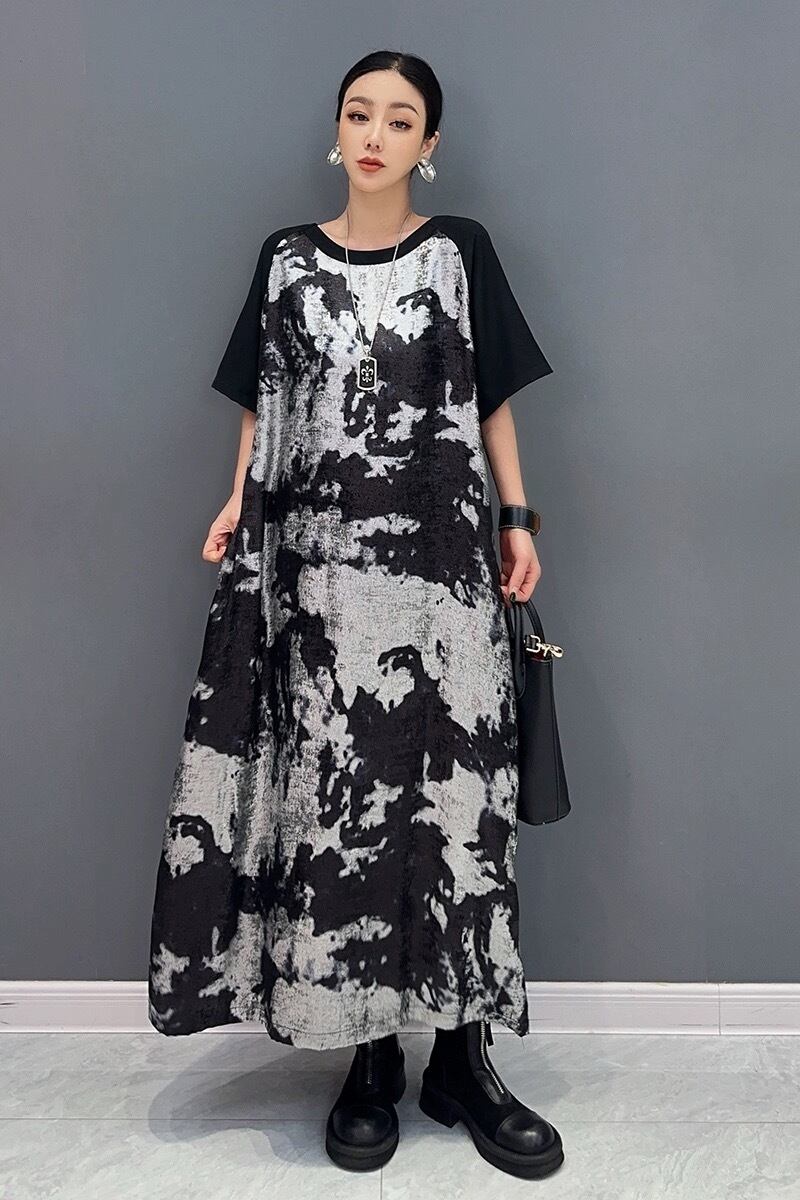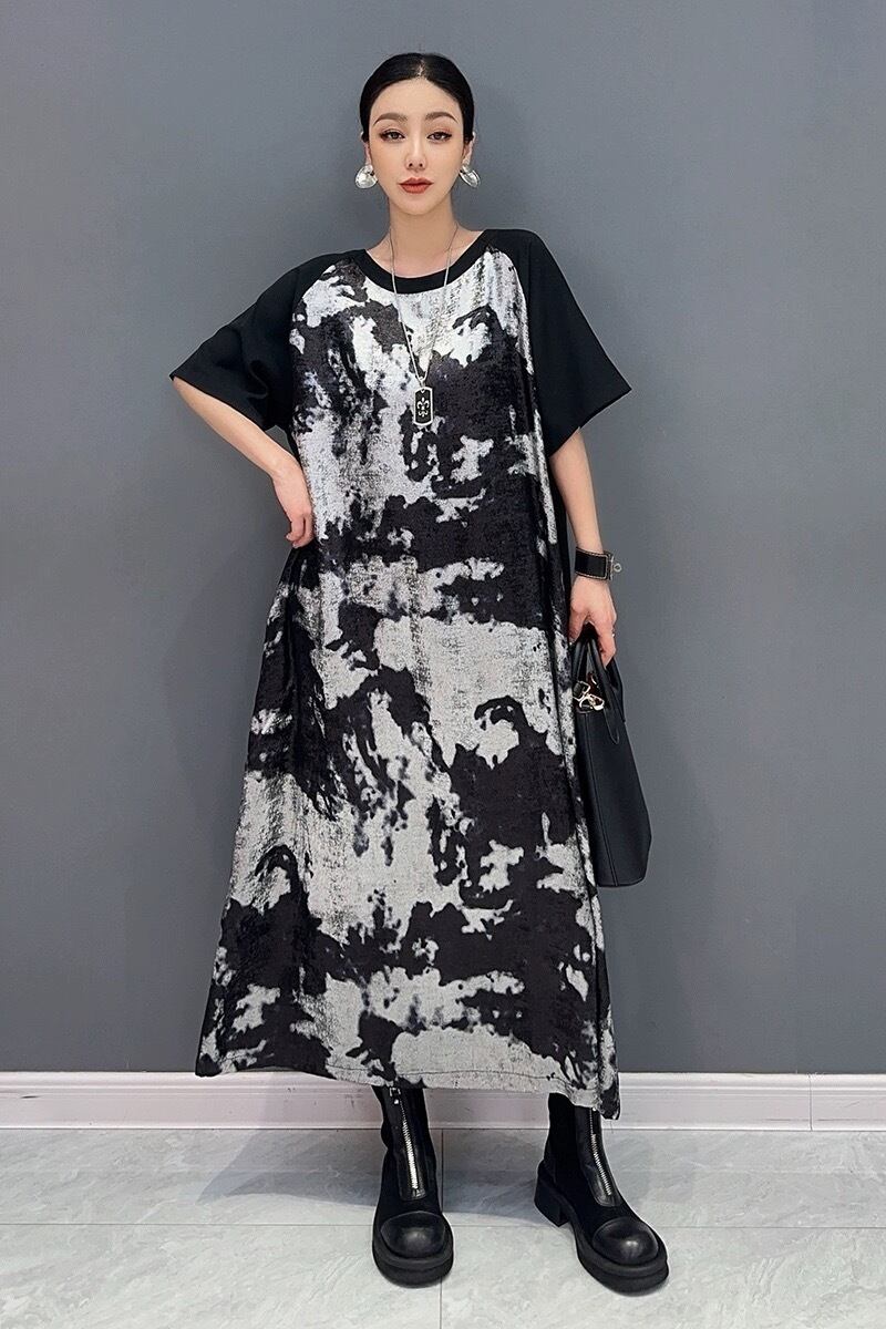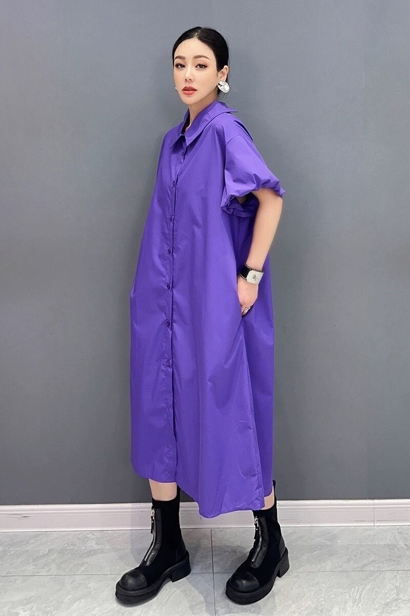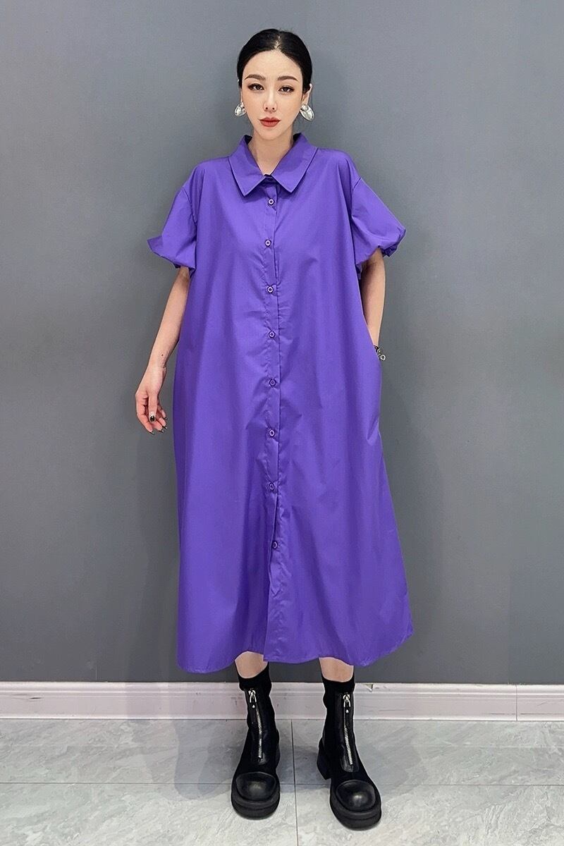 緑 紫 黒 マーブル シャツ カジュアル ワンピース