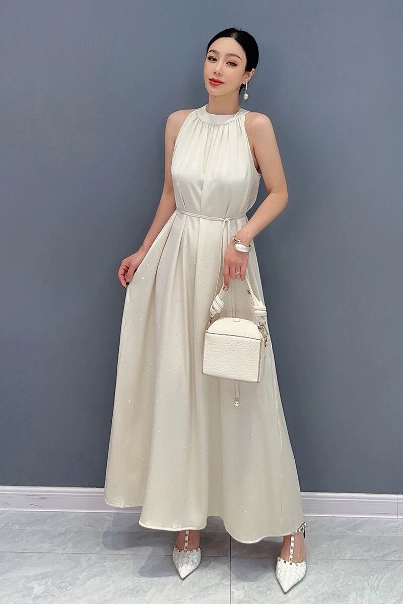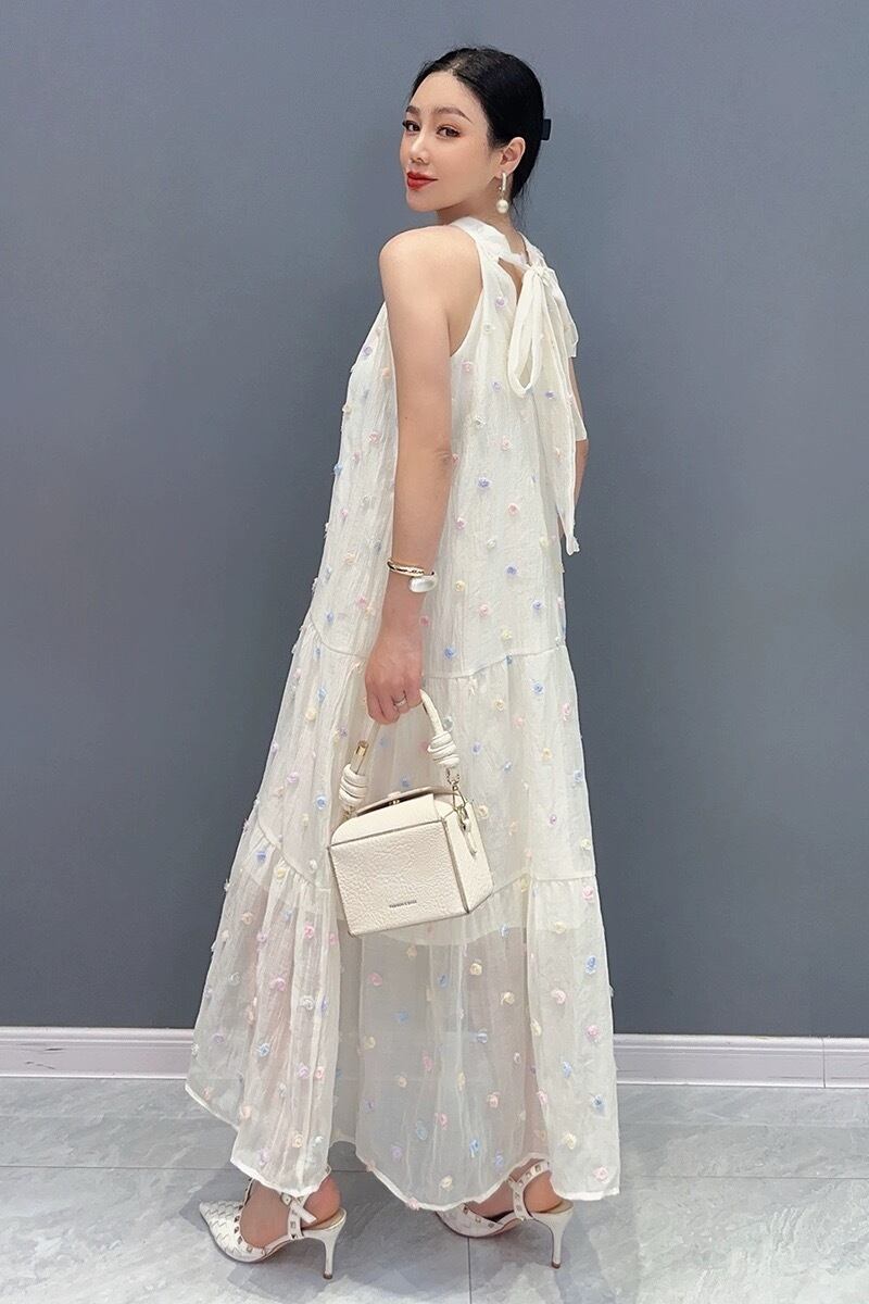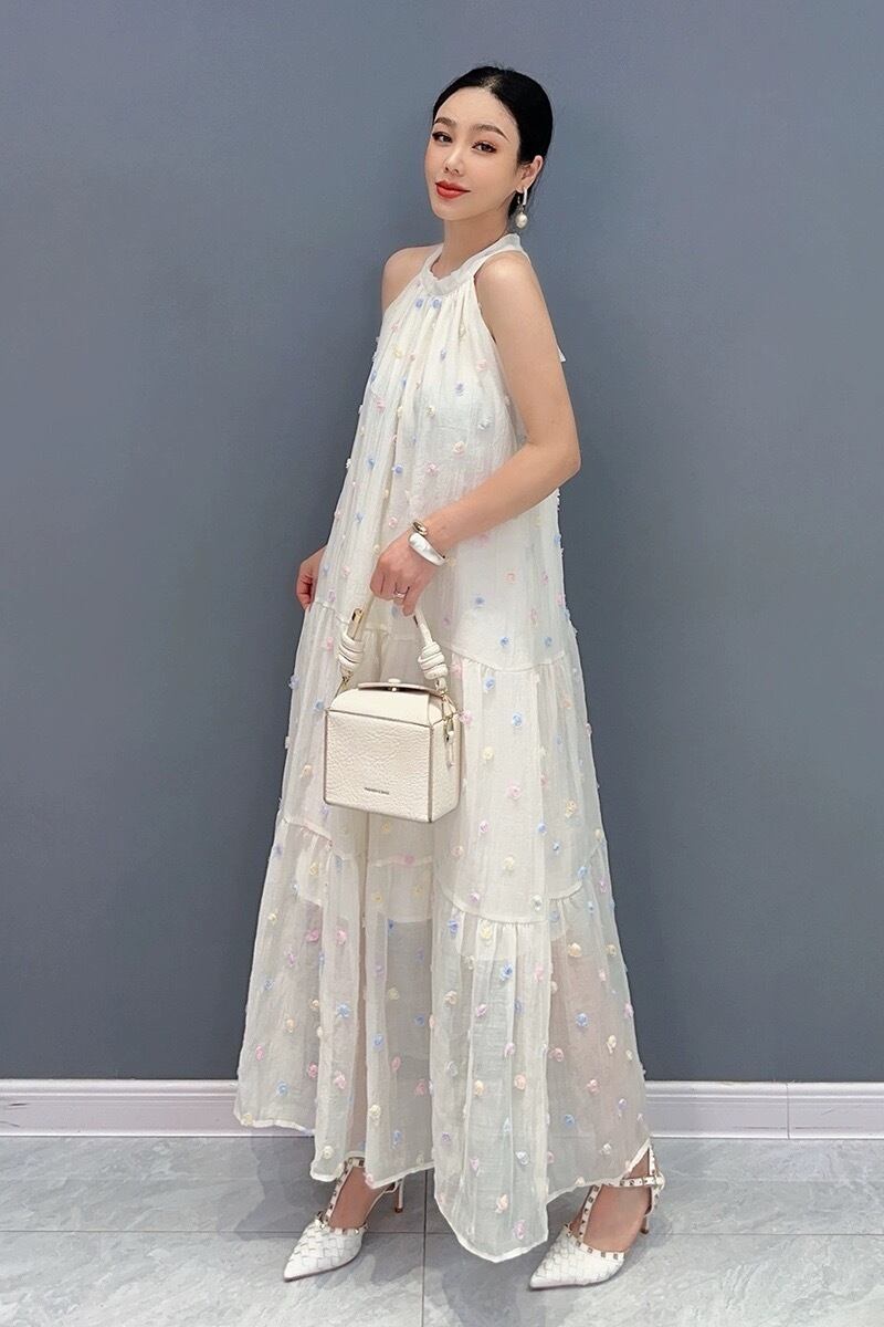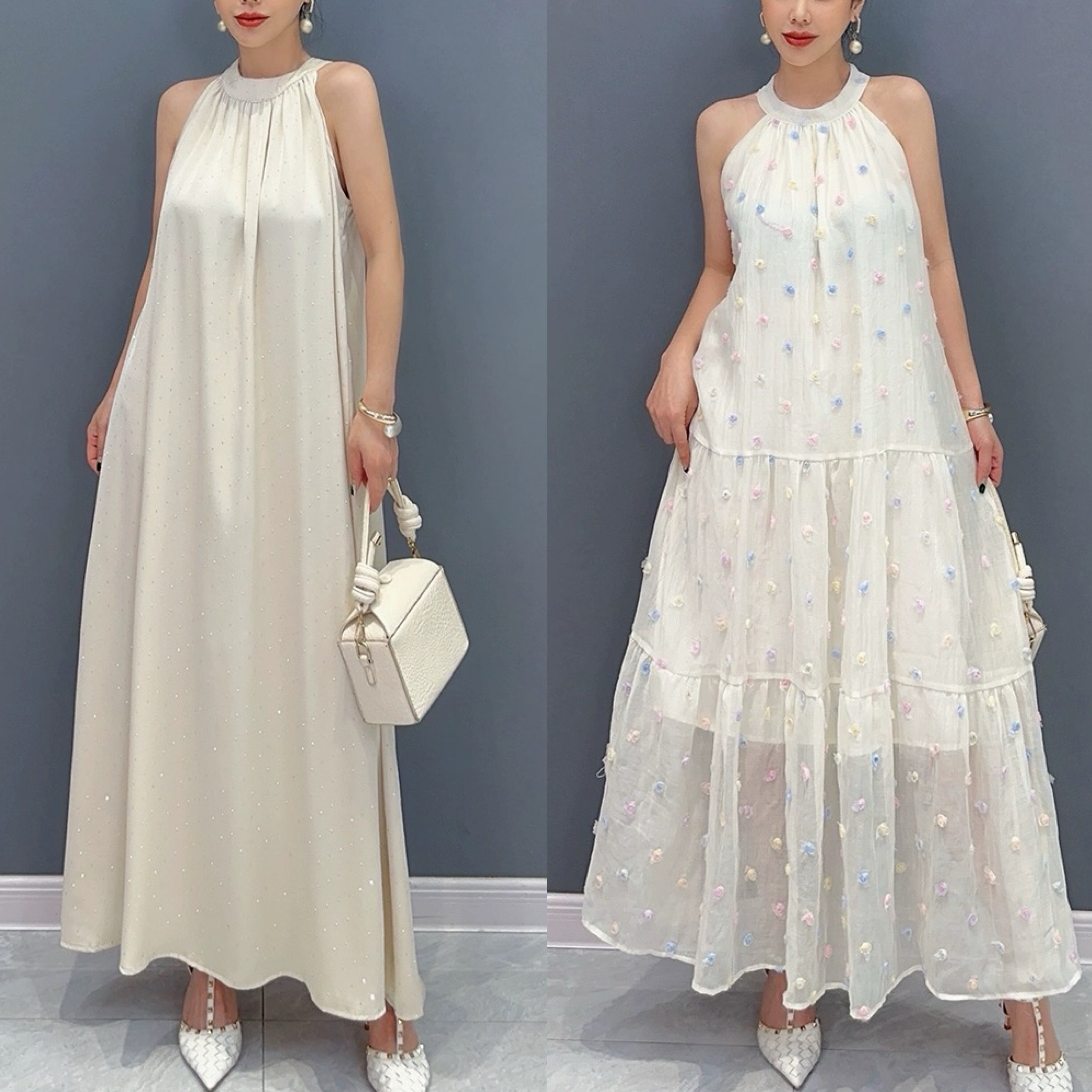 白 キラキラ フラワー ベージュ ワンピース マキシ