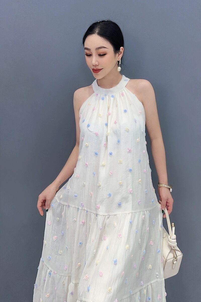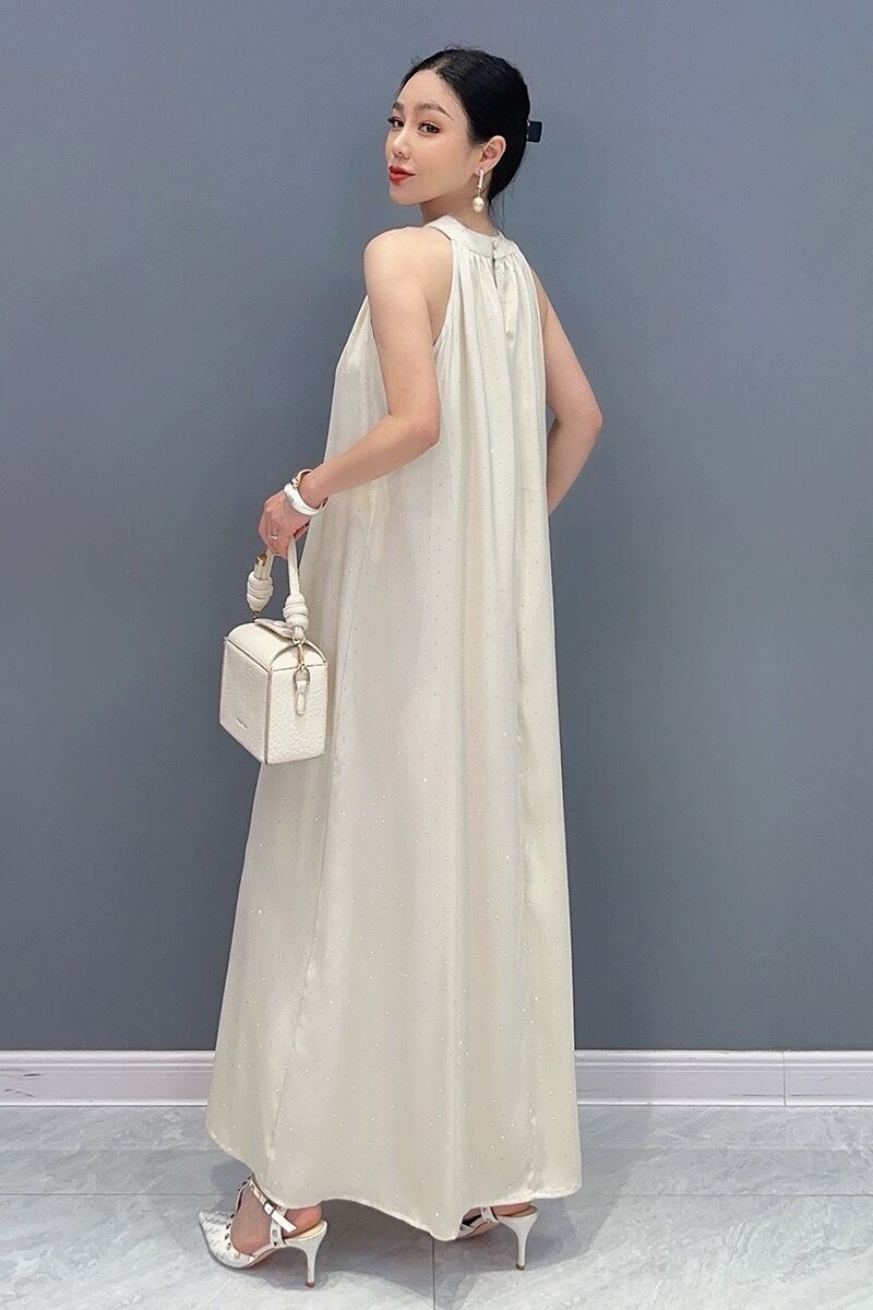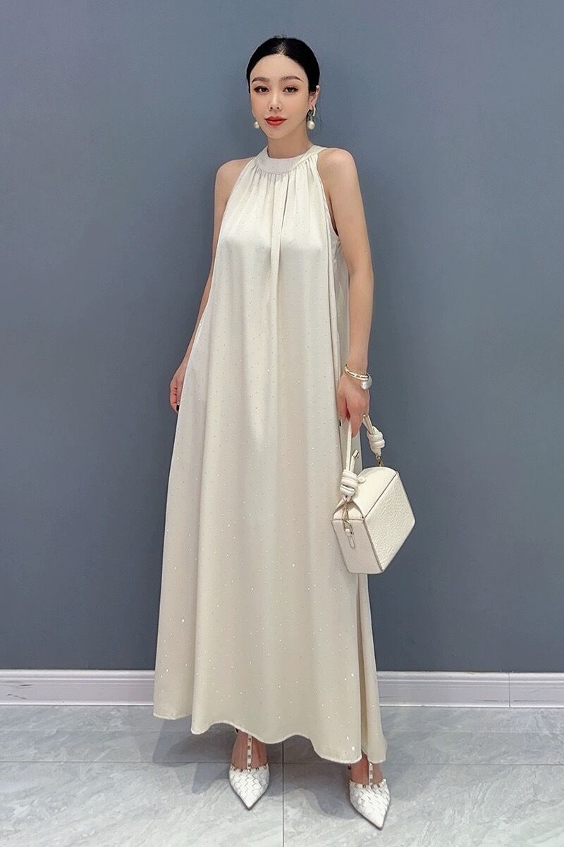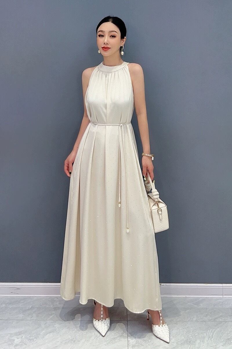 白 キラキラ フラワー ベージュ ワンピース マキシ