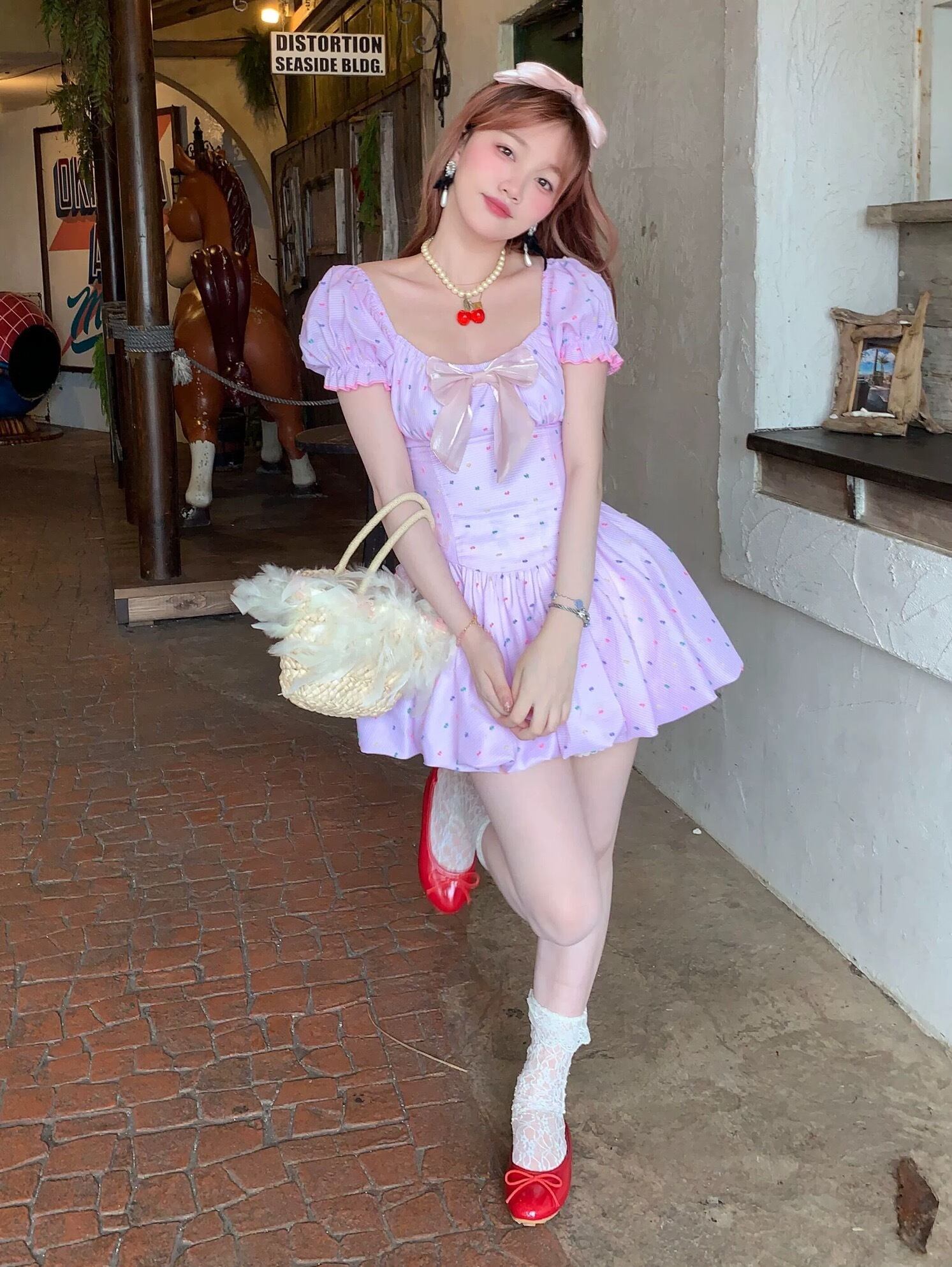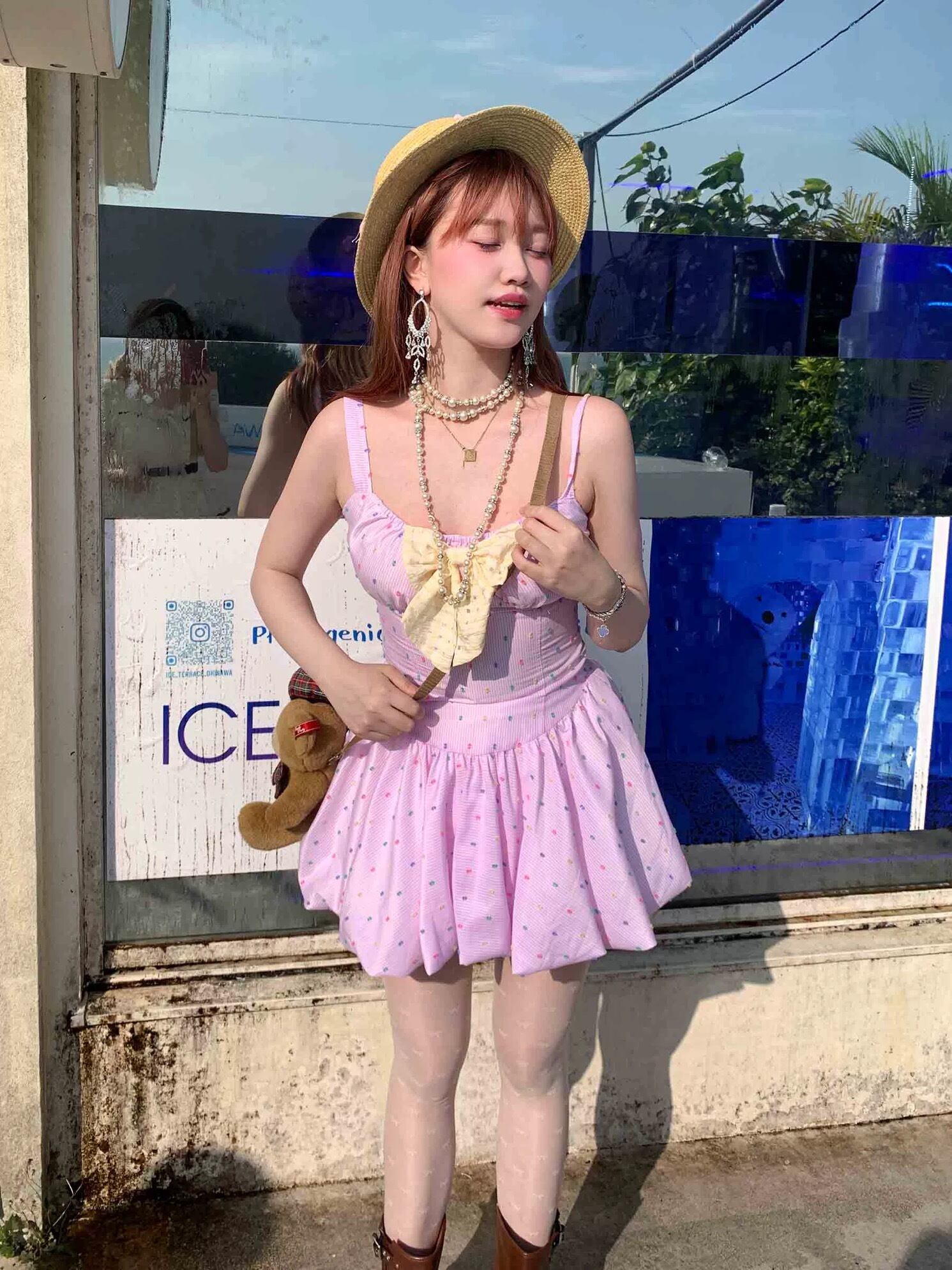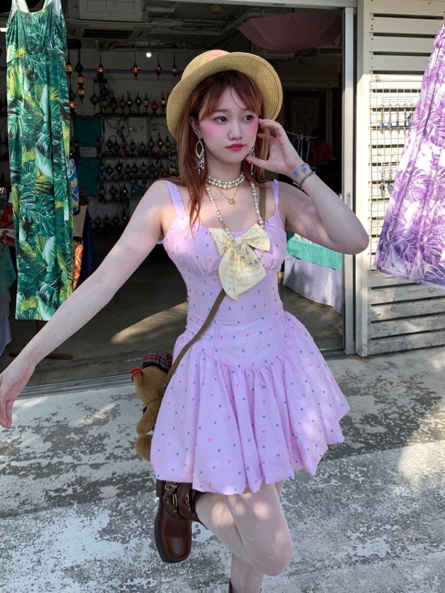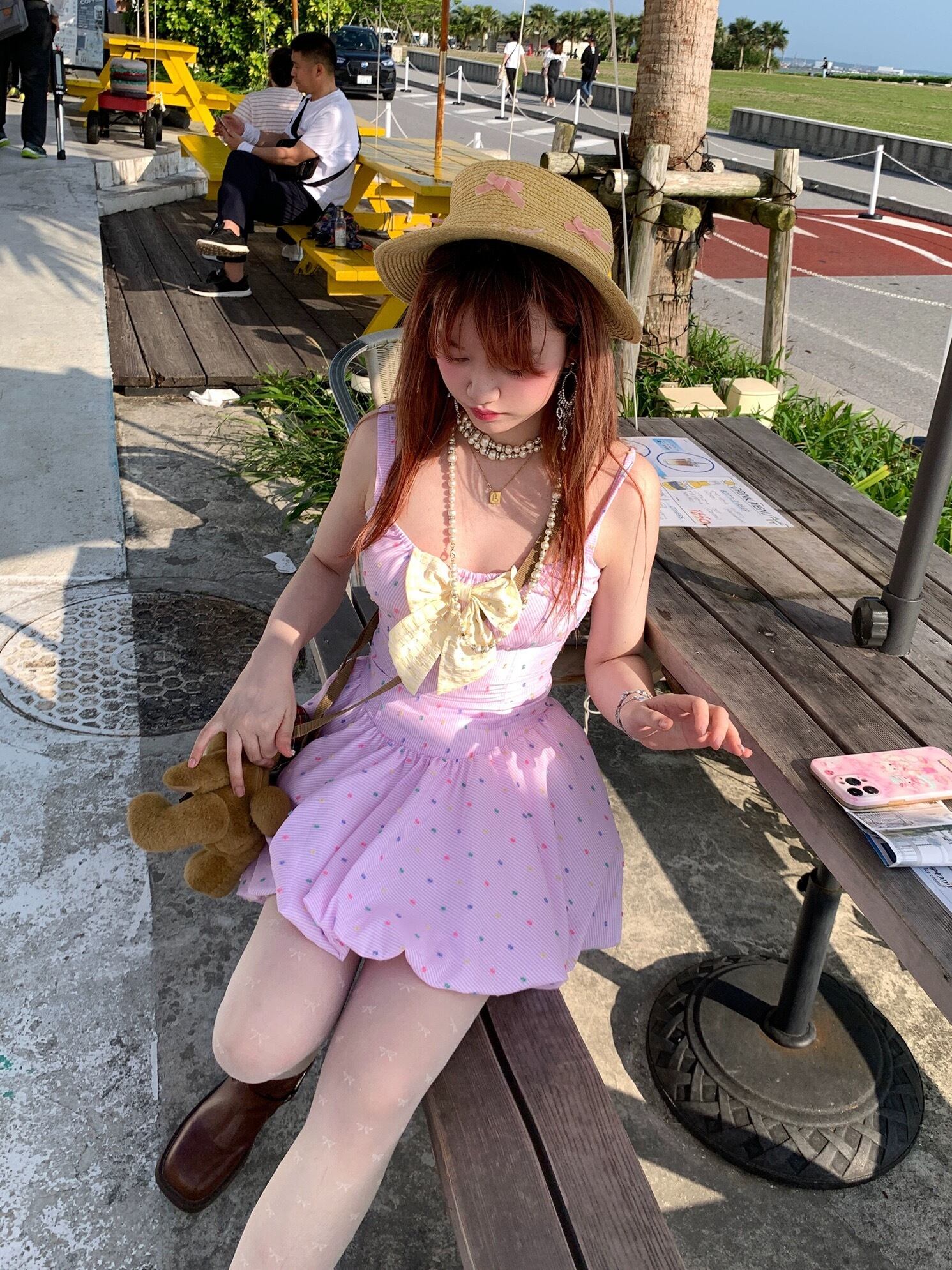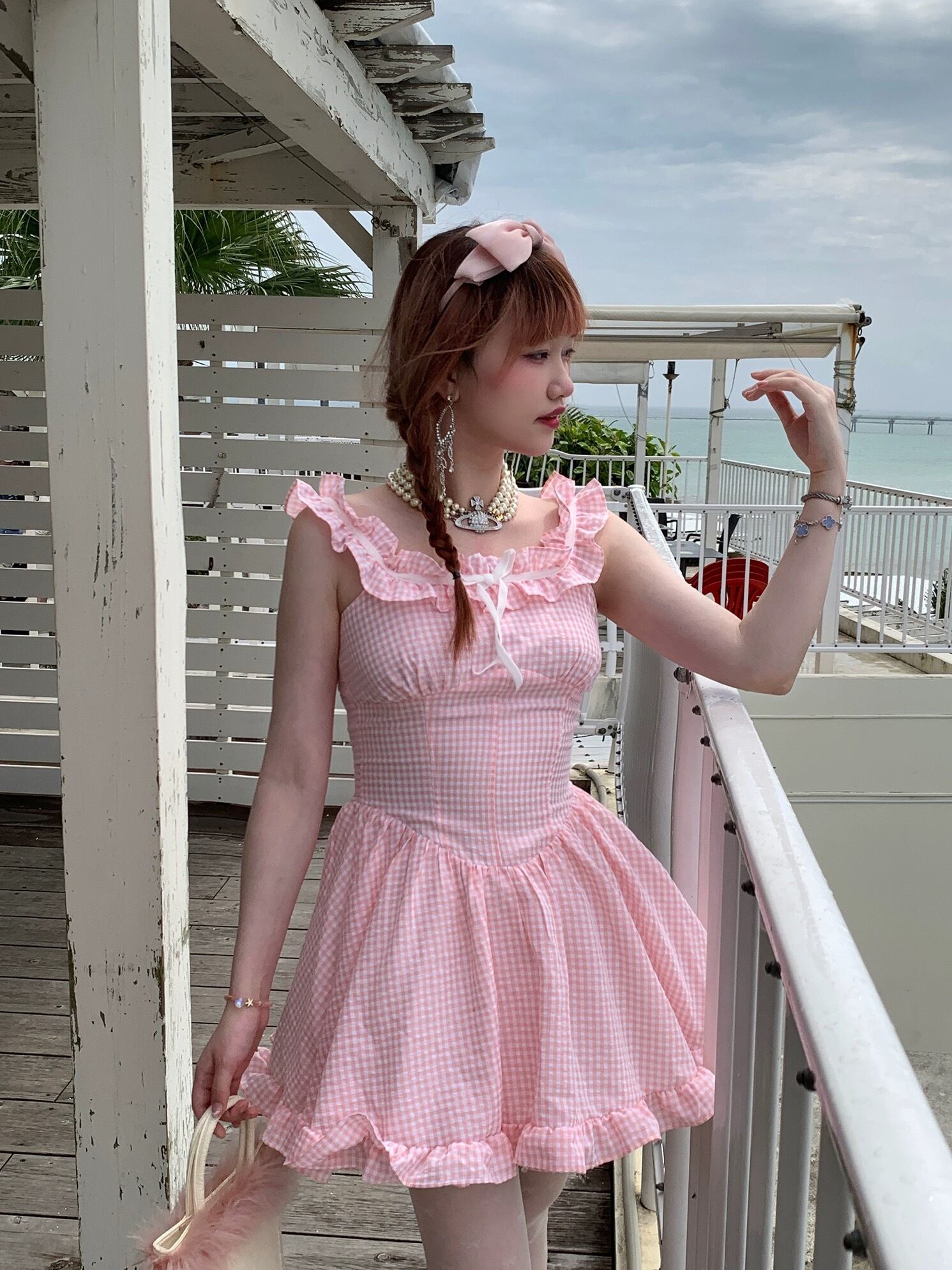 ピンク リボン チェック オフショルダー ガーリー 可愛い リボン 黄色