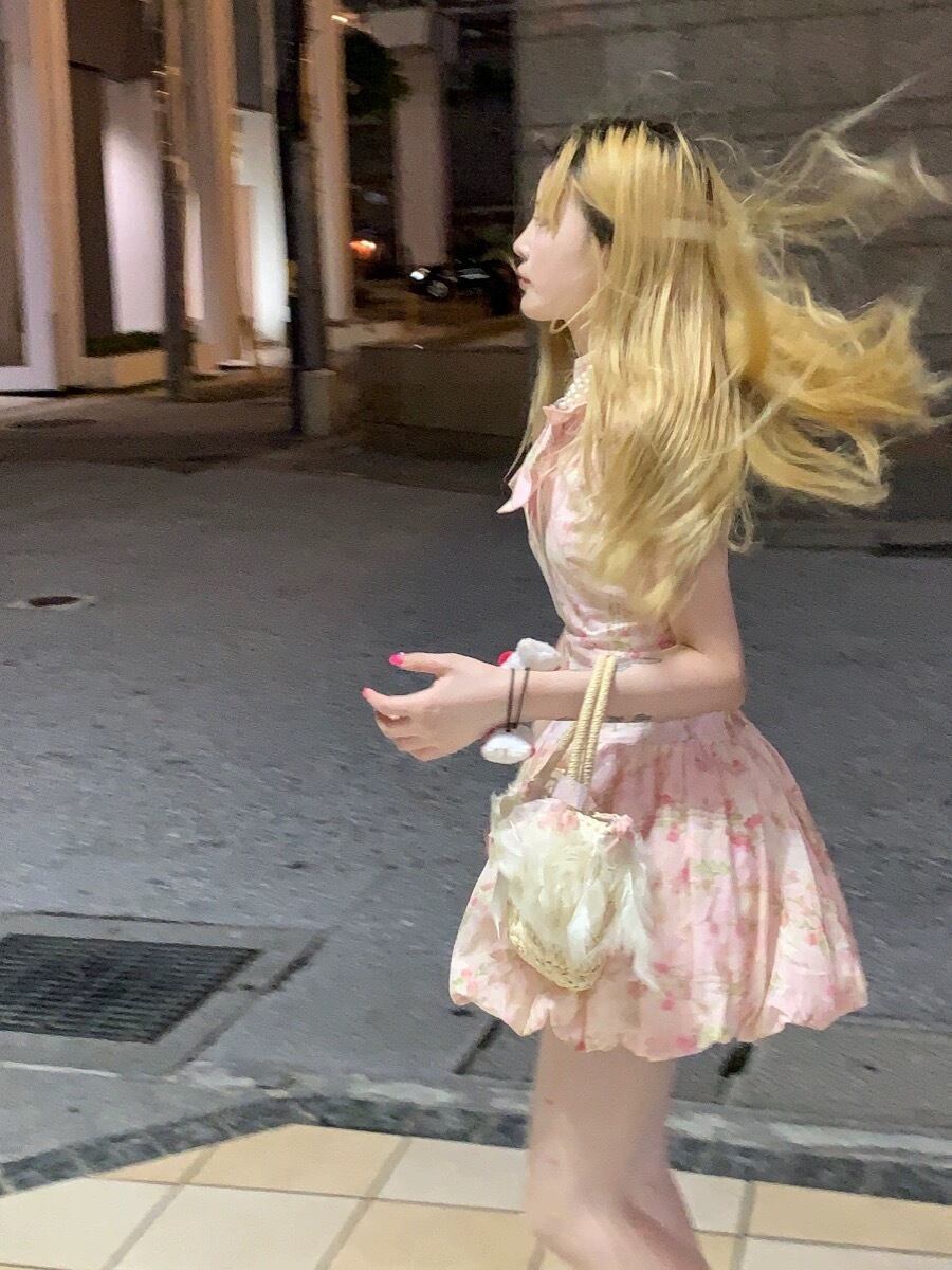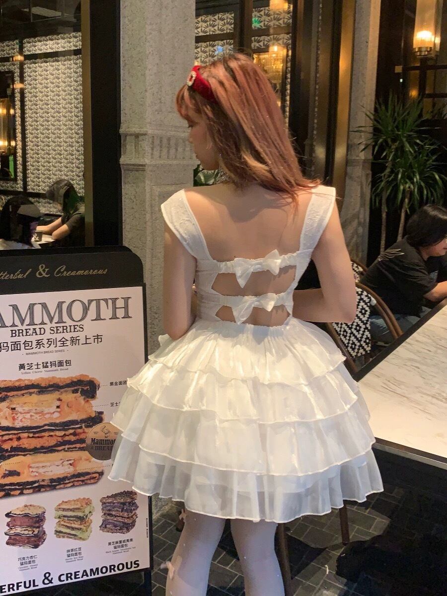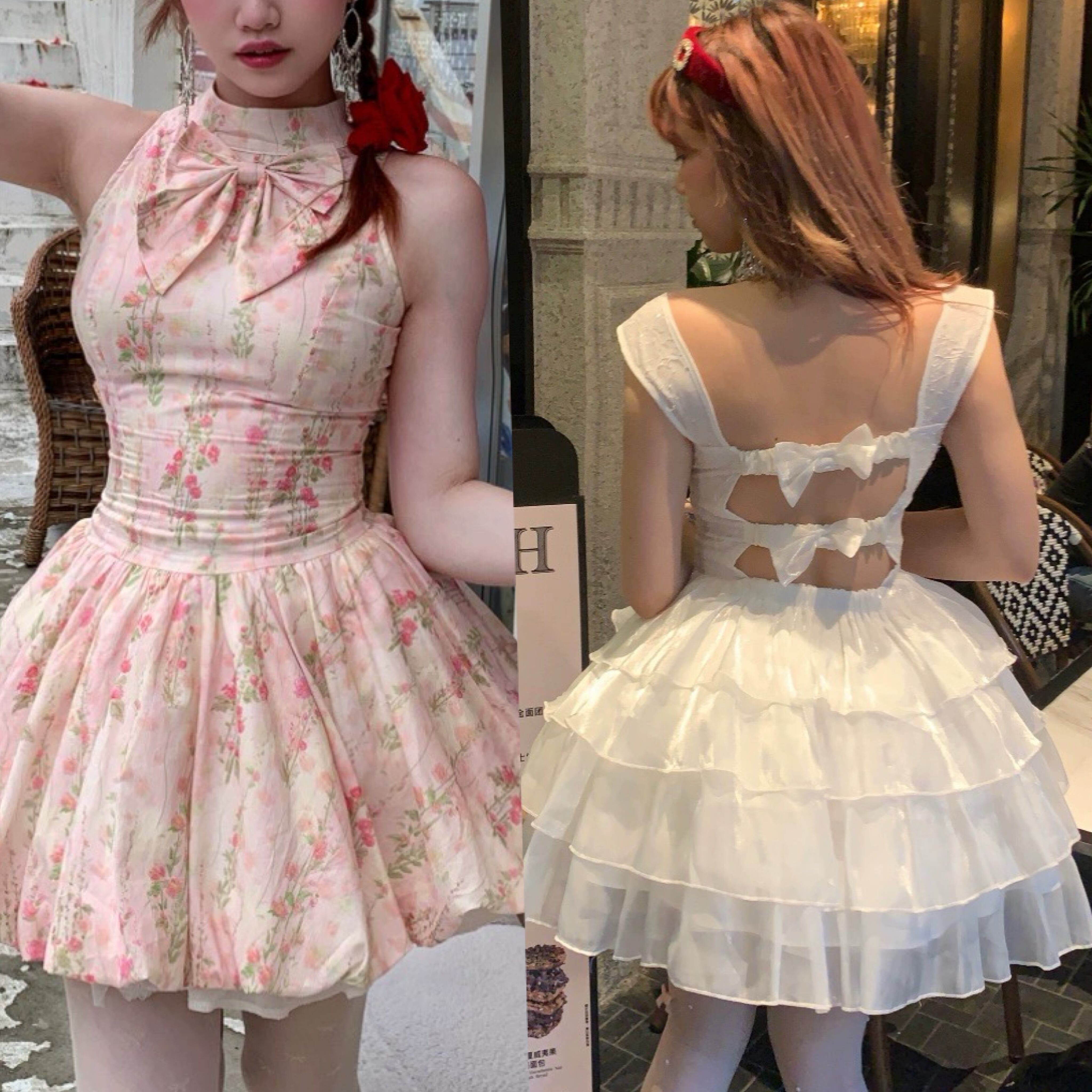 白 リボン ピンク ガーリー ワンピース 可愛い