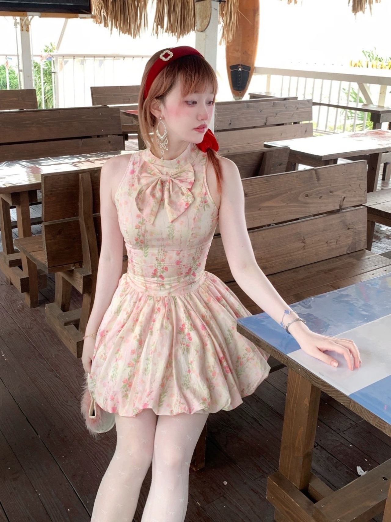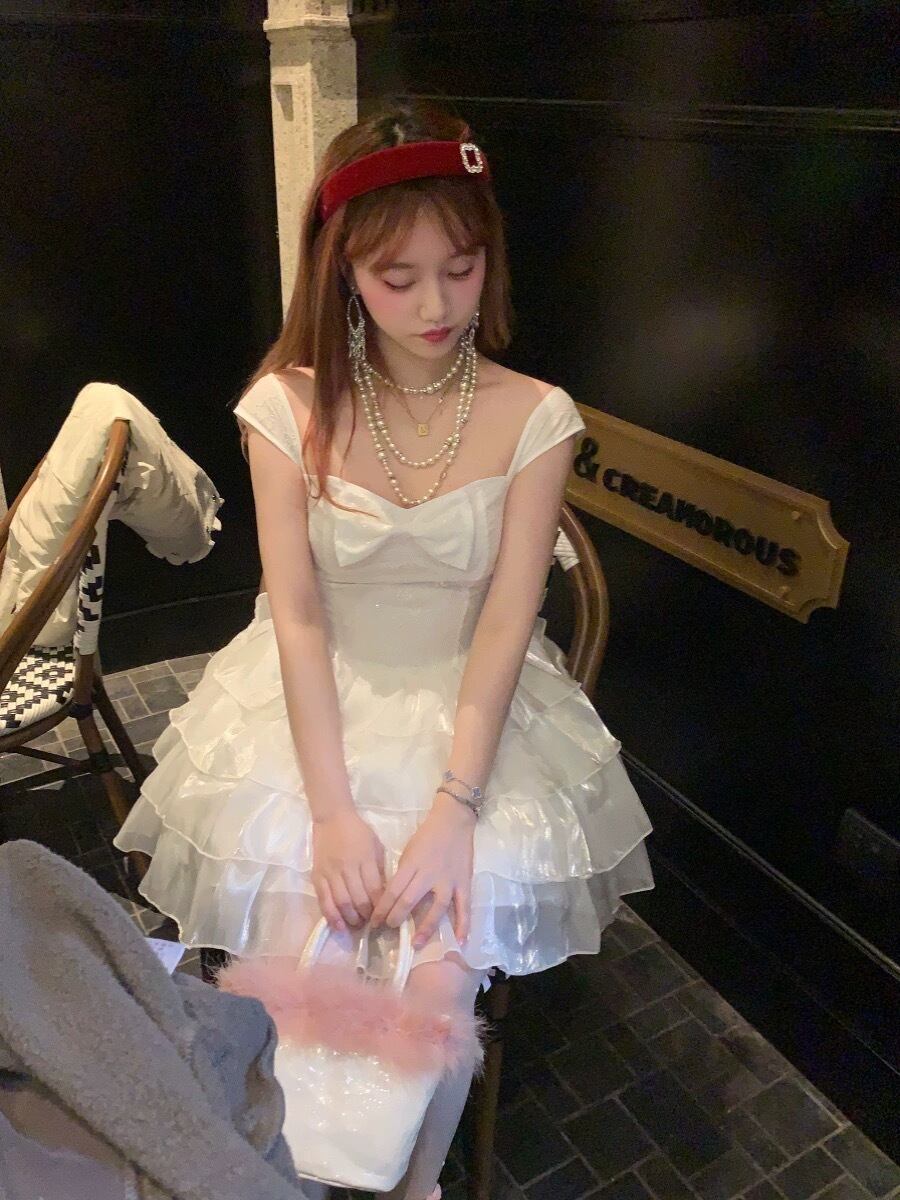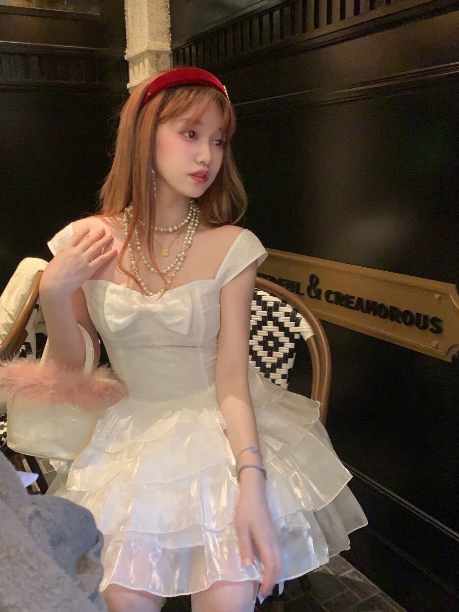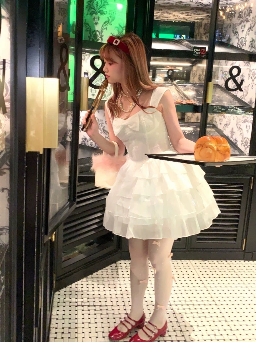 白 リボン ピンク ガーリー ワンピース 可愛い