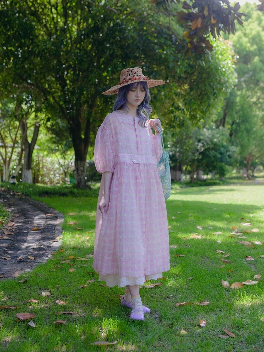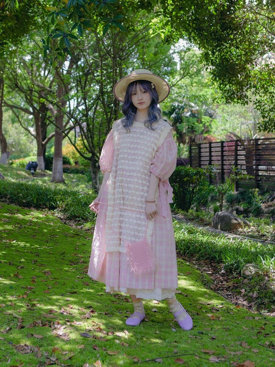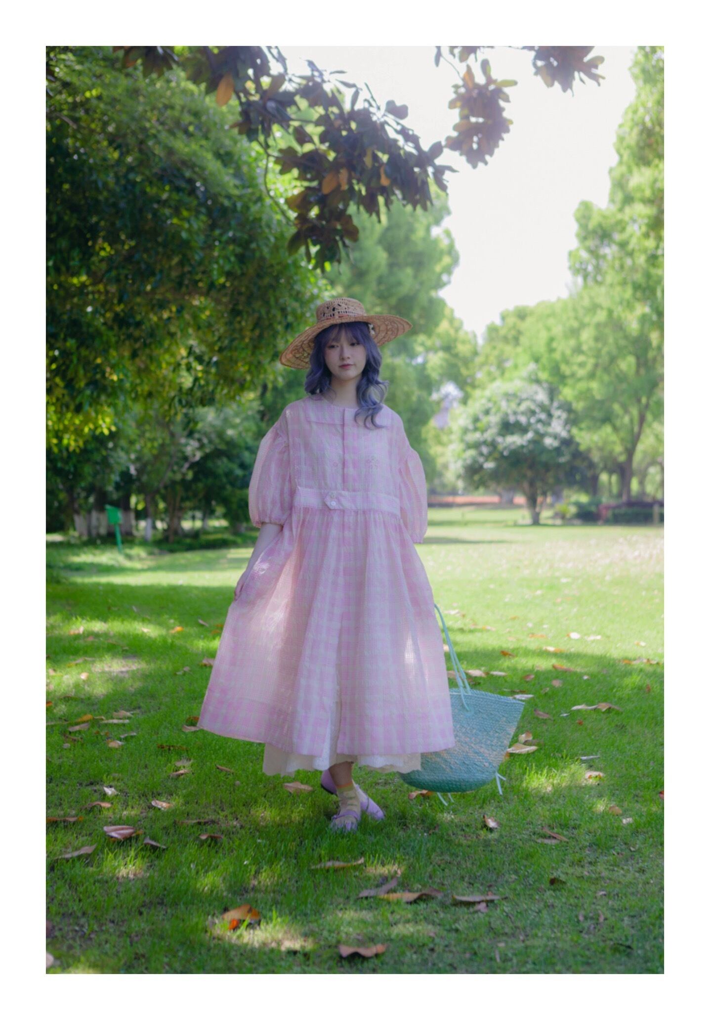 ピンク チェック カーディガン ワンピース ガーリー ブラウス 可愛い