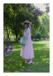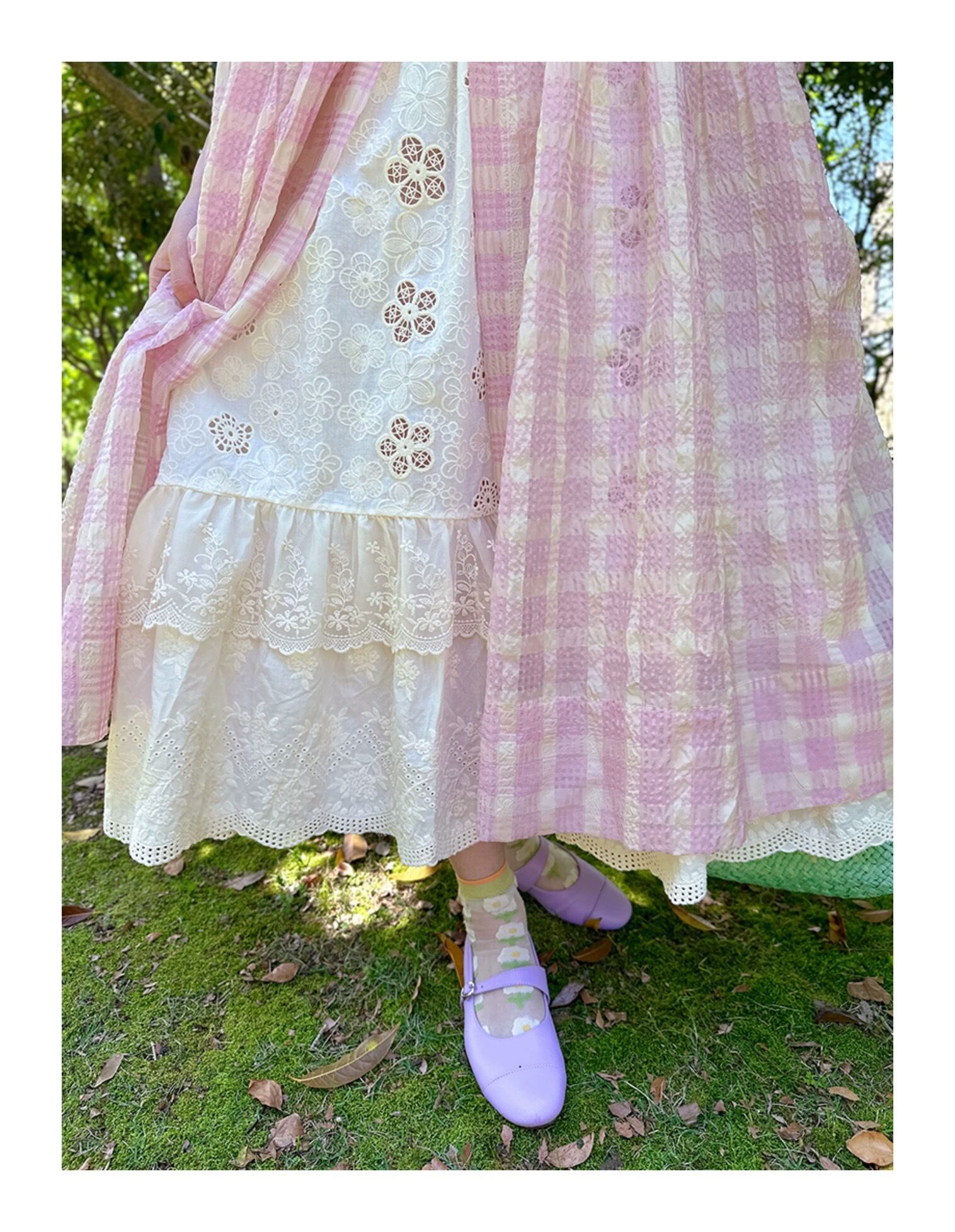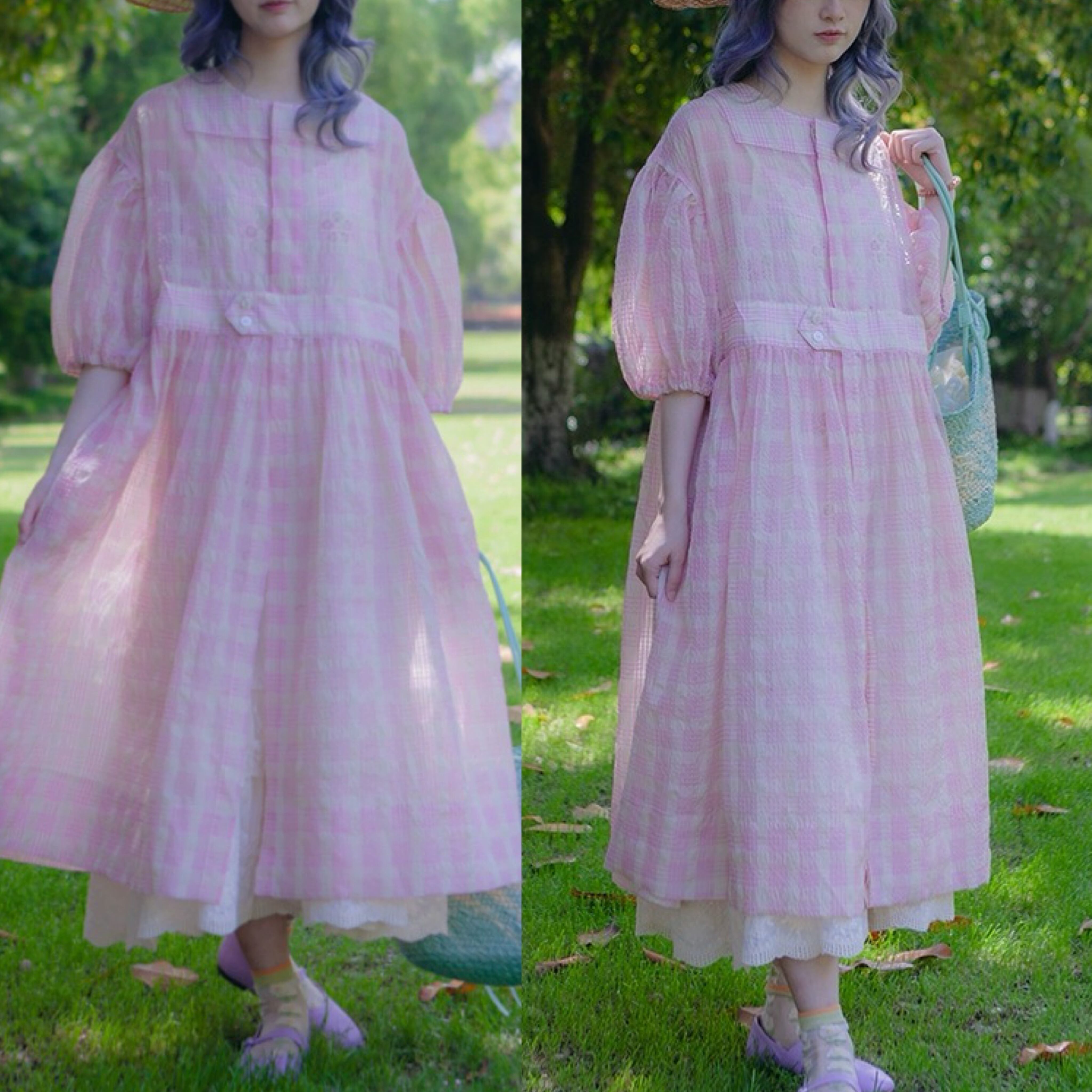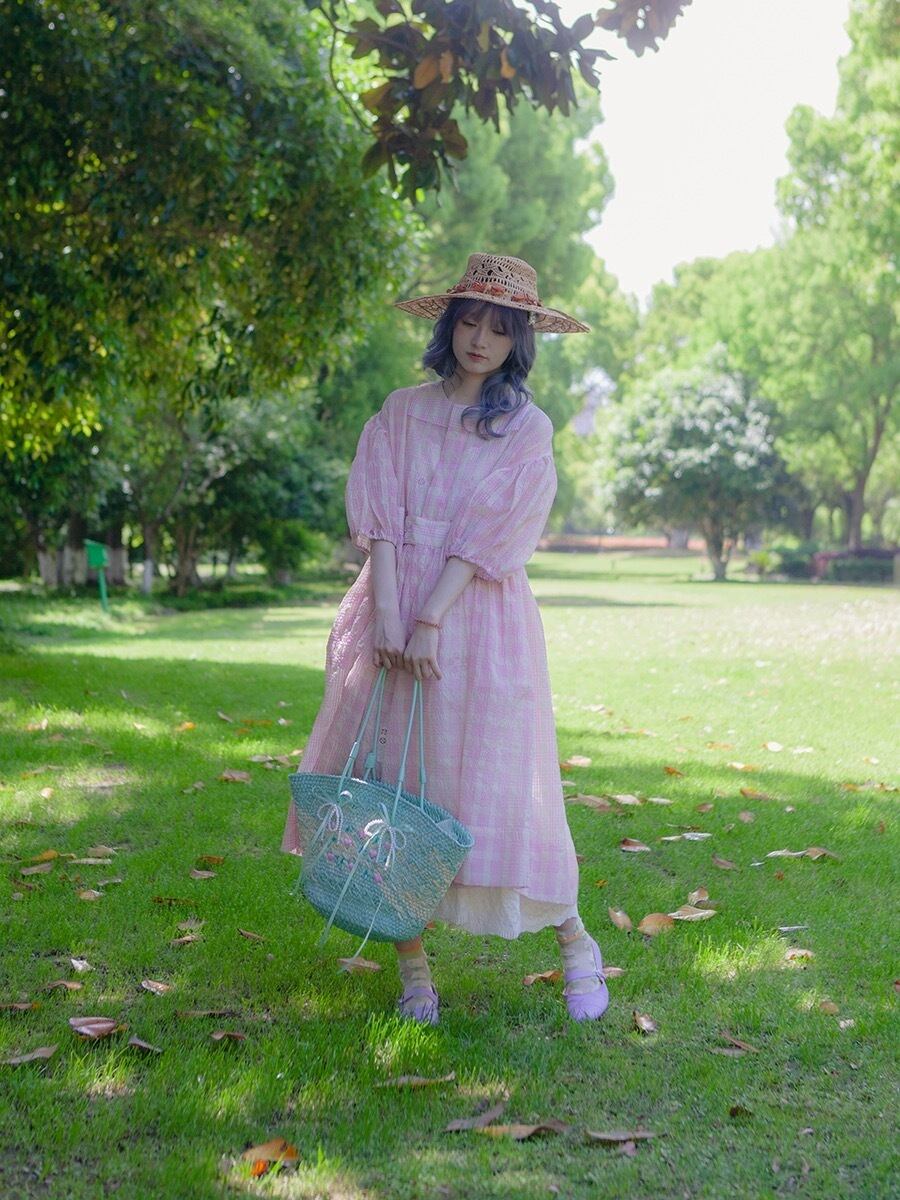 ピンク チェック カーディガン ワンピース ガーリー ブラウス 可愛い