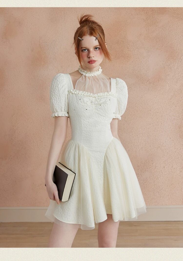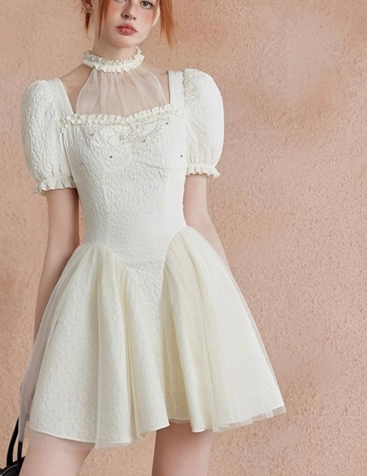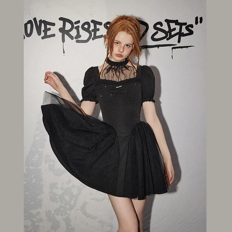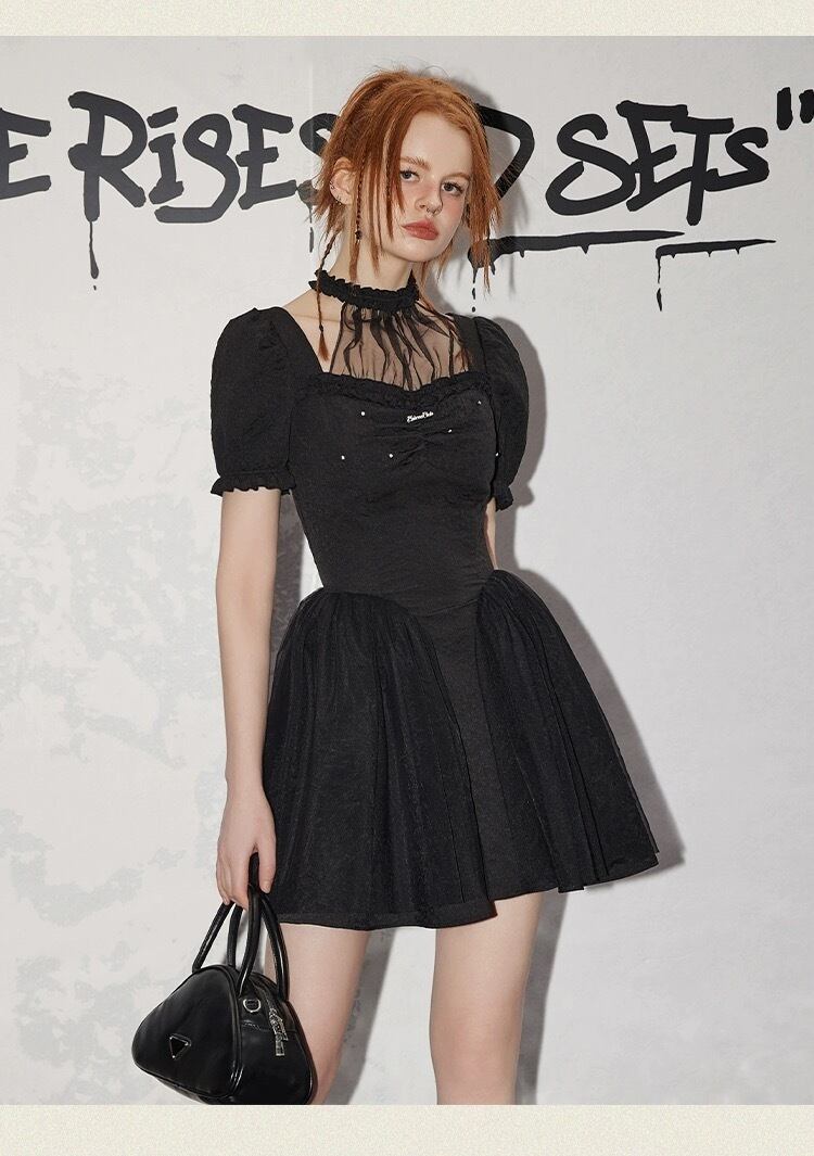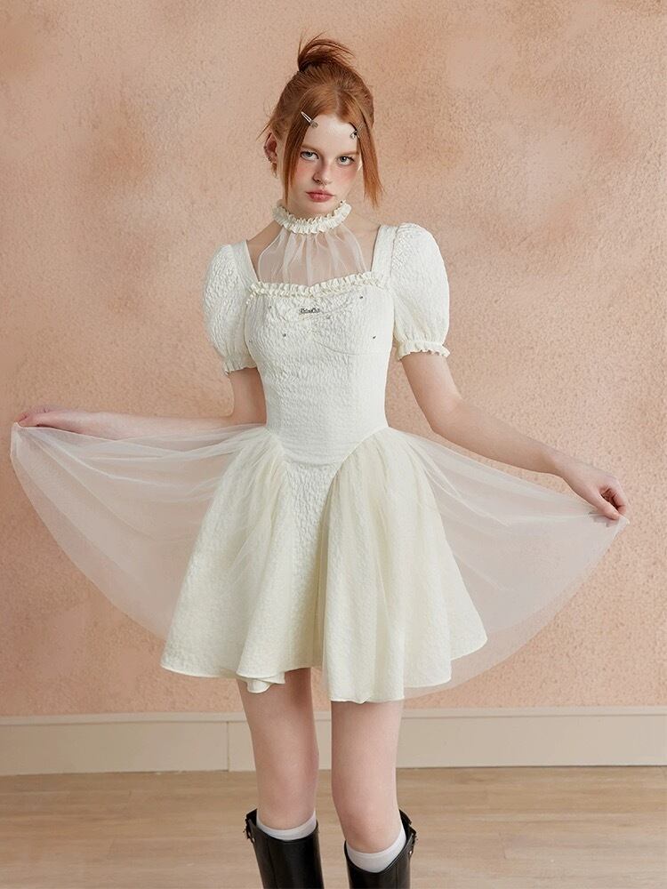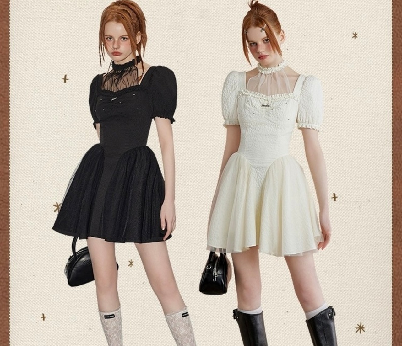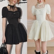 白 黒 ブラウス ガーリー 可愛い ワンピース シンプル