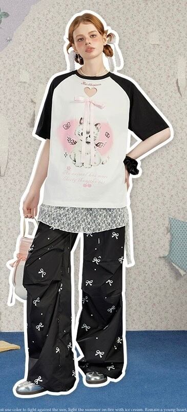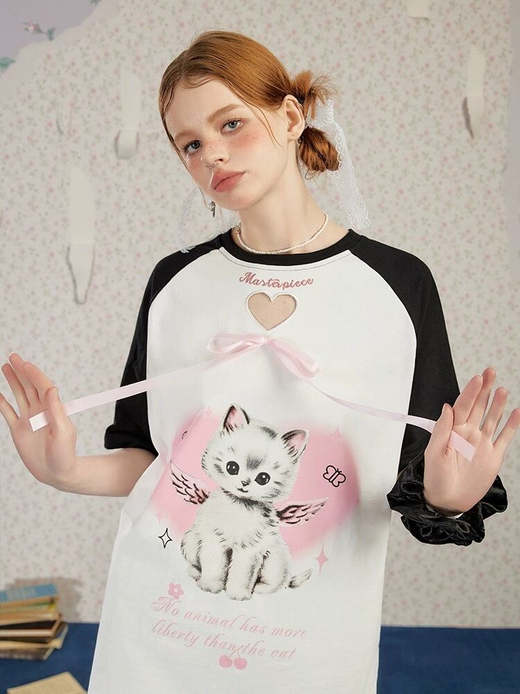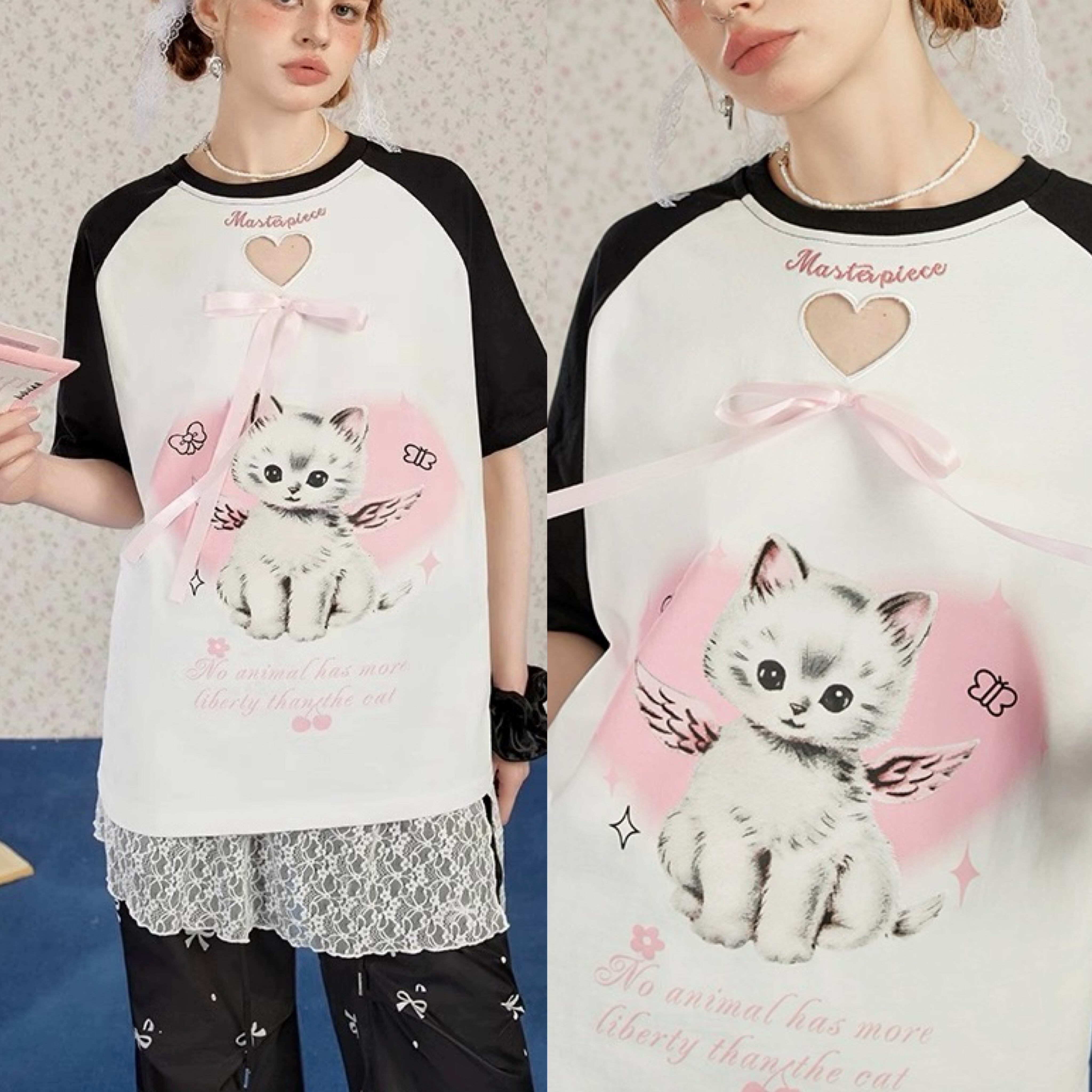 Tシャツ リボン ガーリー トップス ハート ねこ