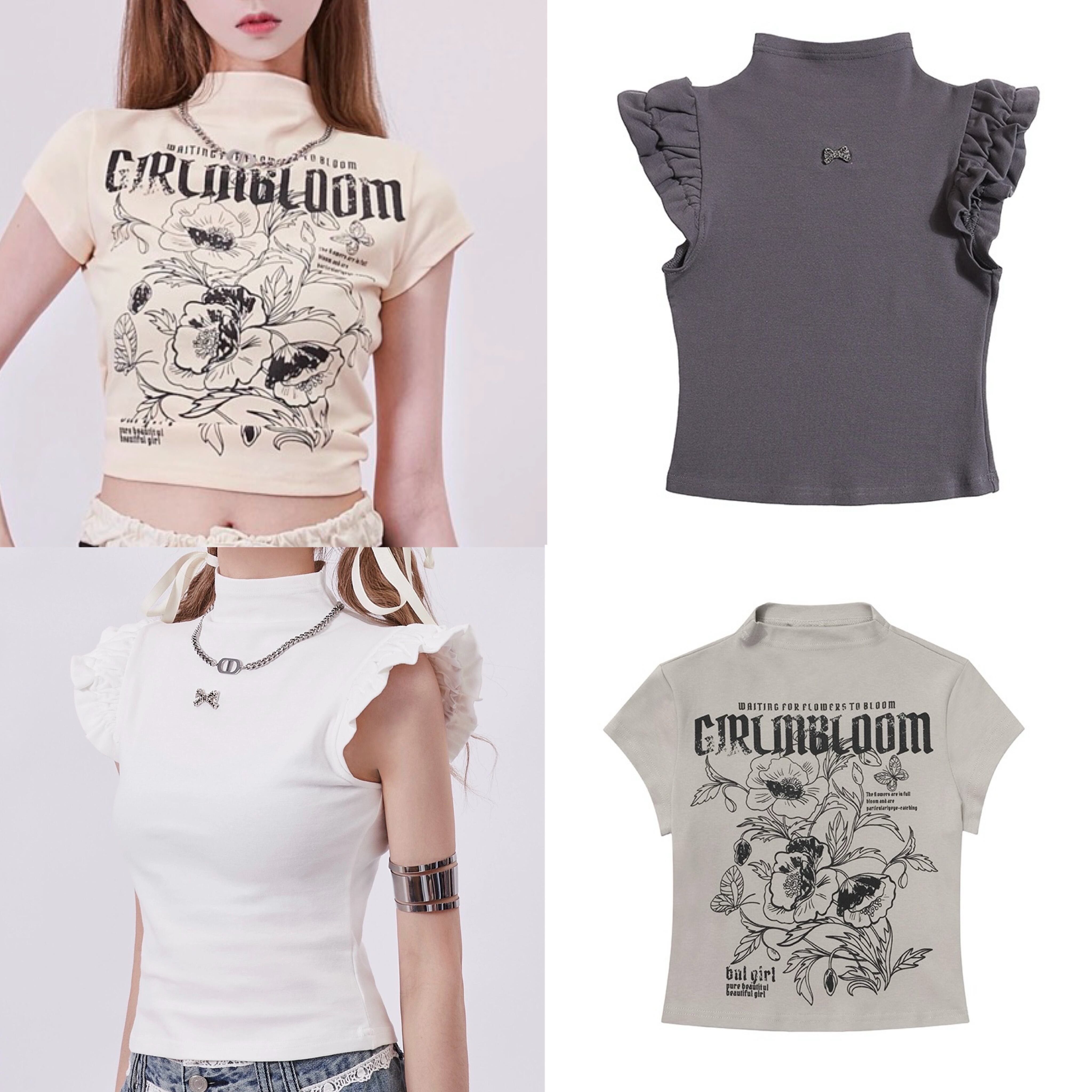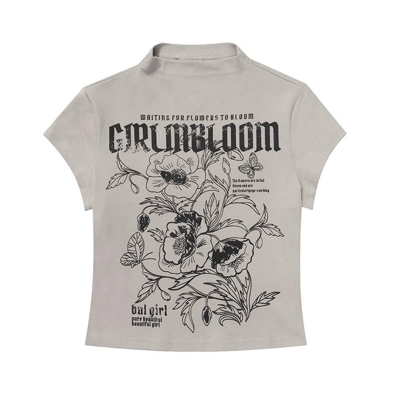 グレー 花柄 黄色 白 トップス Tシャツ カジュアル
