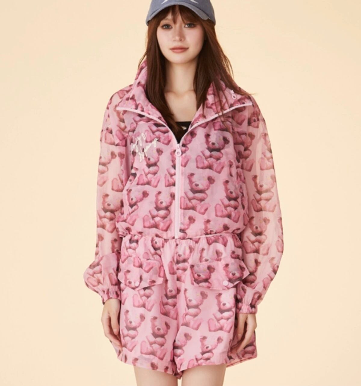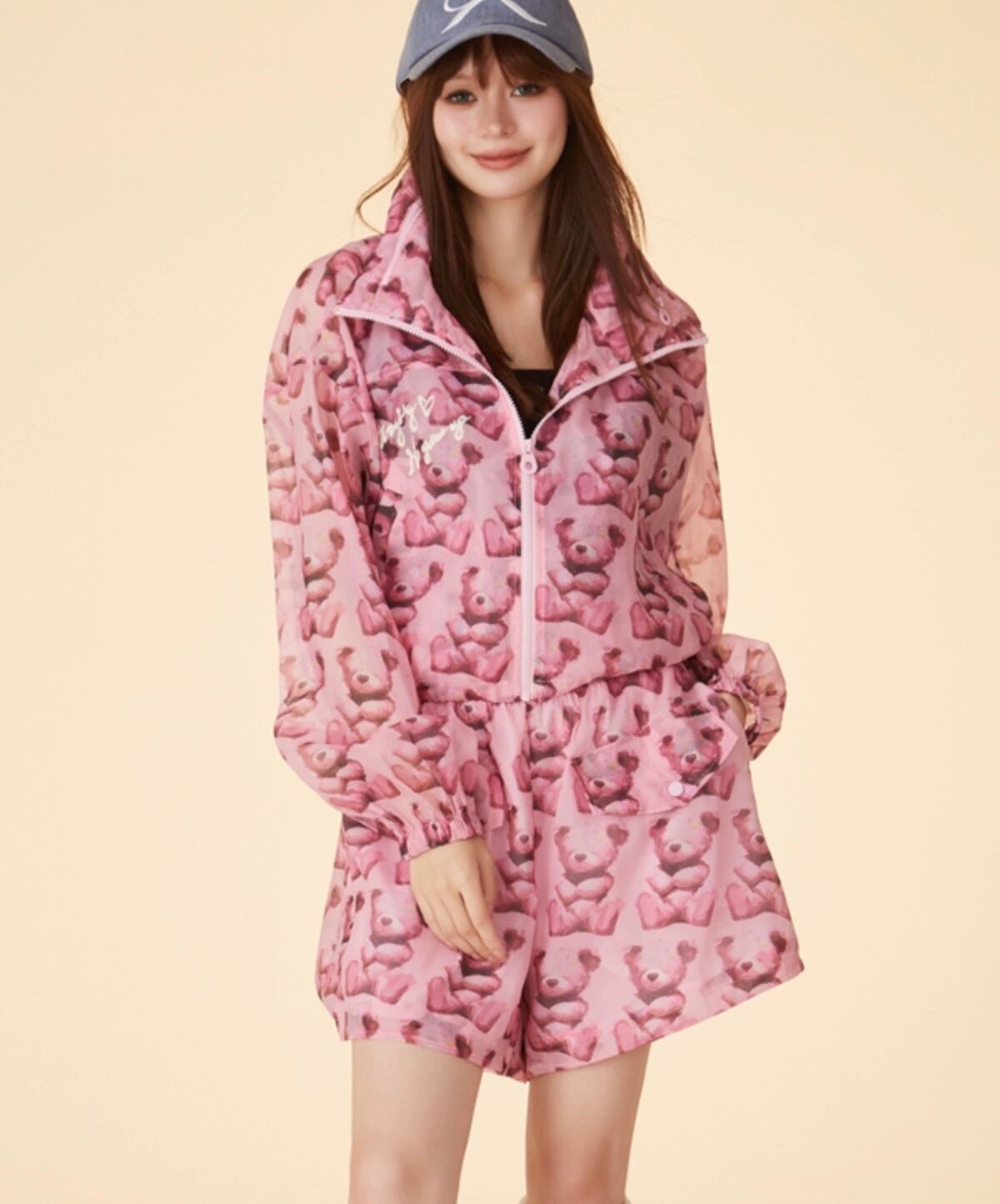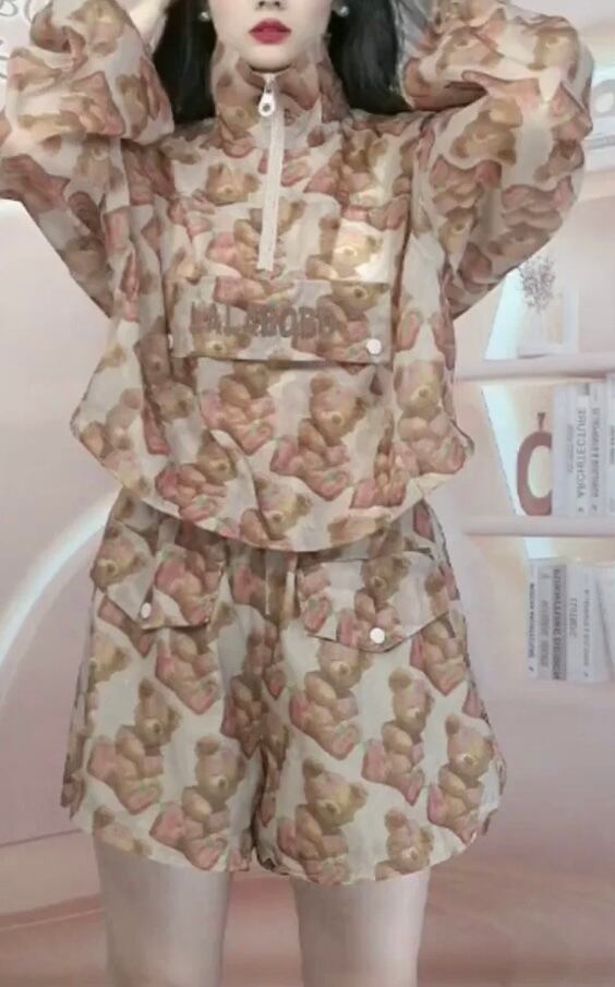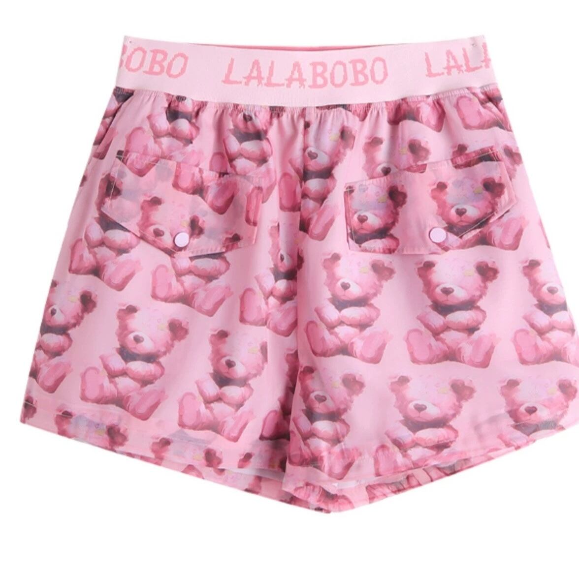 くまさん ピンク 茶色 ボトムス ショートパンツ スウェット