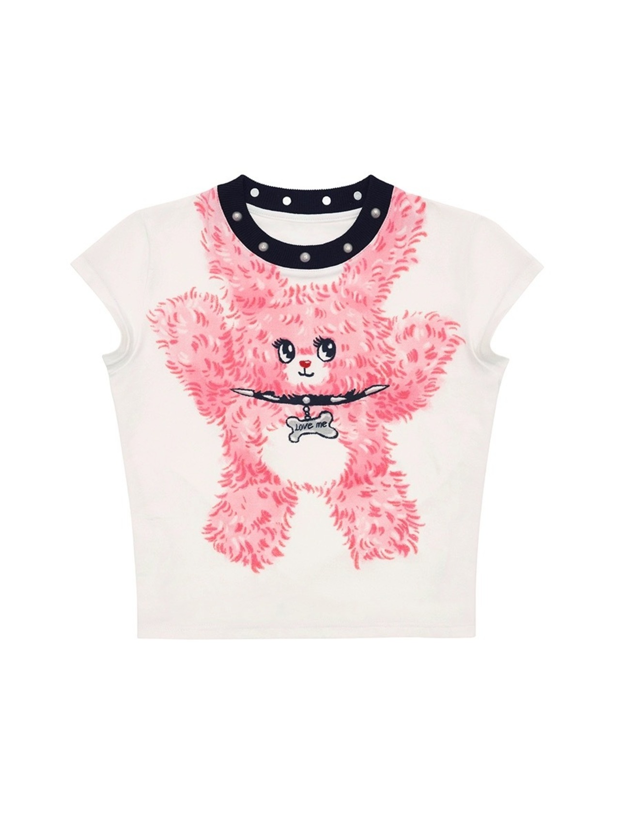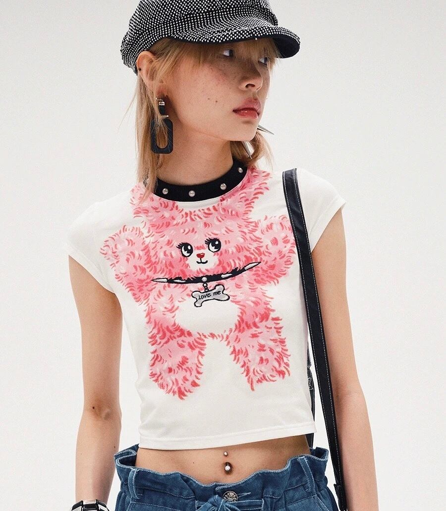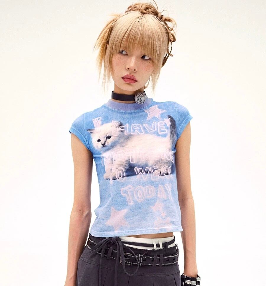 くまさん 空 水色 ねこちゃん トップス Tシャツ カジュアル ブラウス