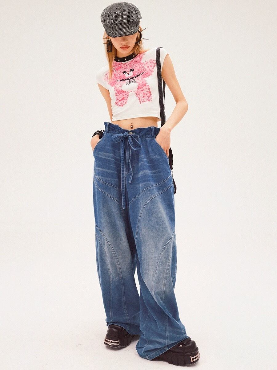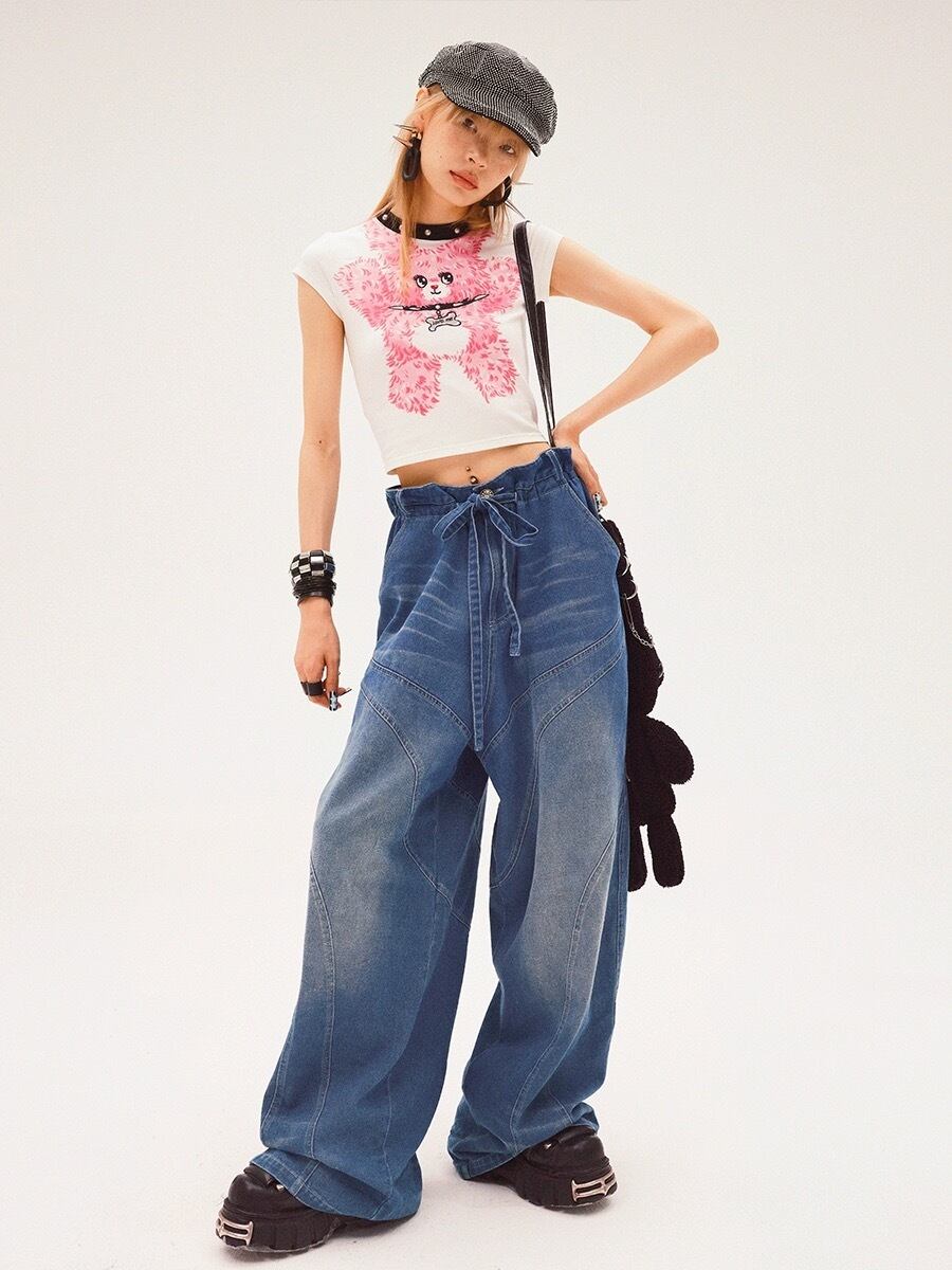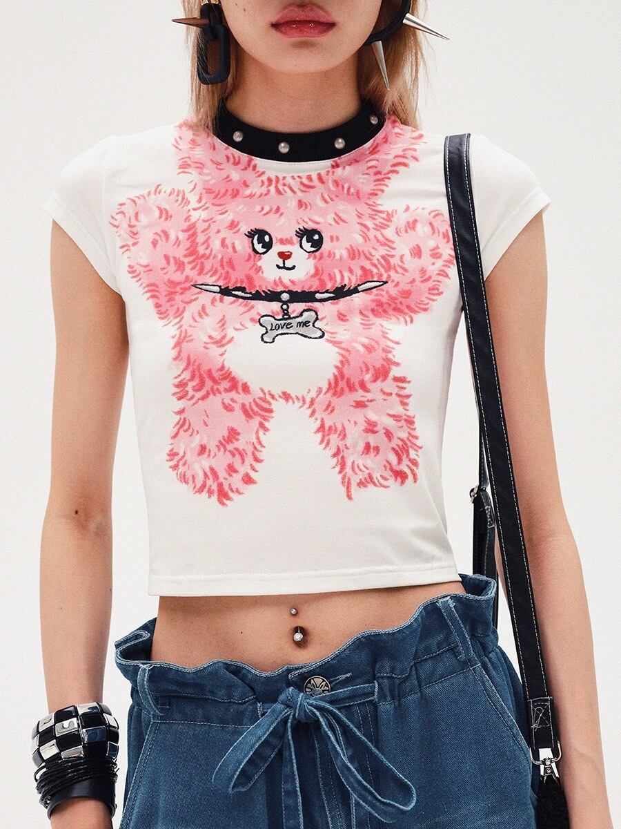くまさん 空 水色 ねこちゃん トップス Tシャツ カジュアル ブラウス