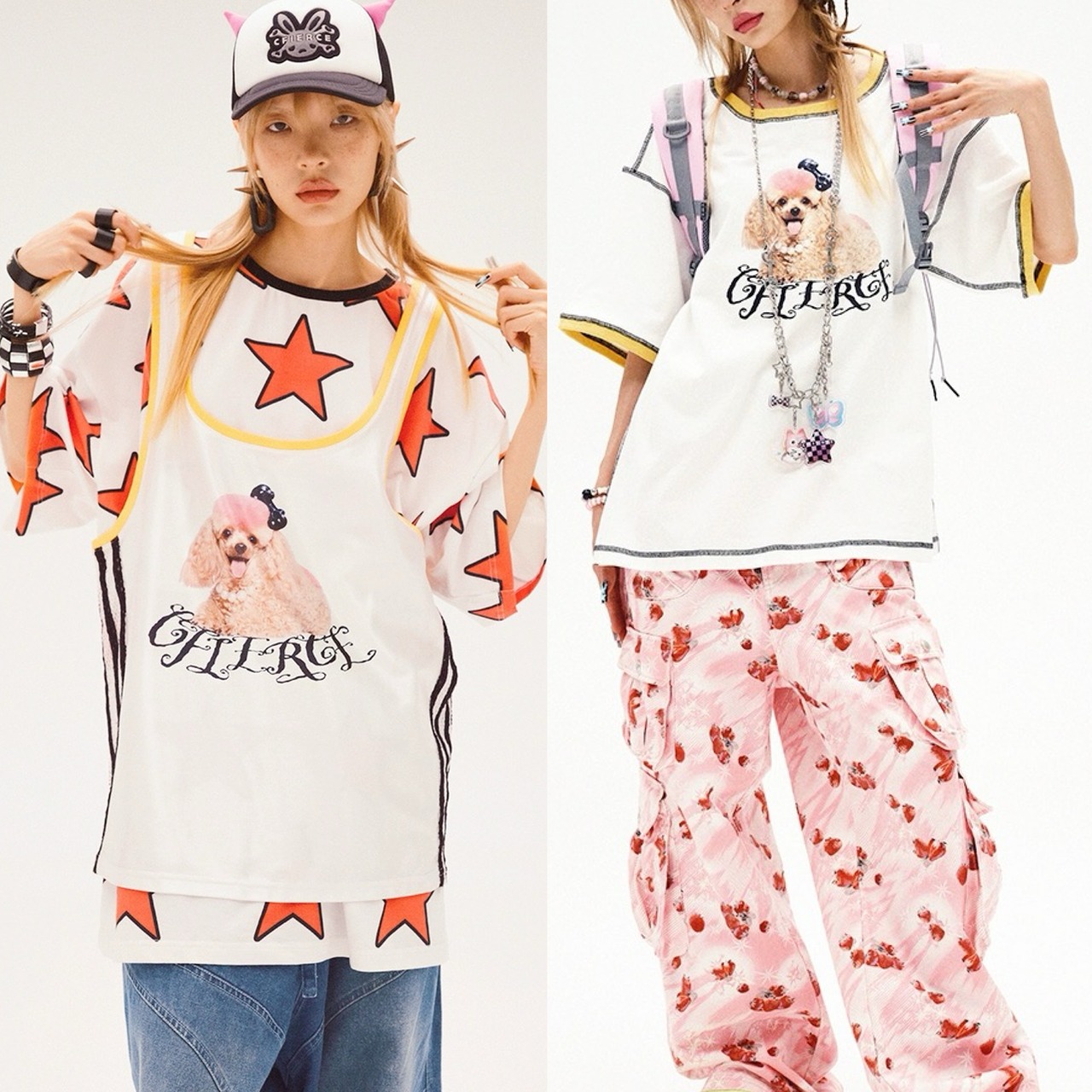 いぬ ペット 白 黄色 カジュアル スウェット ブラウス Tシャツ トイプードル ヨークシャテリア