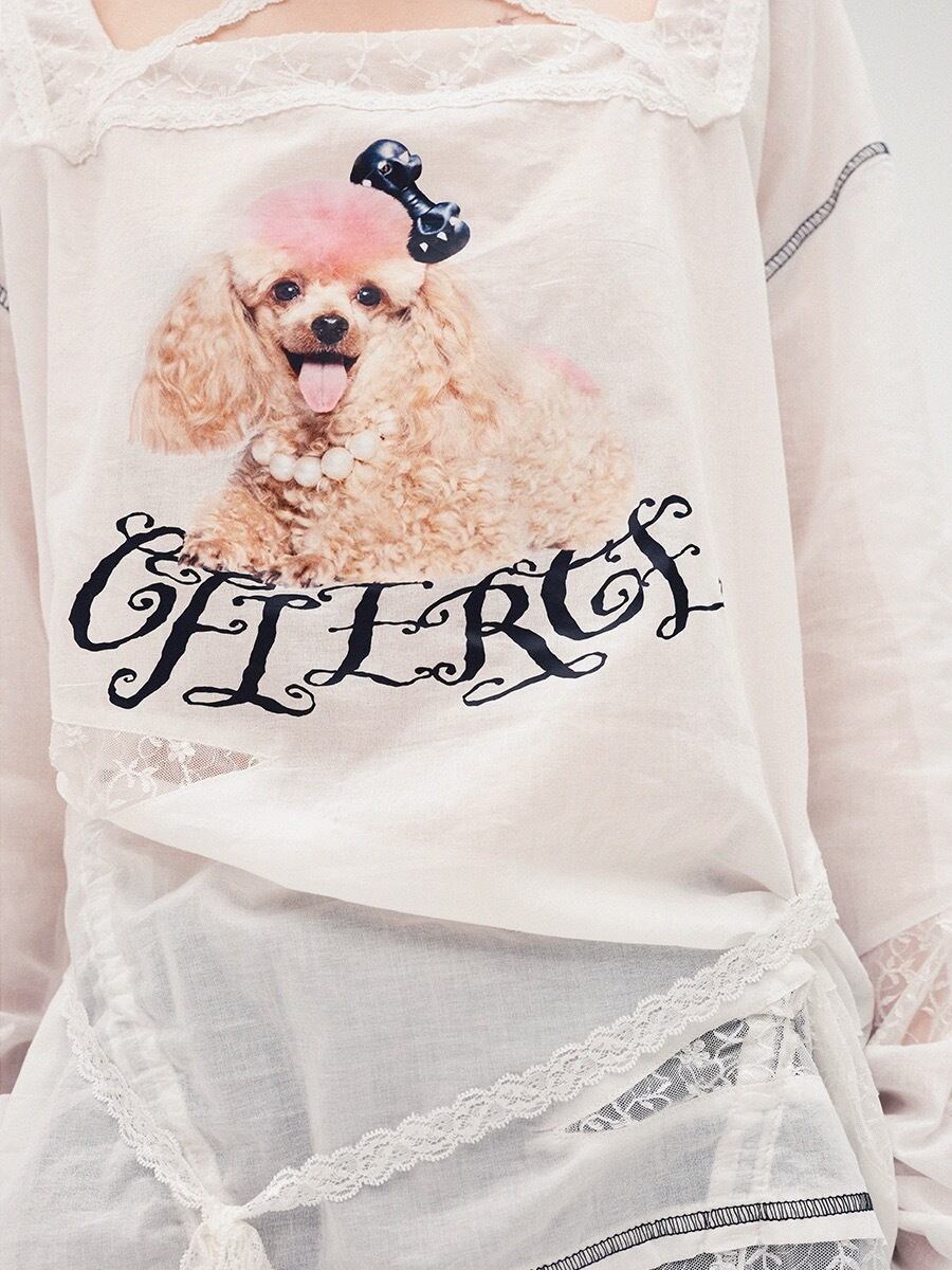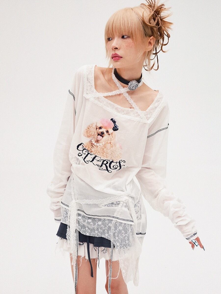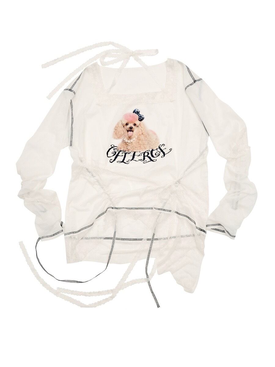 白 ホワイト ブラウス トップス ダメージ カーディガン トイプードル いぬ ペット