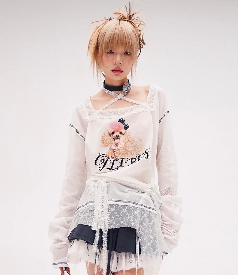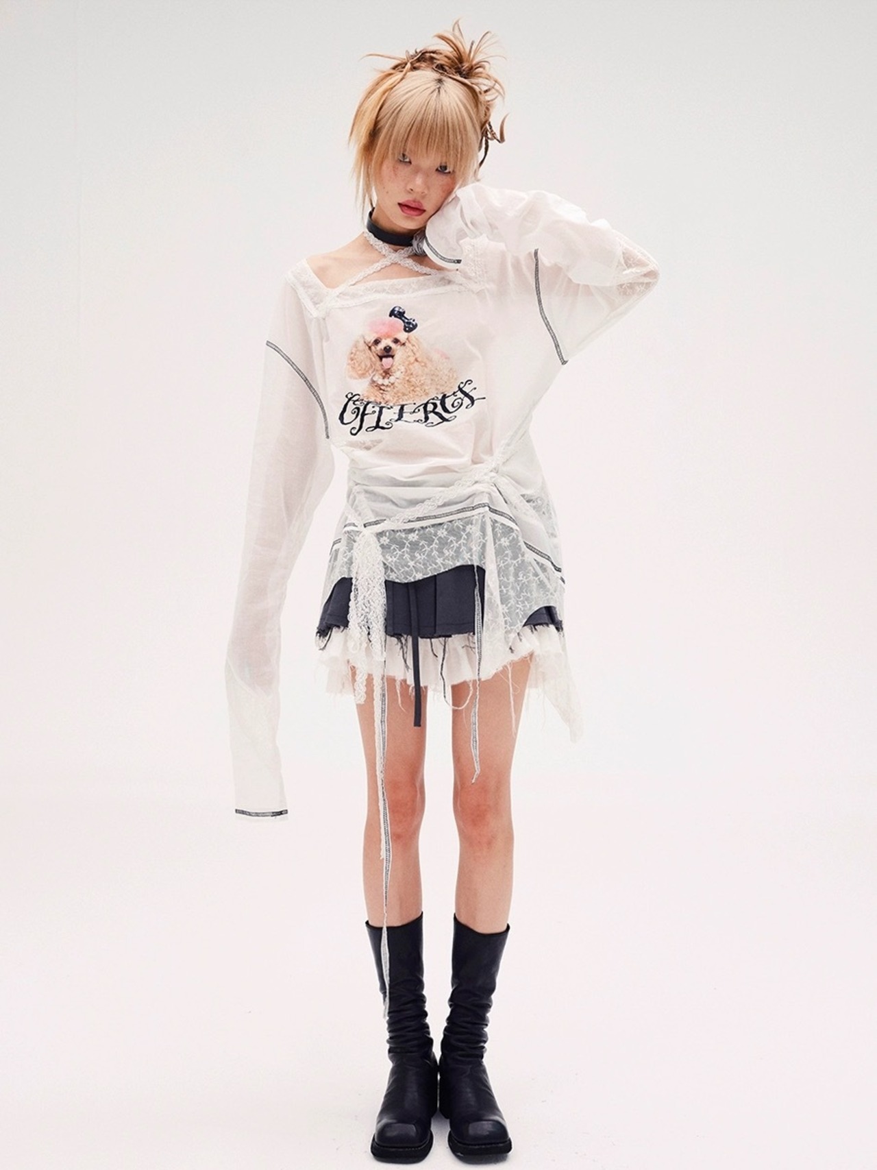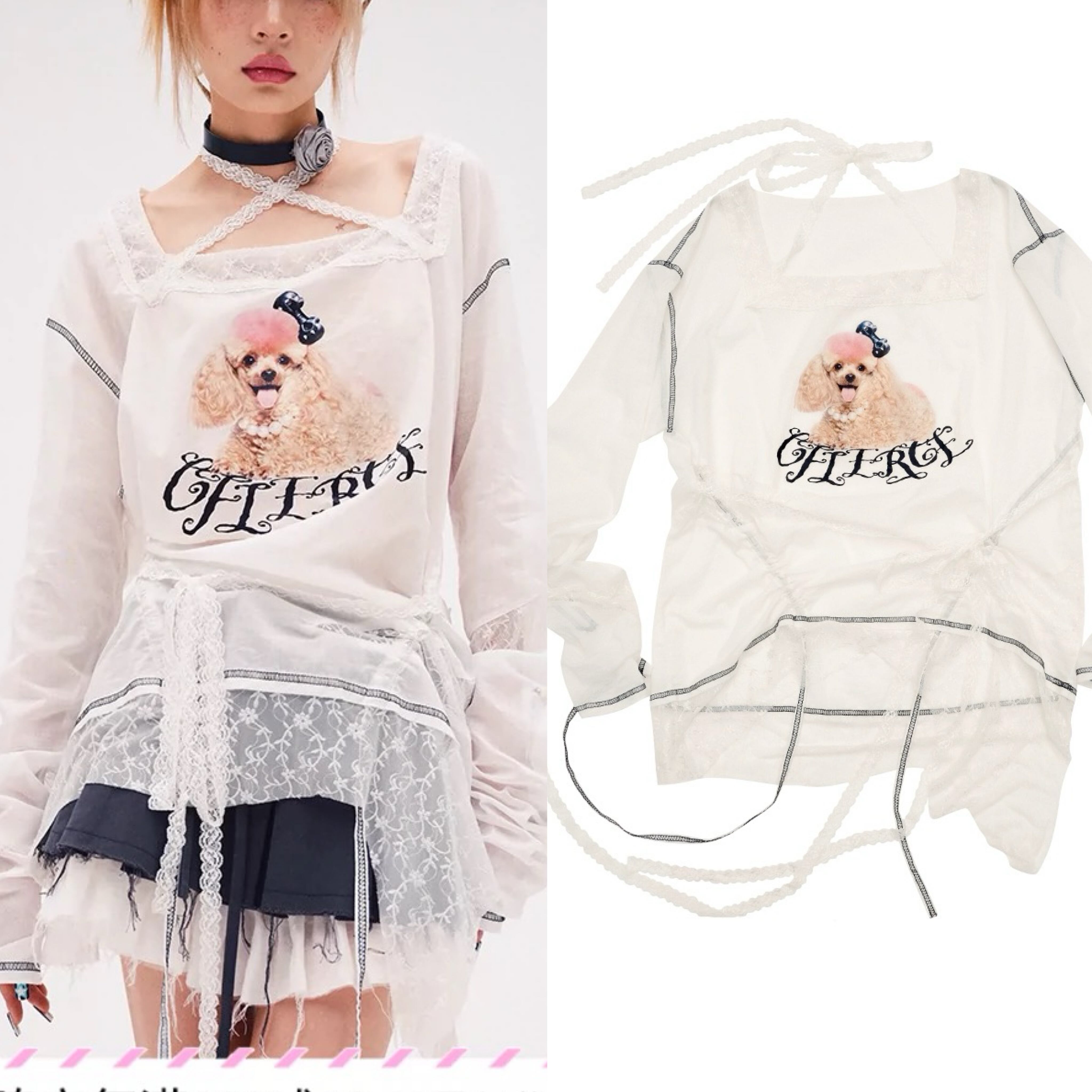 白 ホワイト ブラウス トップス ダメージ カーディガン トイプードル いぬ ペット