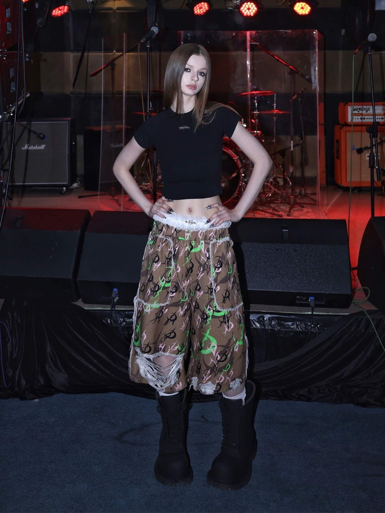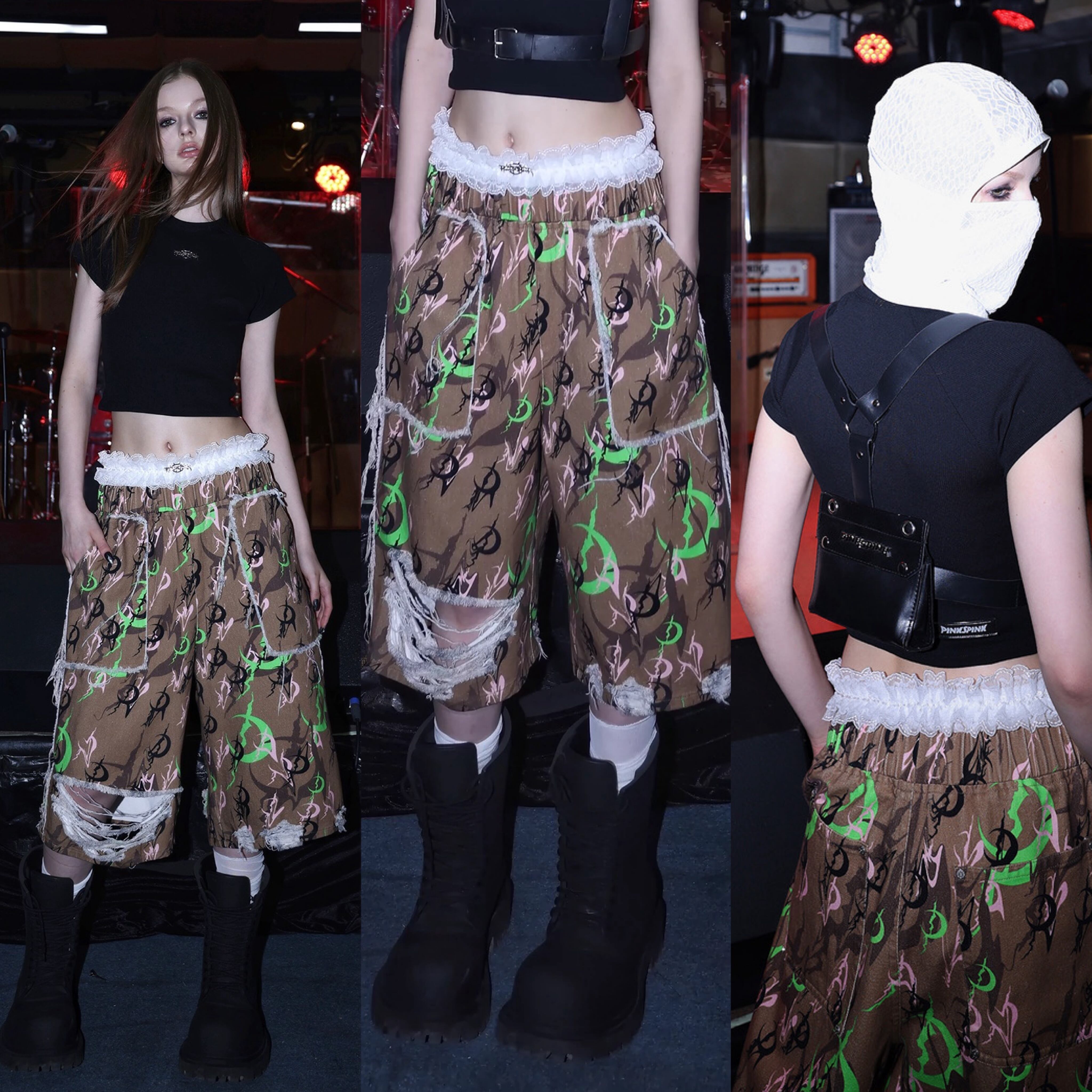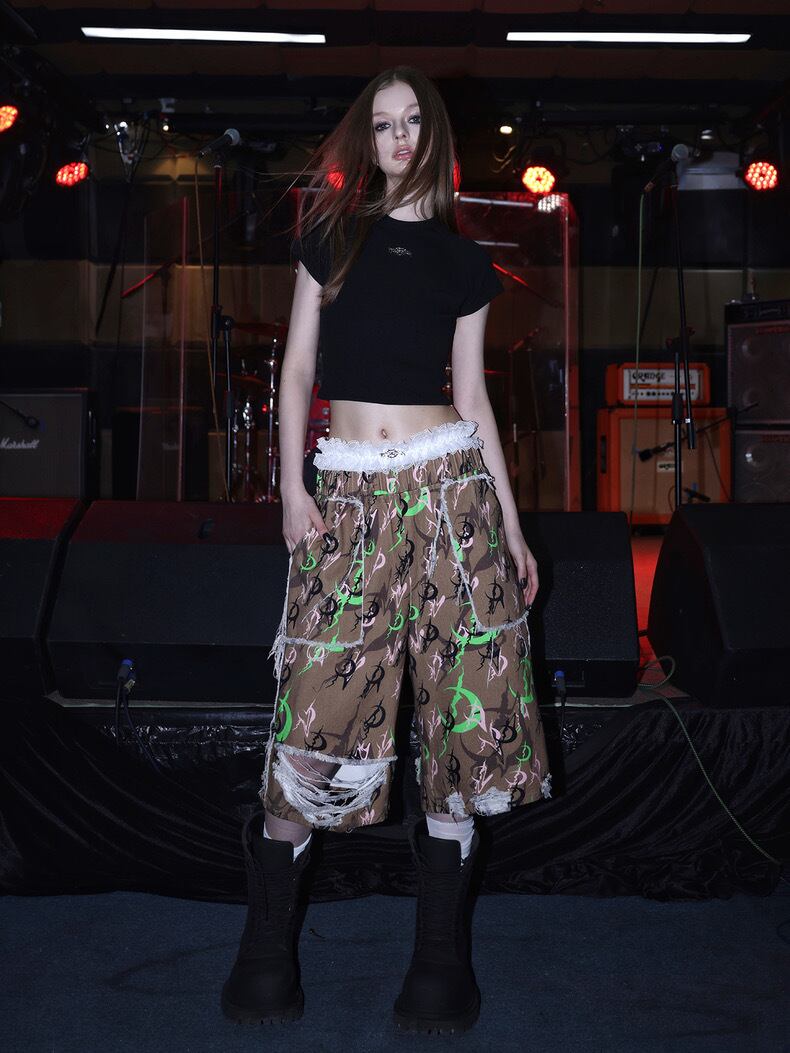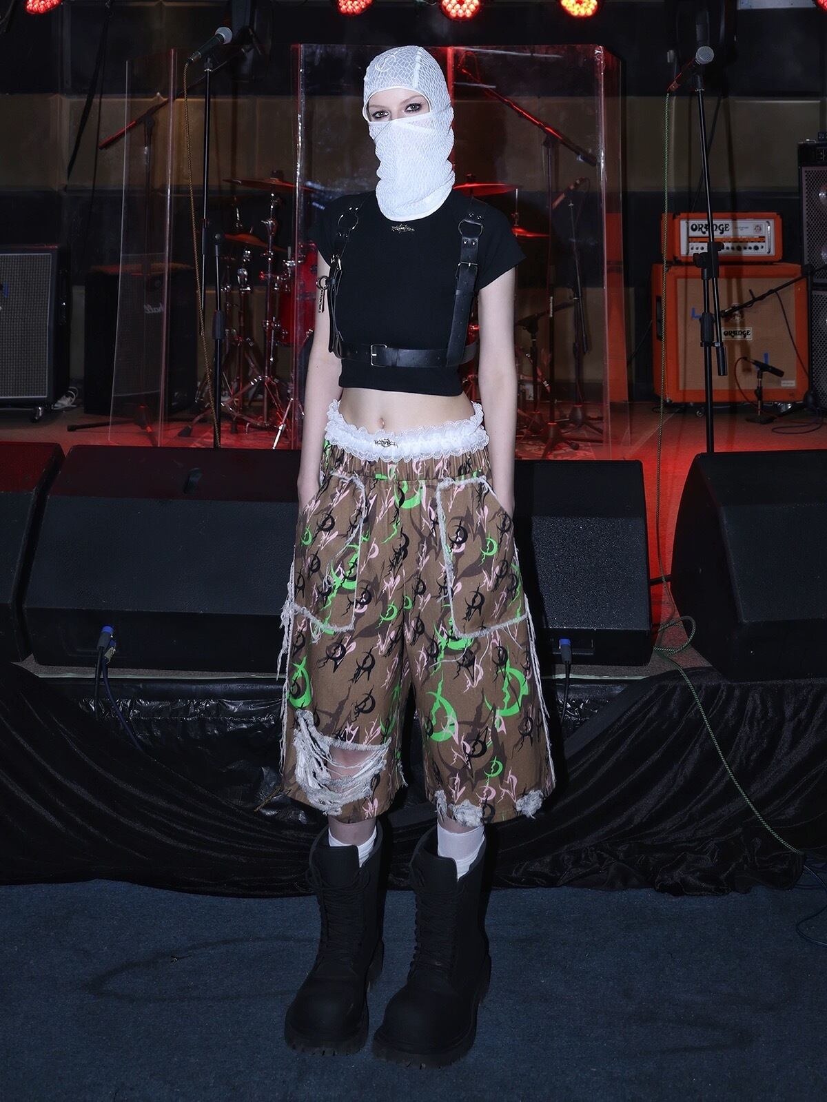 茶色 緑 ボトムス パンツ ハーフパンツ カジュアル ストリート
