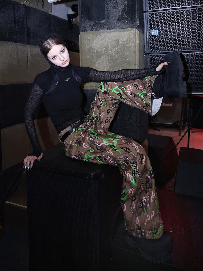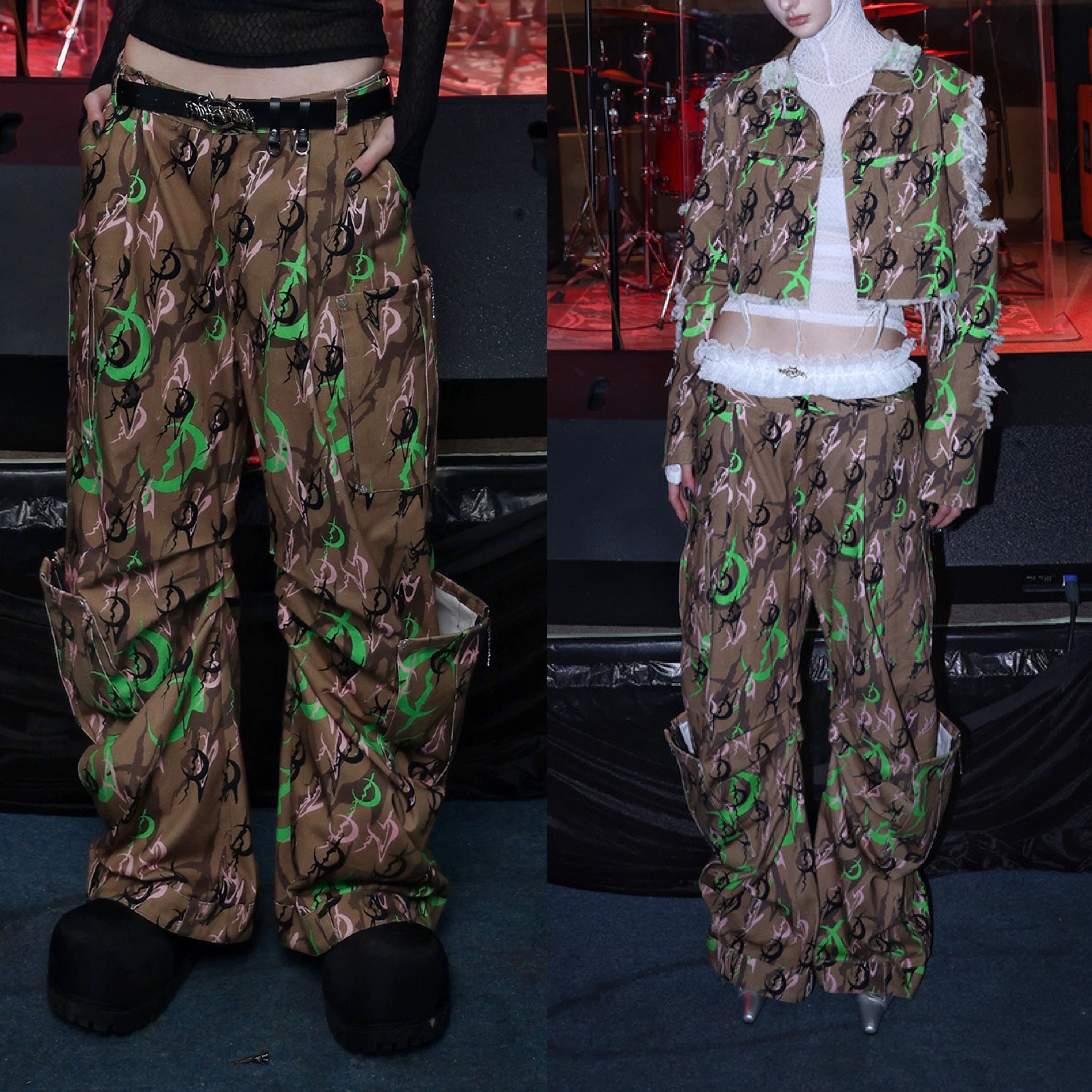 茶色 カモフラージュ パンツ ボトムス ストリート カジュアル 緑