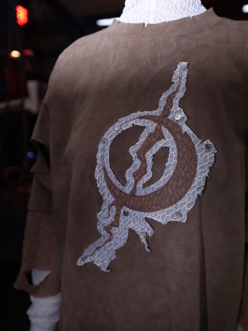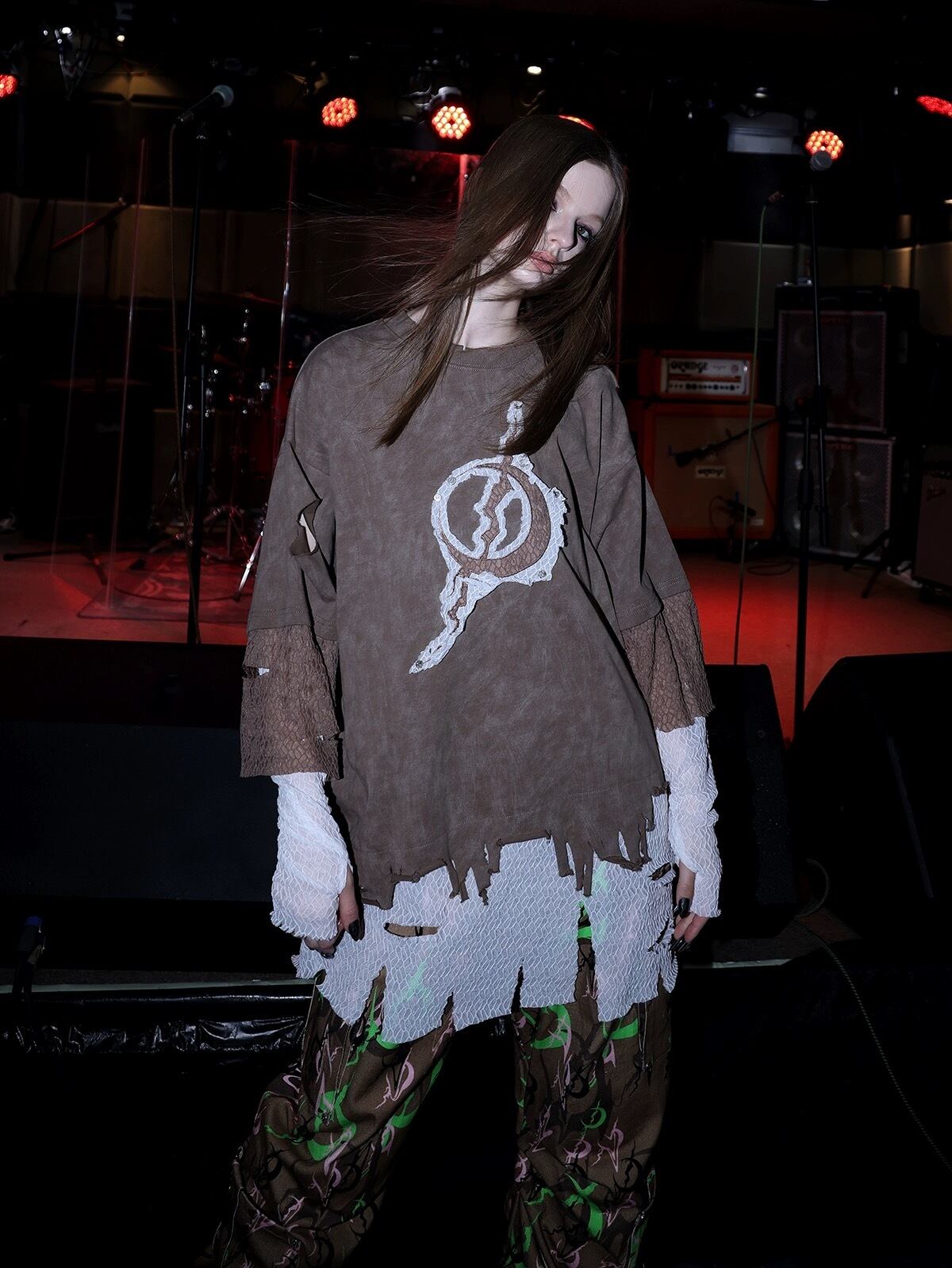 茶色 ダメージ ブラウス カジュアル スウェット 月 Tシャツ