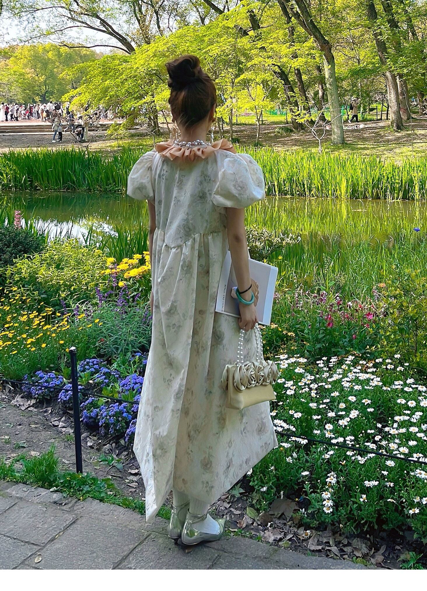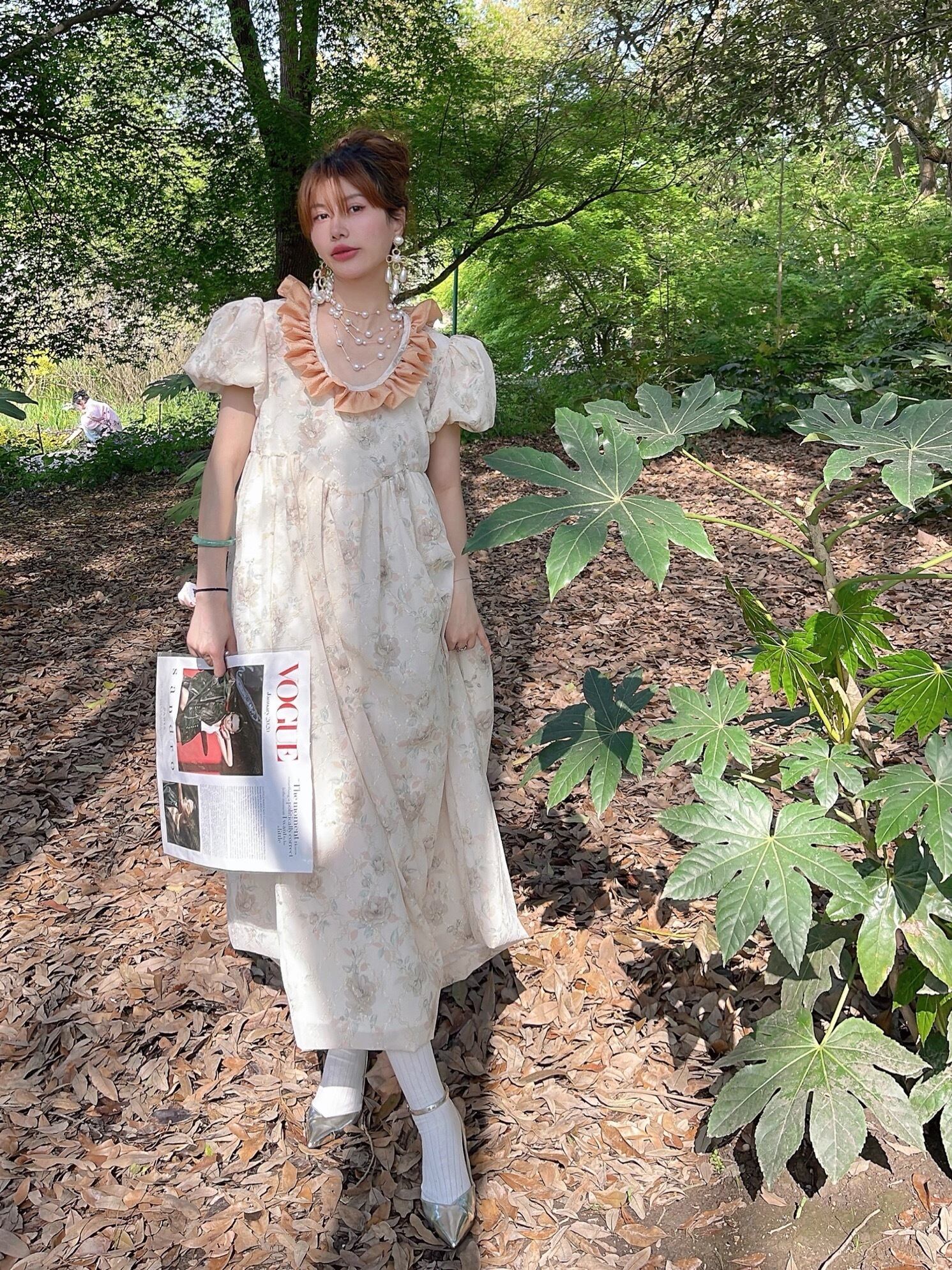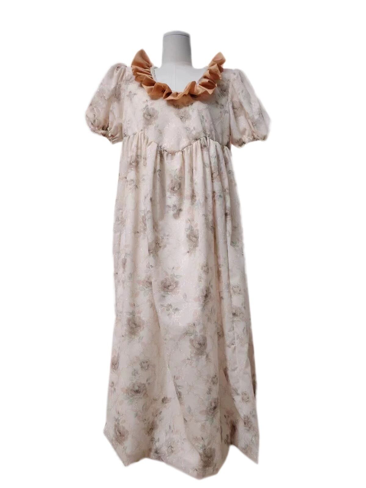 ベージュ ワンピース ドレス ブラウス 花柄 エレガント
