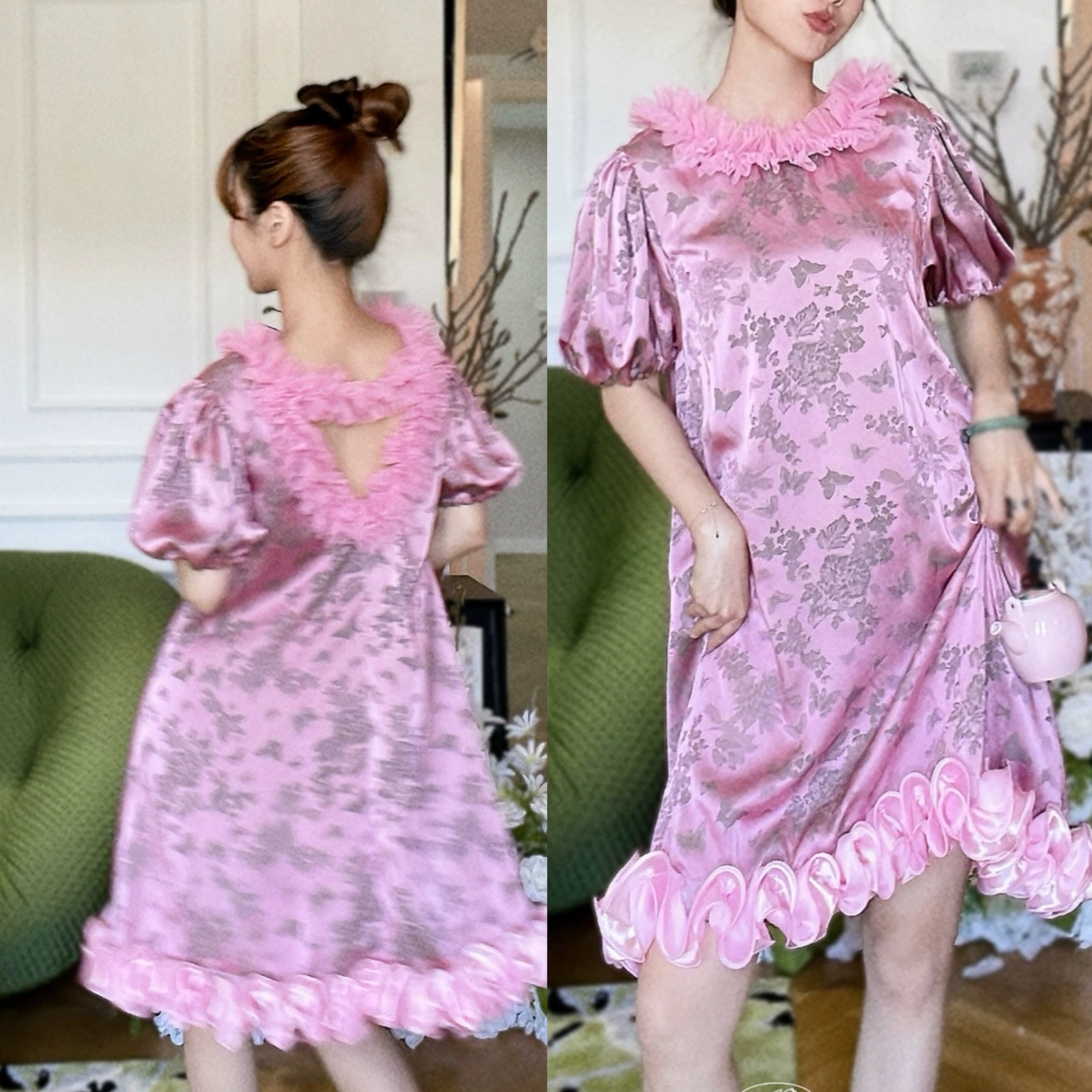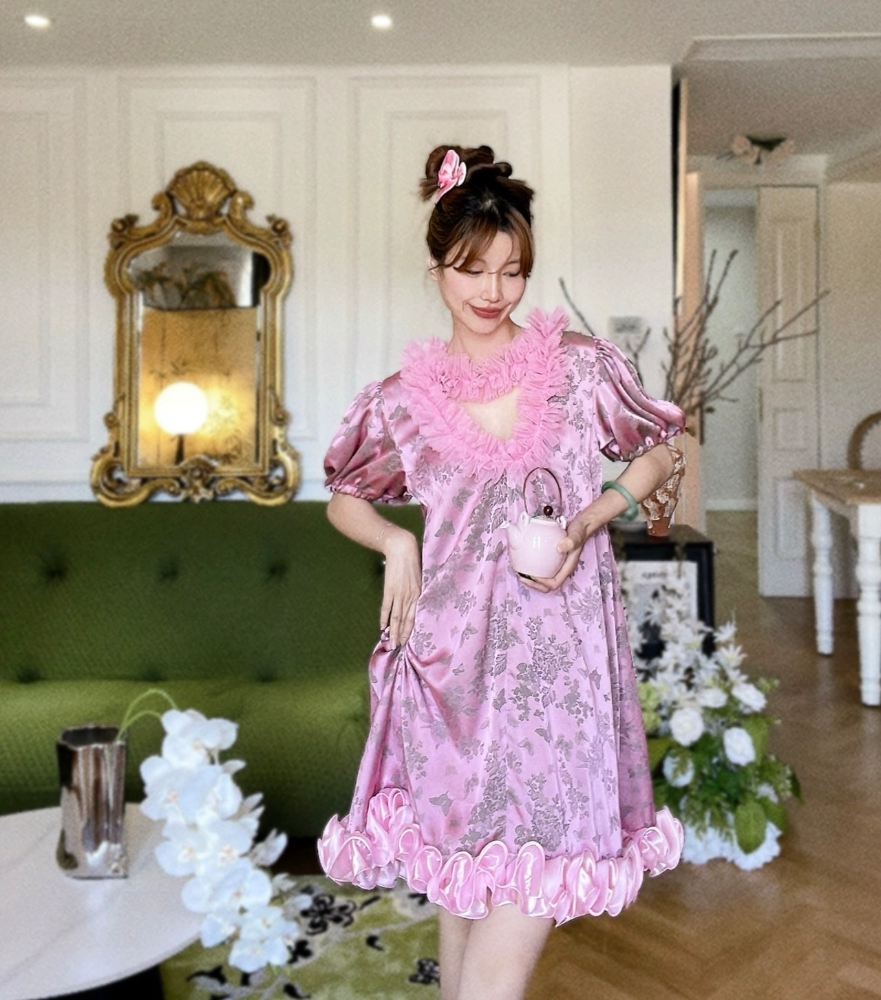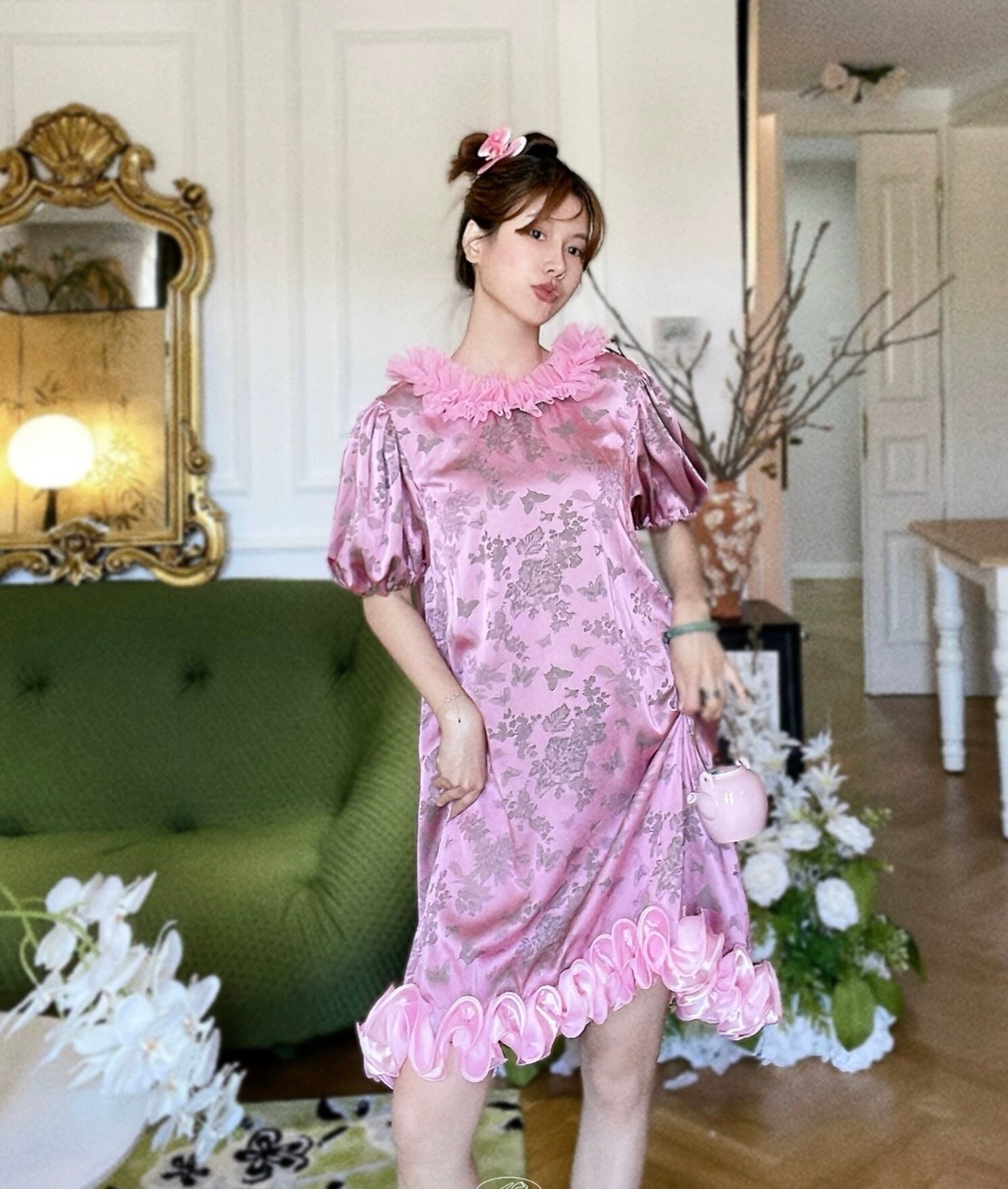花柄 チャイナ ピンク ワンピース ドレス エレガント