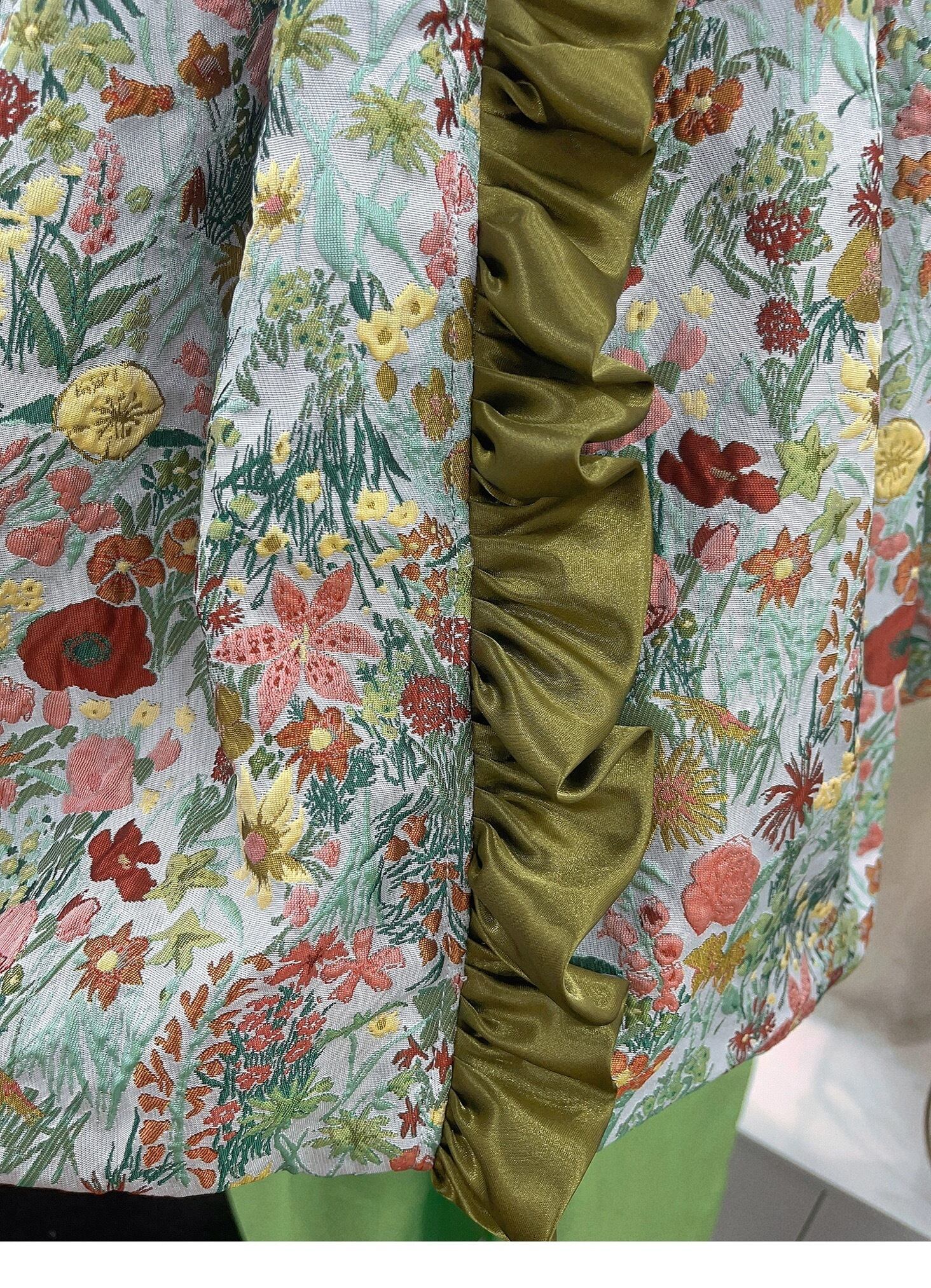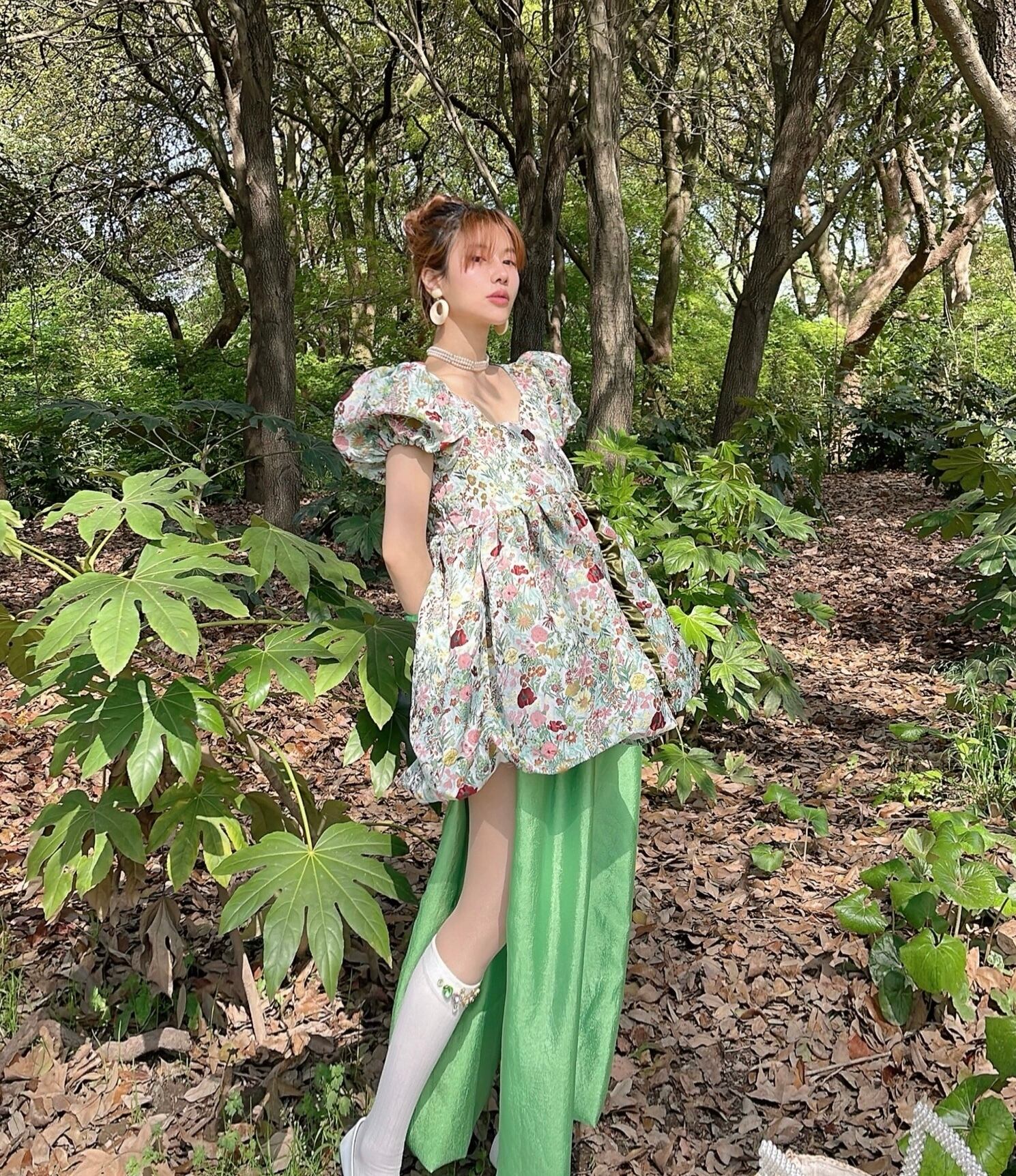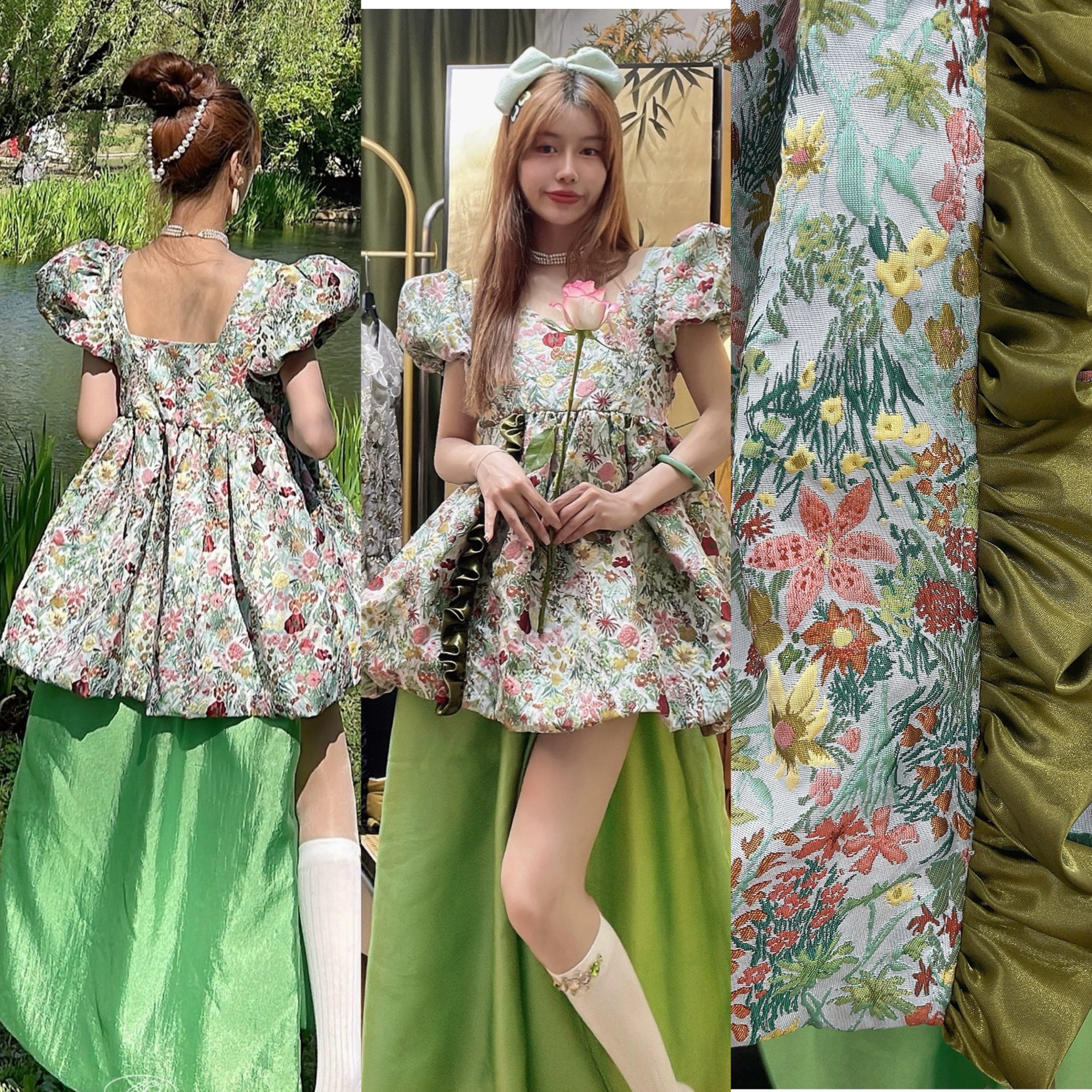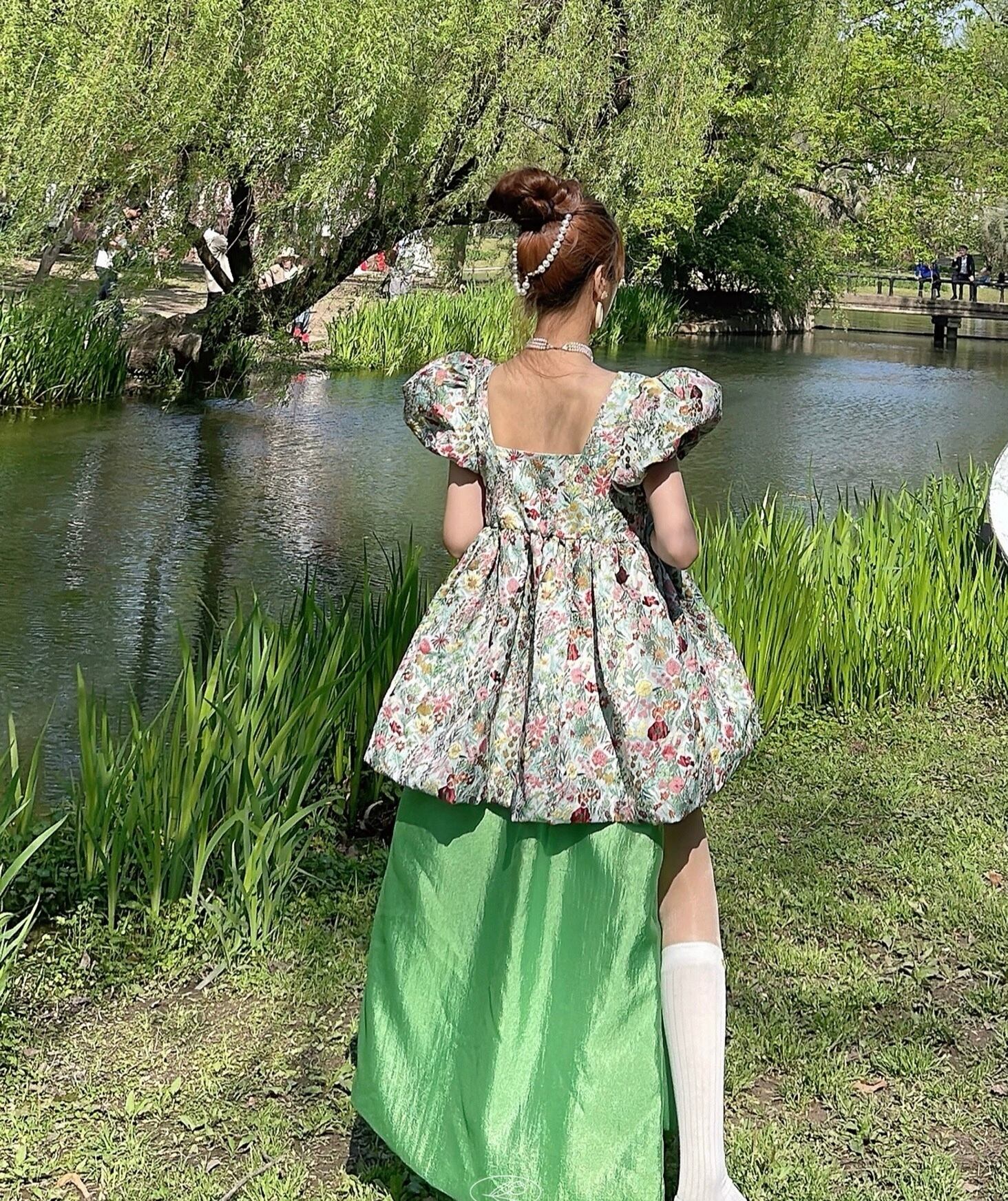 緑 花柄 フラワー ガーリー ブラウス ワンピース ドレス