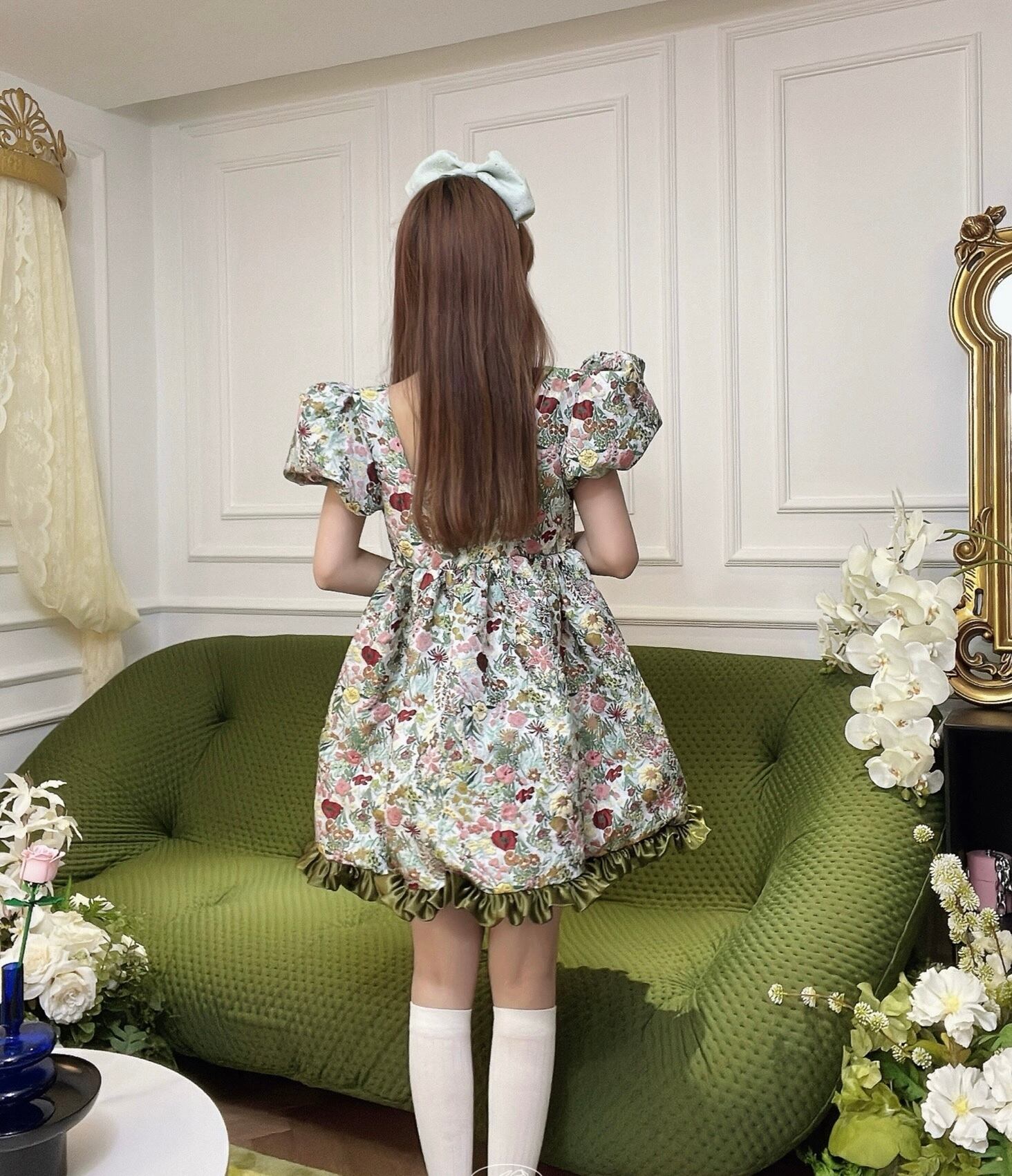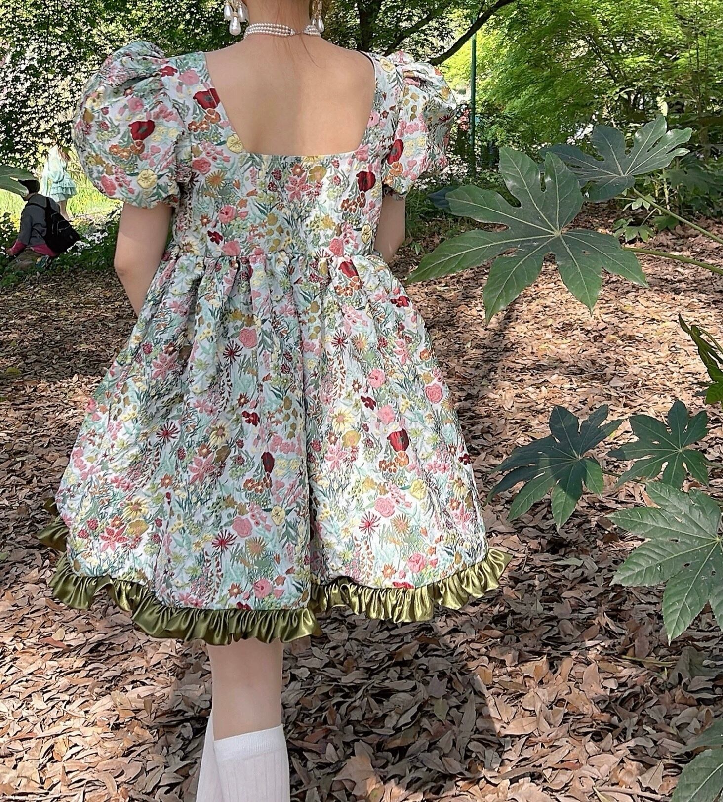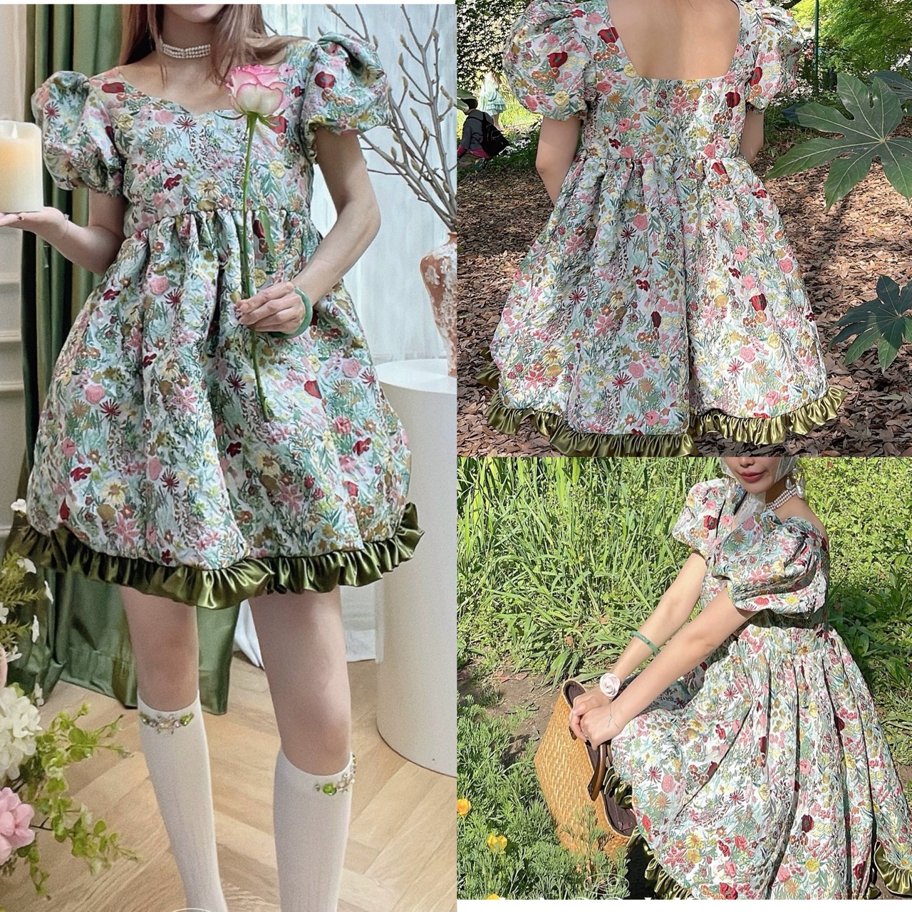花柄 緑 グリーン フラワー エレガント ワンピース ブラウス