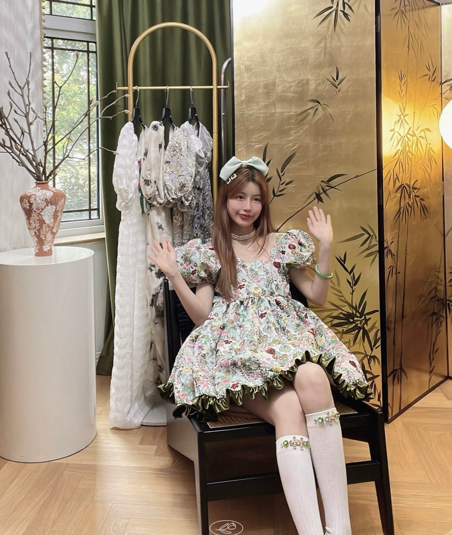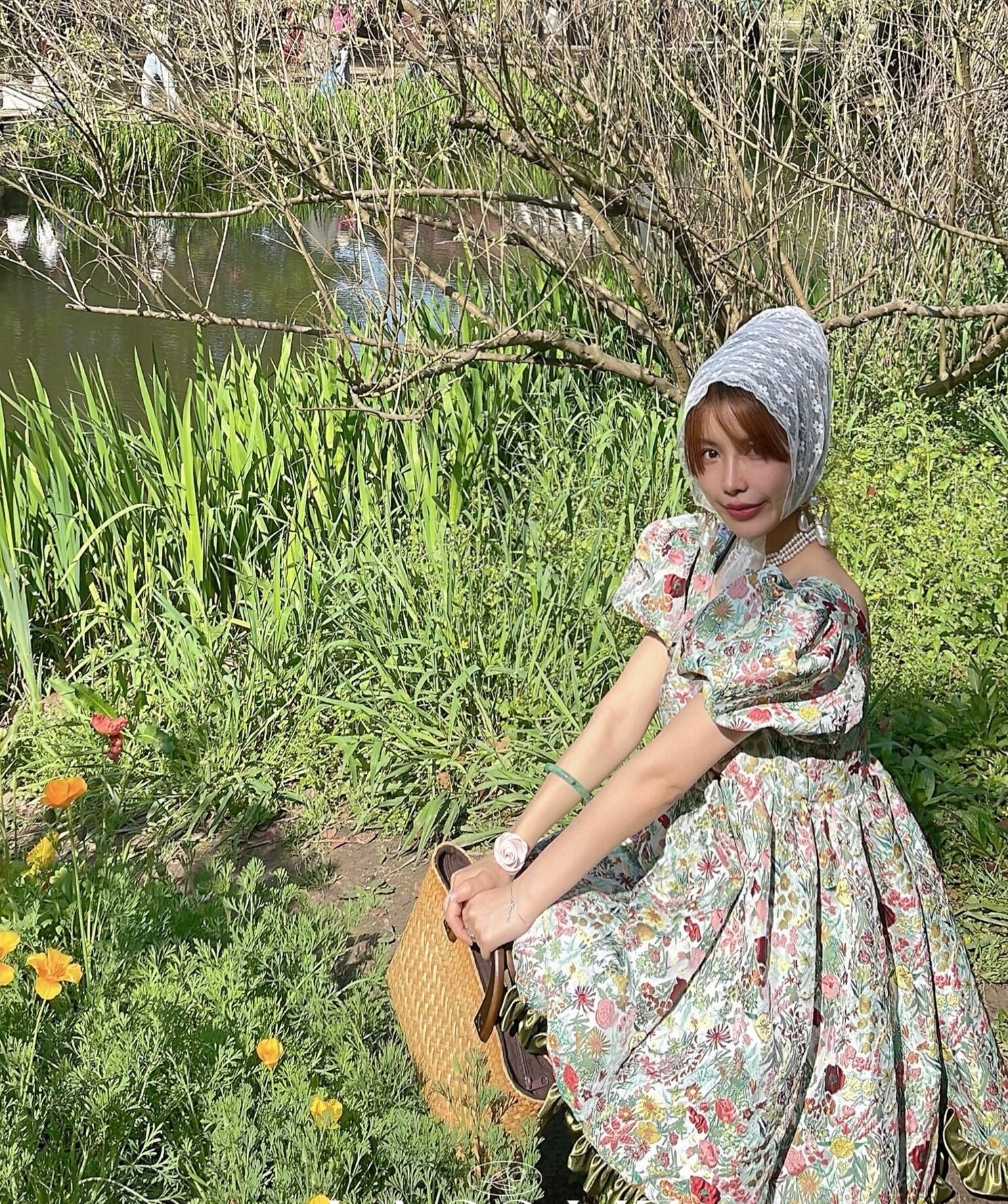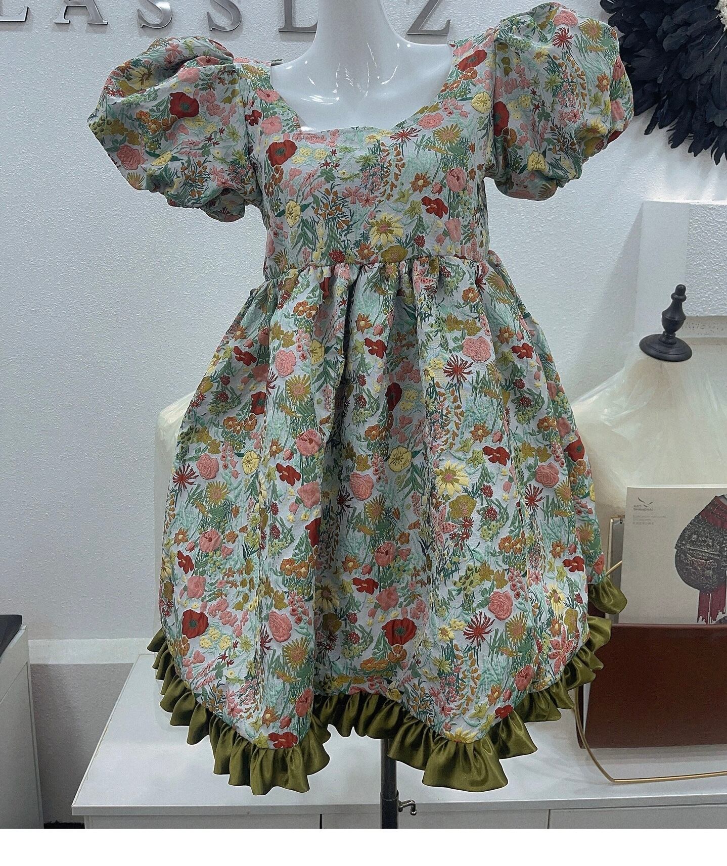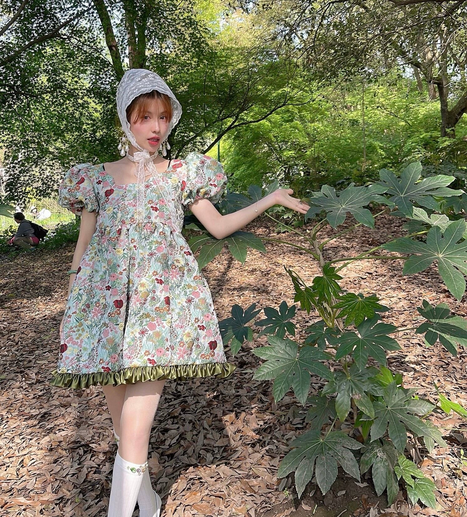花柄 緑 グリーン フラワー エレガント ワンピース ブラウス